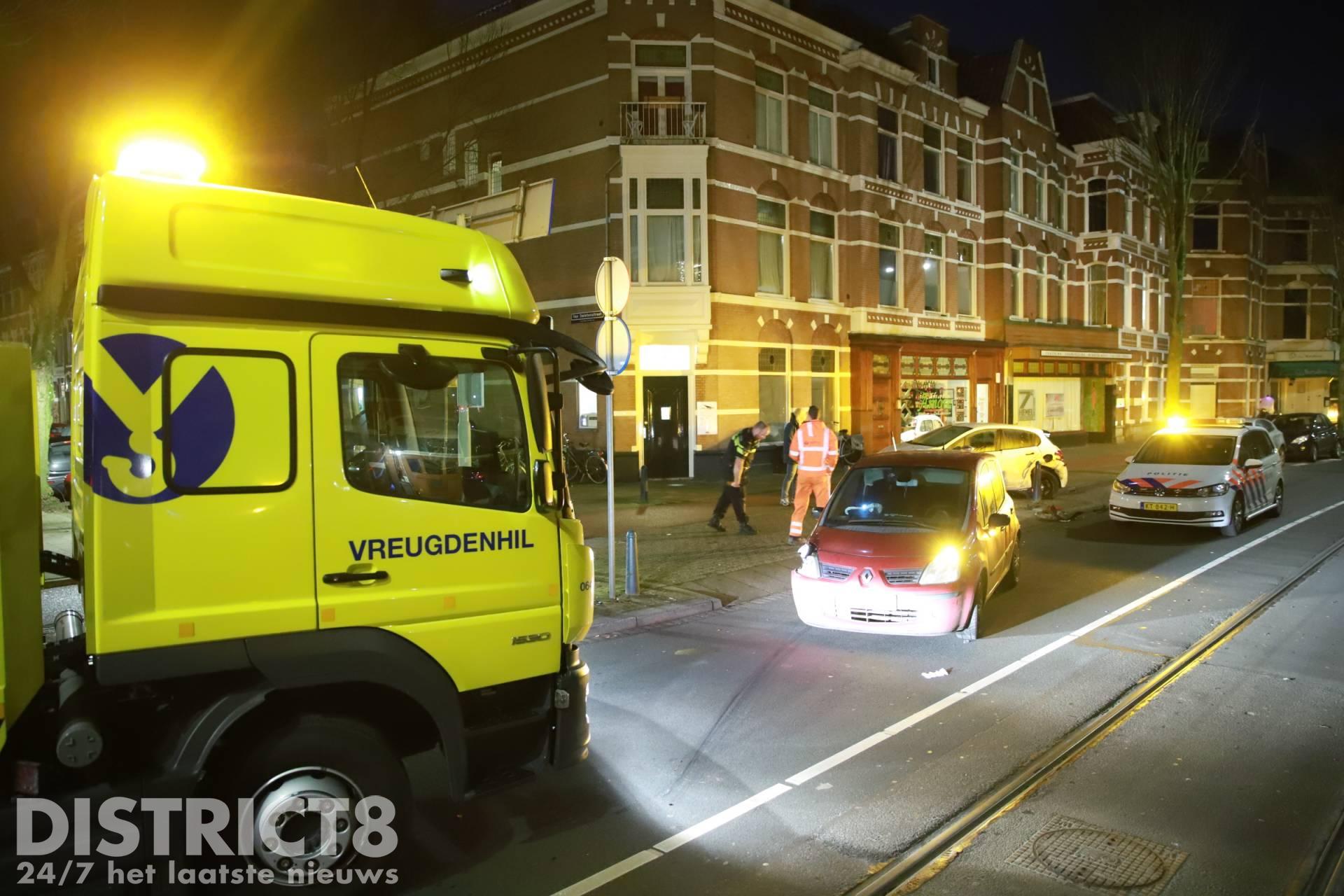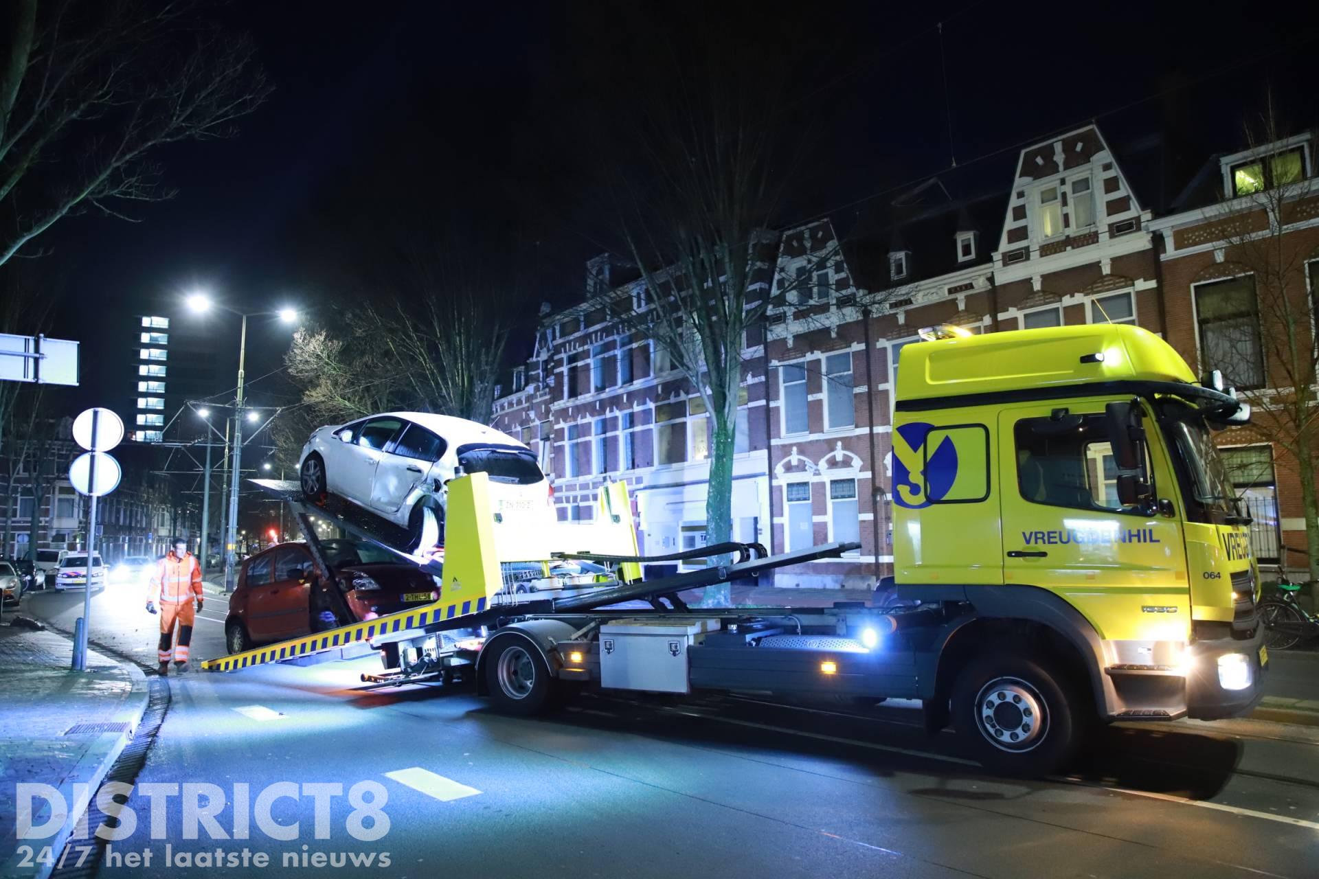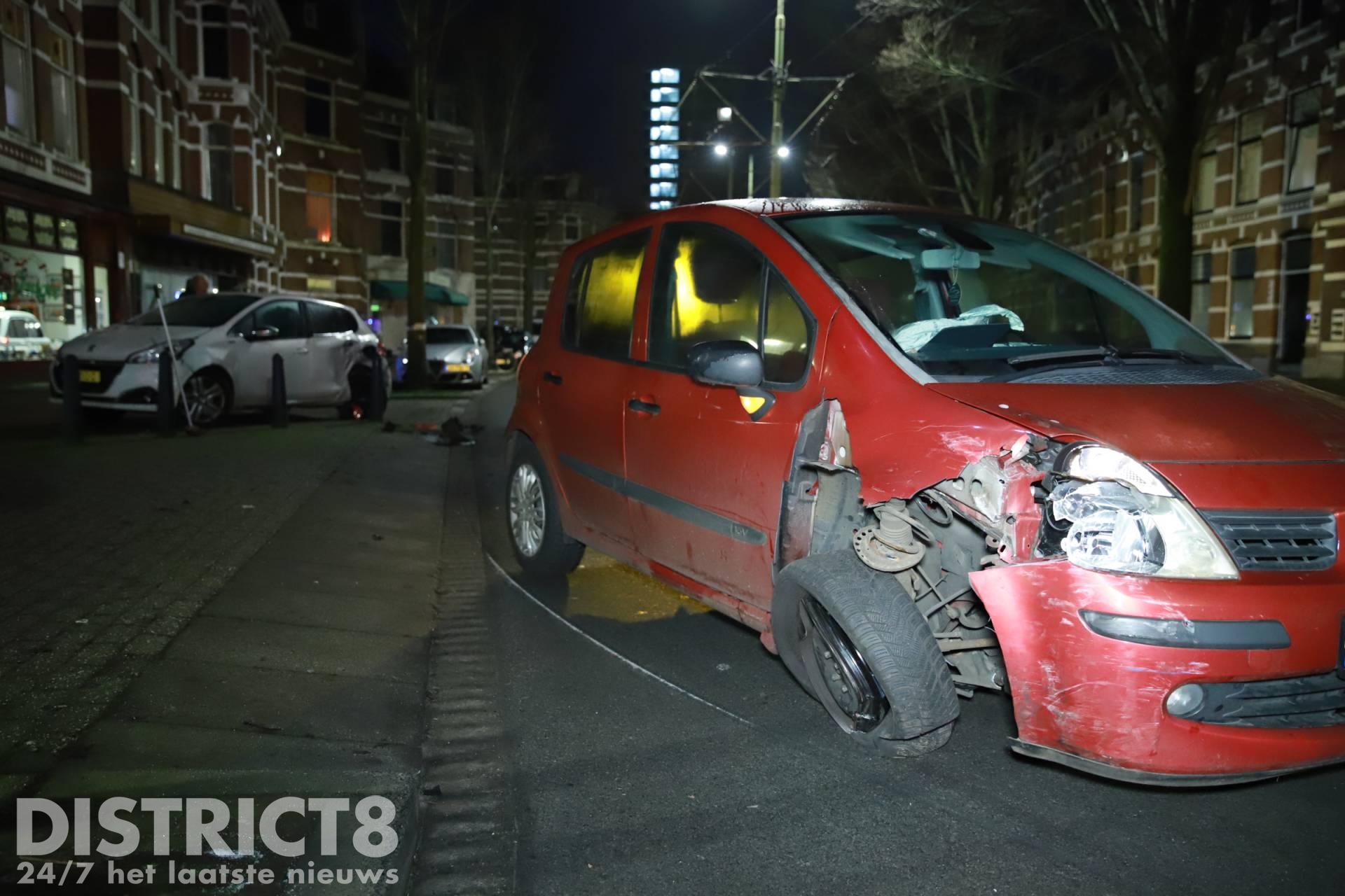 Even voor half twaalf ging het mis ter hoogte van de Van Swietenstraat. Buurtbewoners hoorde een flinke knal. Toen zij naar buiten keken zagen zij twee flink beschadigde auto’s.