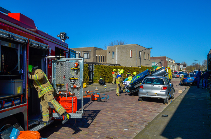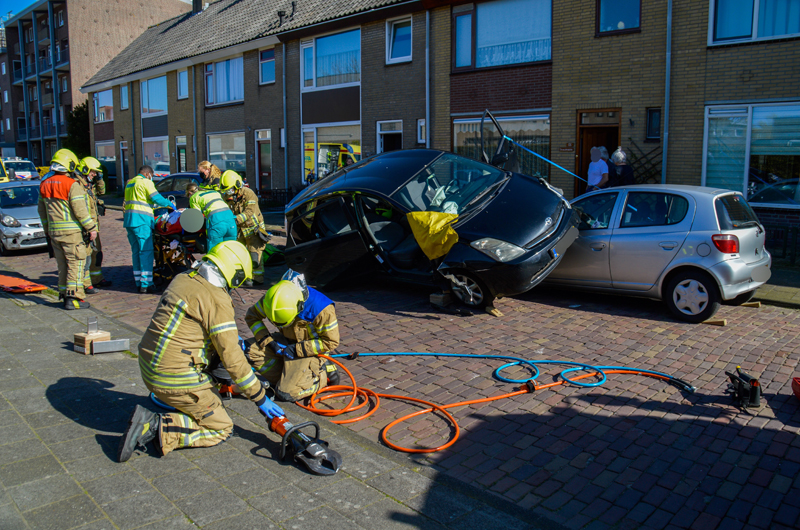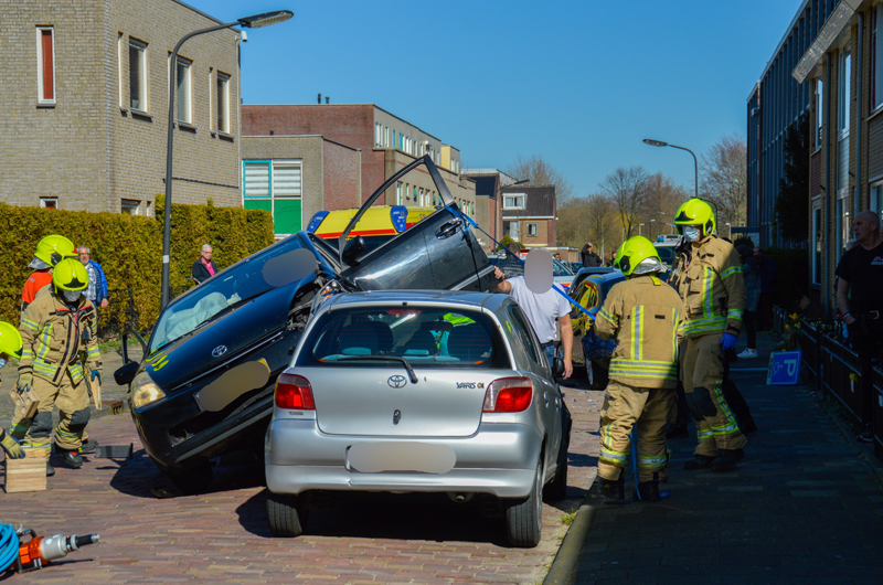 Een bestuurster van een zwarte Toyota kwam tegen een geparkeerde auto tot stilstand. Ze kon zelf niet meer uit het voertuig komen en moest door de brandweer worden bevrijd.