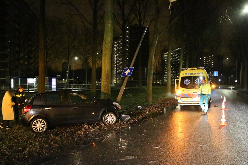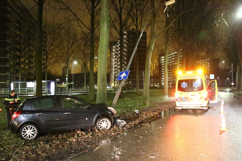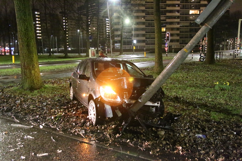Rijswijk – Op de Prinses Beatrixlaan in Rijswijk is in de nacht van zaterdag op zondag een automobiliste tegen een lantaarnpaal aan gecrasht.