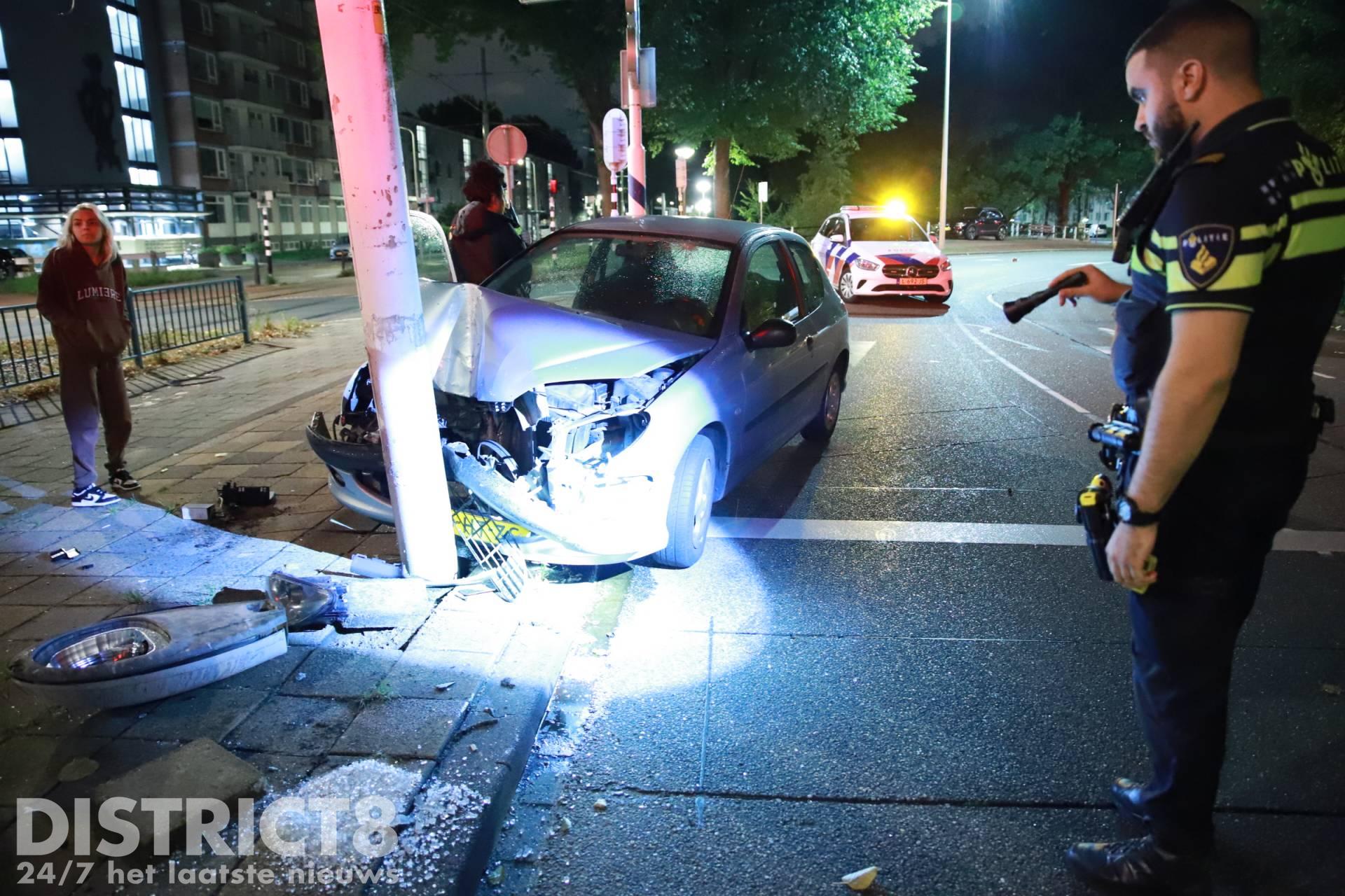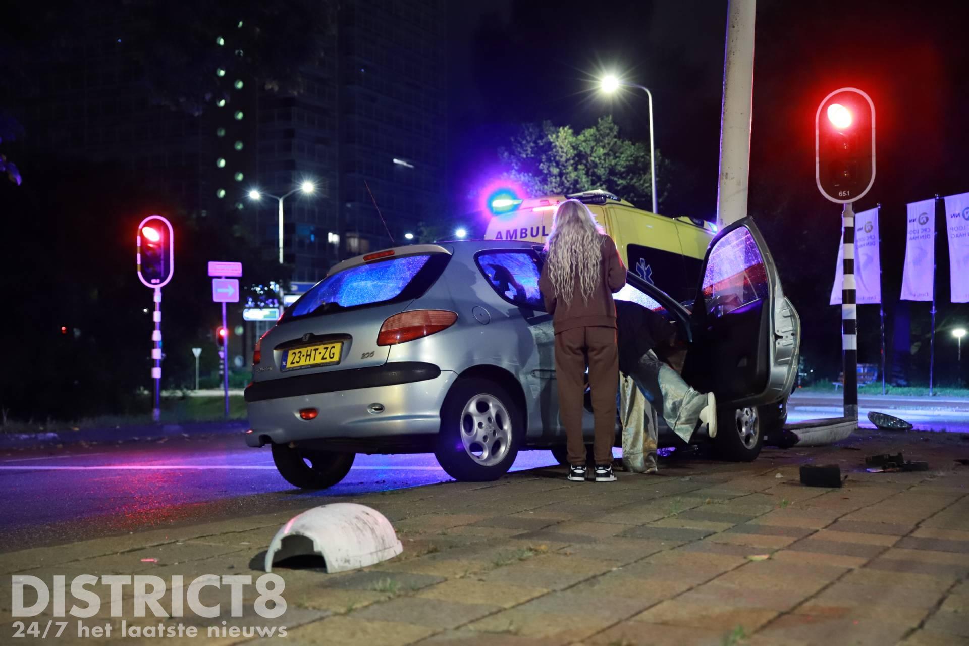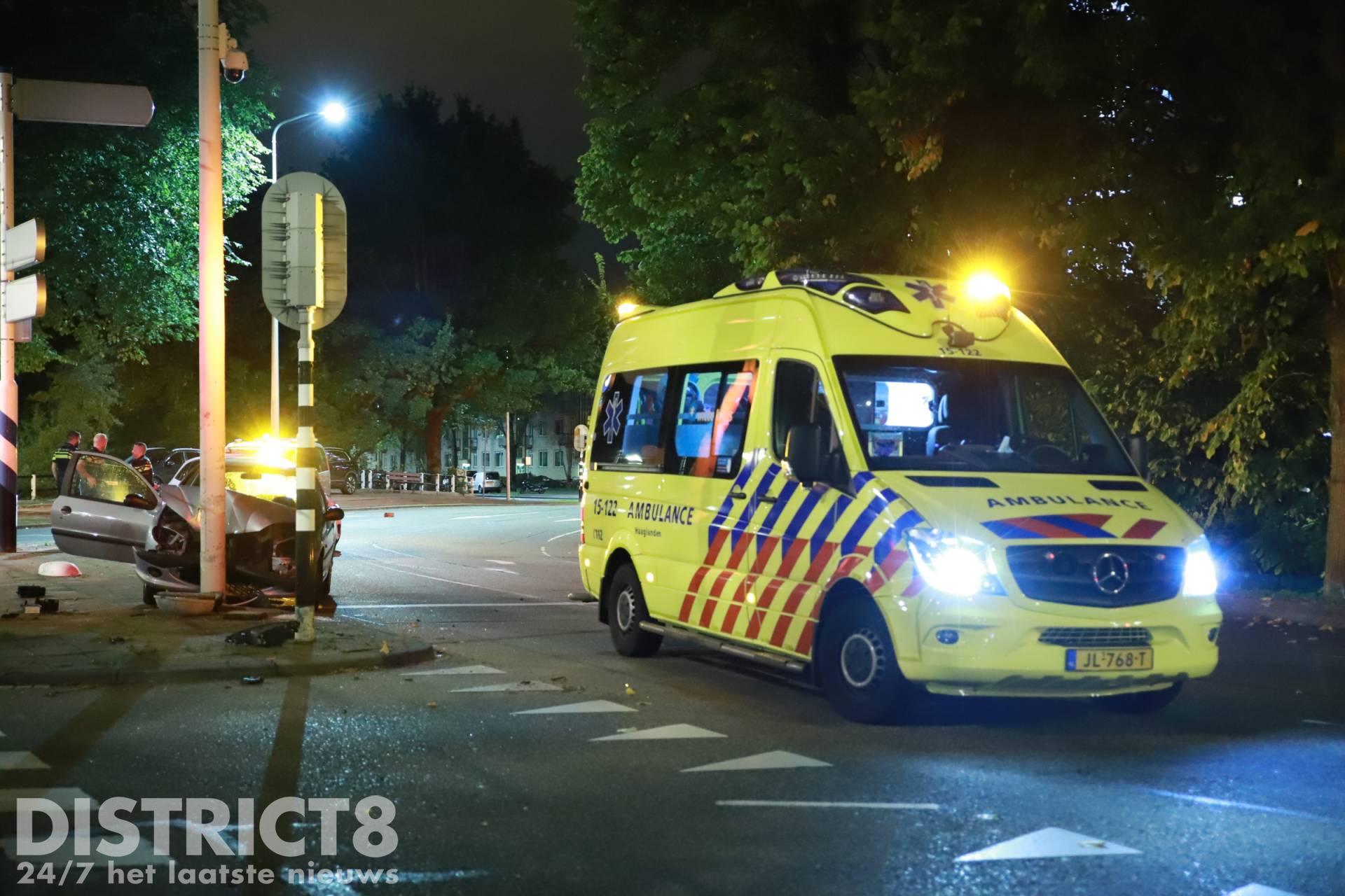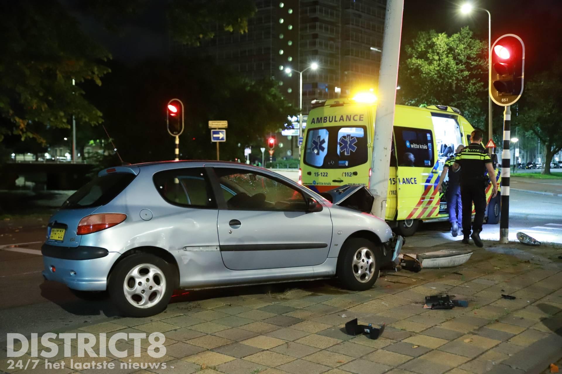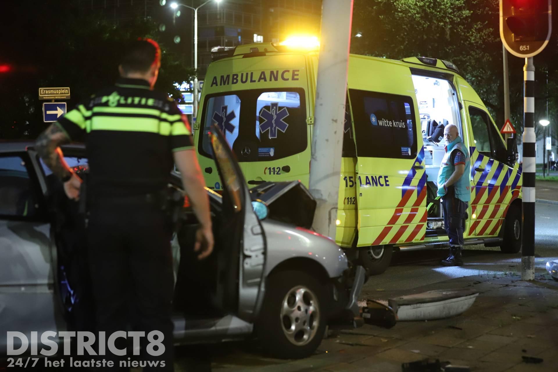 Automobiliste knalt tegen lichtmast en raakt gewond Erasmusplein Den Haag