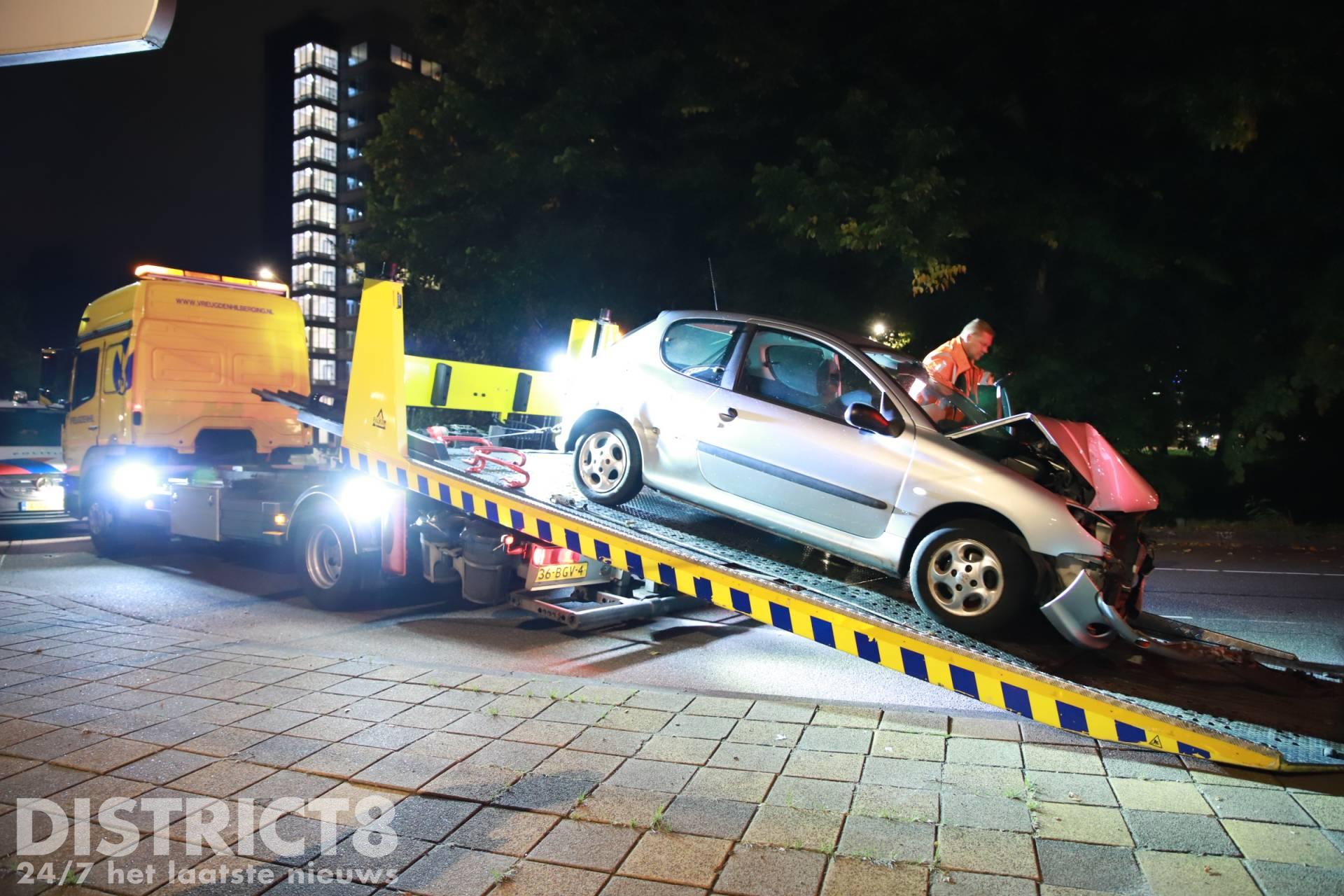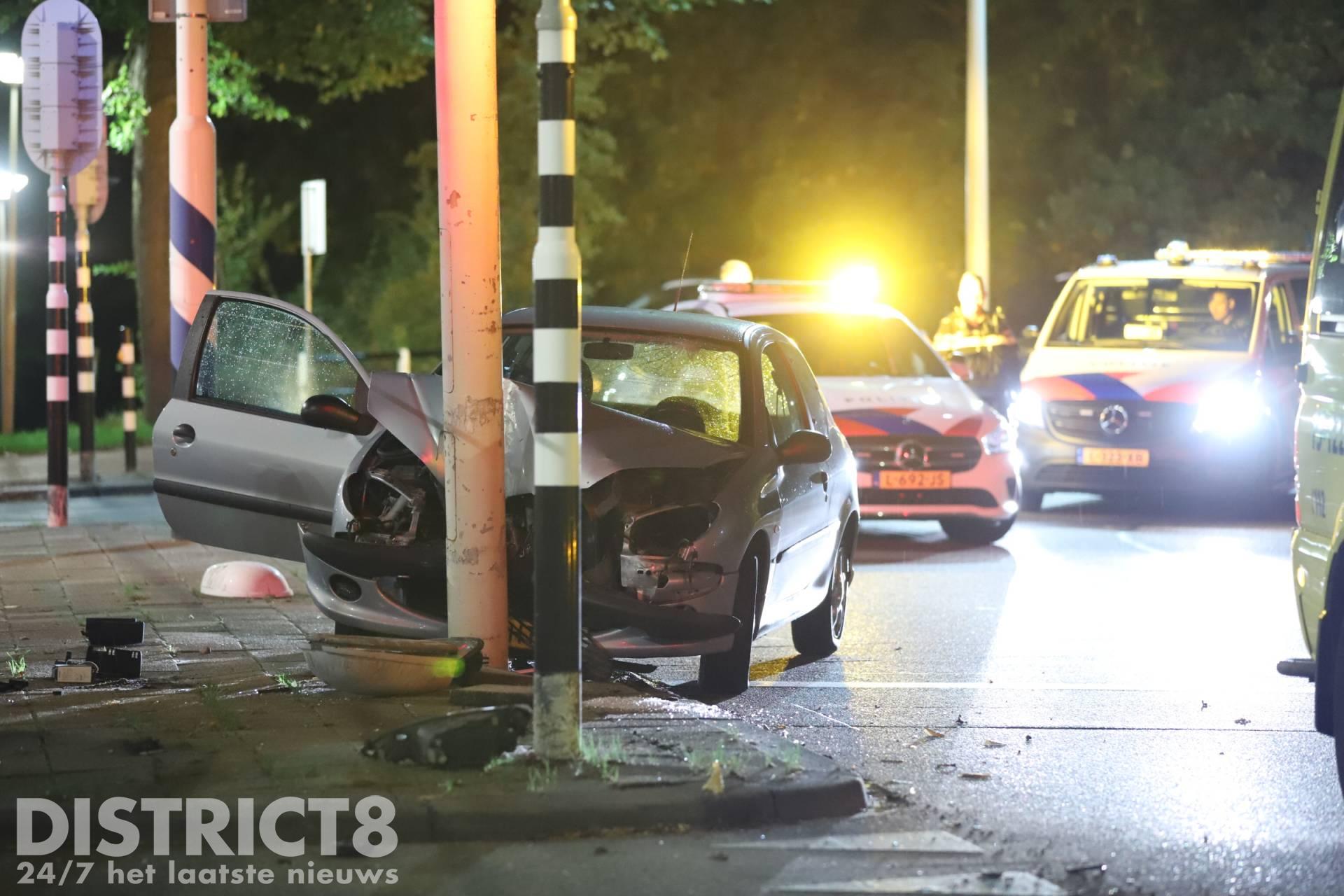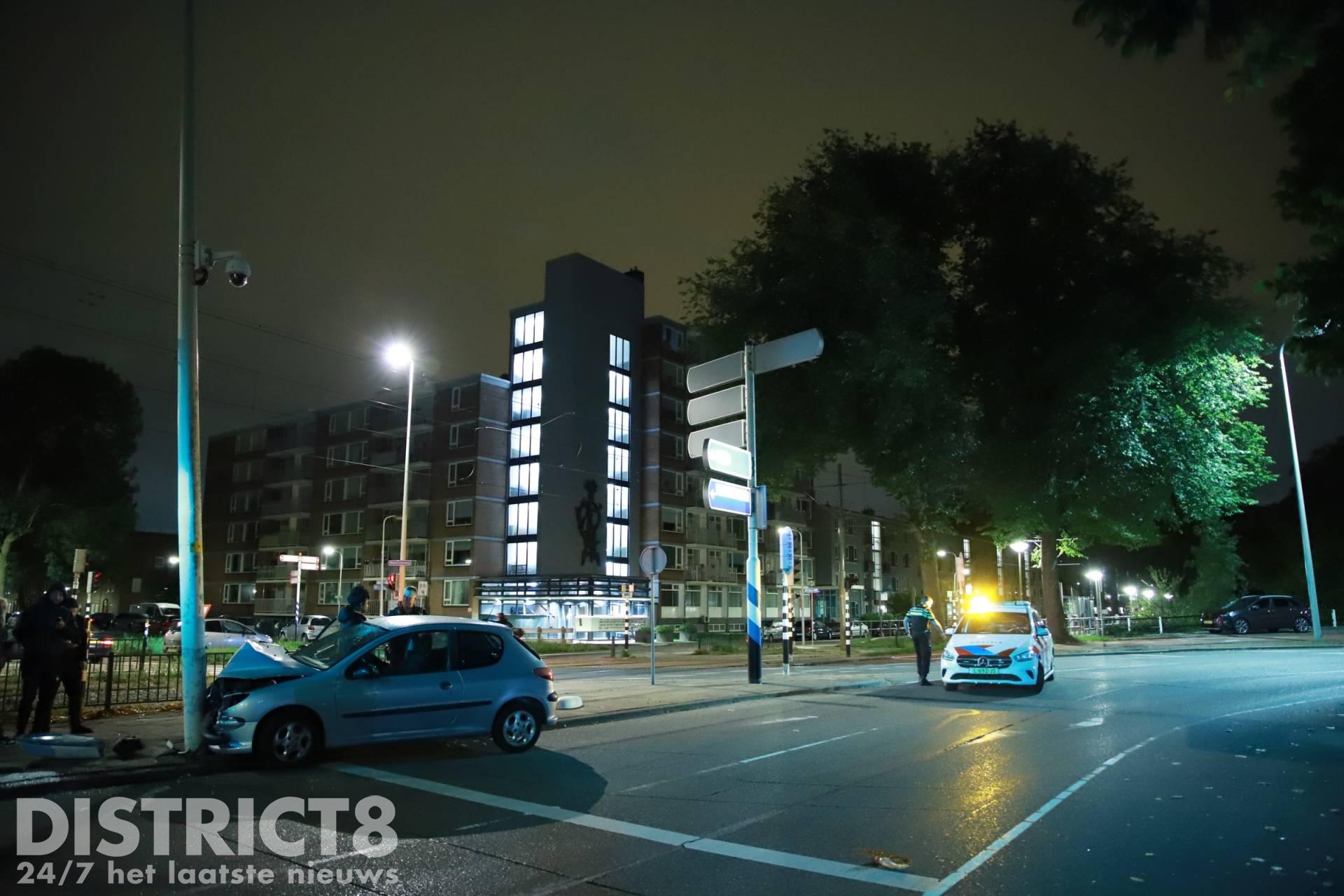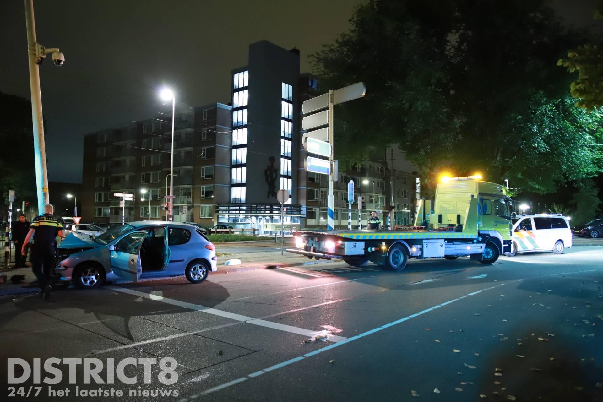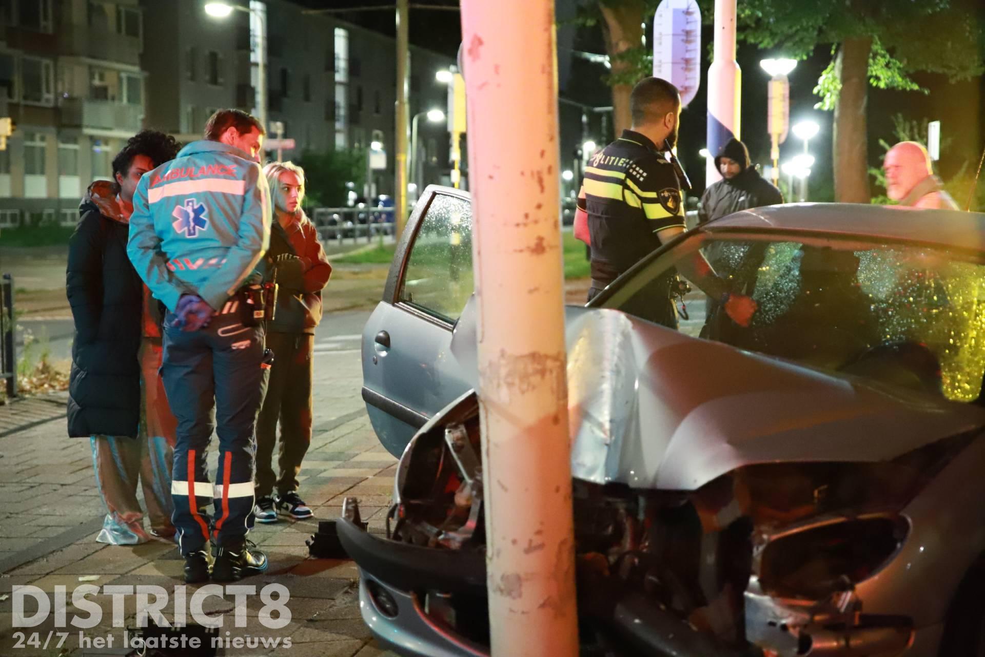 Automobiliste knalt tegen lichtmast en raakt gewond Erasmusplein Den Haag