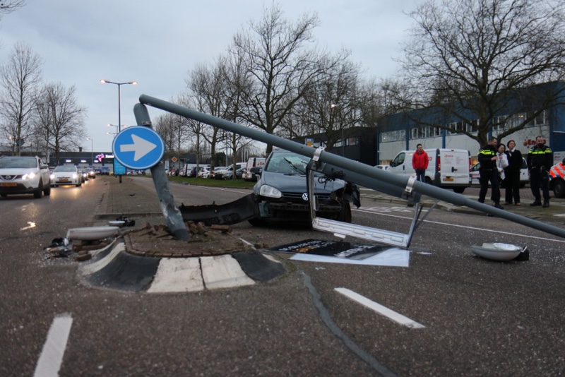 Hierbij is forse schade ontstaan. De automobiliste kwam uit de richting van Schiedam centrum en reed ter hoogte van de Algerastraat tegen de paal aan welke op een verkeersheuvel tussen de twee weghelften geplaatst stond. Zij is medisch onderzocht door ambulancepersoneel, maar hoefde niet mee naar het ziekenhuis. Voor de auto is een takelwagen besteld.
