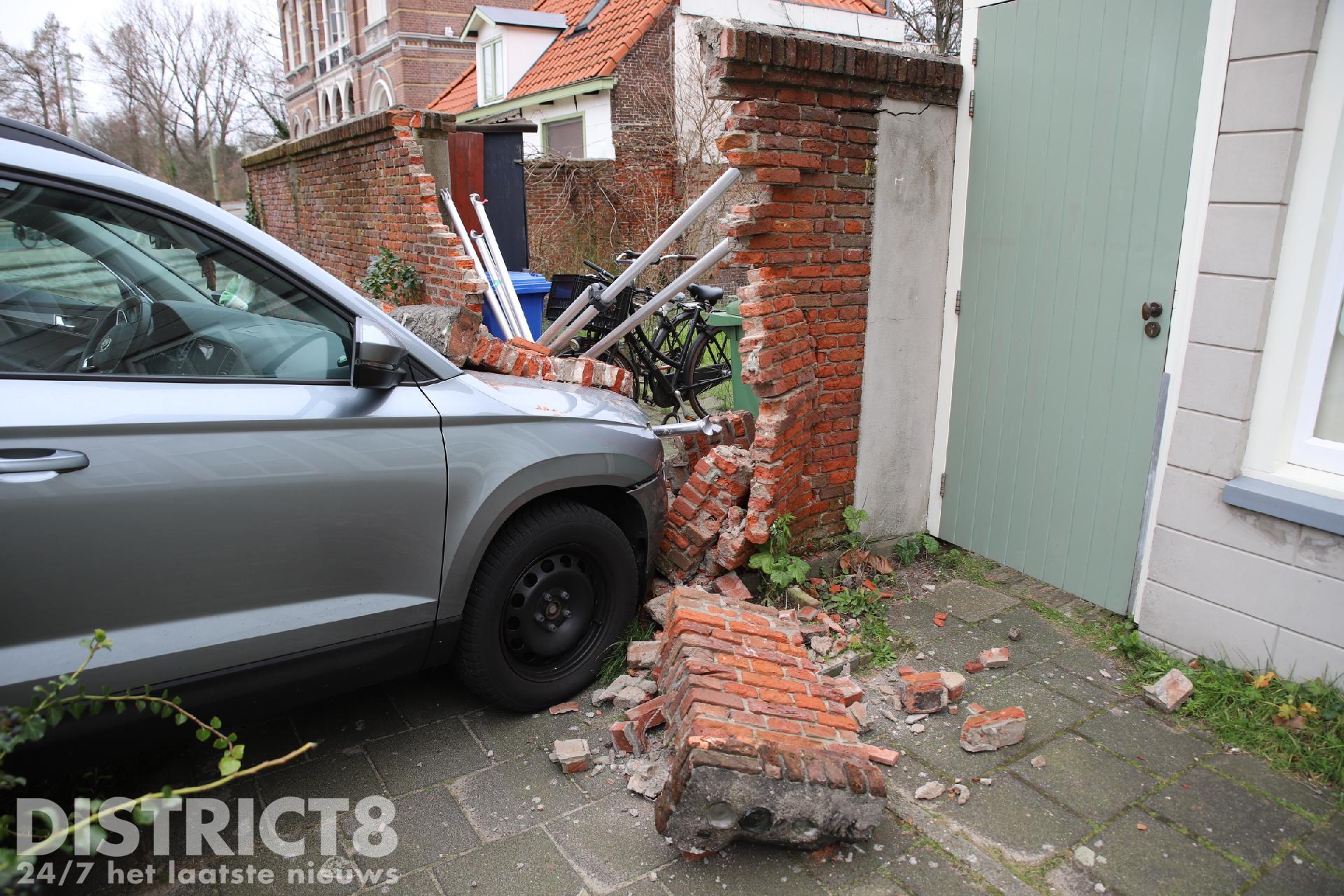 Delft – Een automobiliste is donderdagmiddag 2 februari flinke schade veroorzaakt nadat zij door een muurtje reed op de Nieuwe Plantage in Delft.