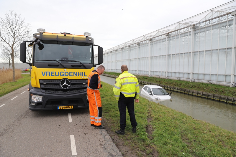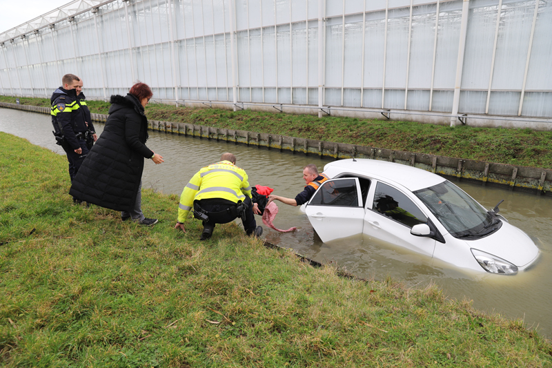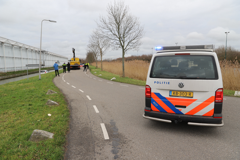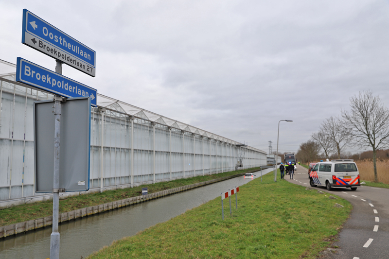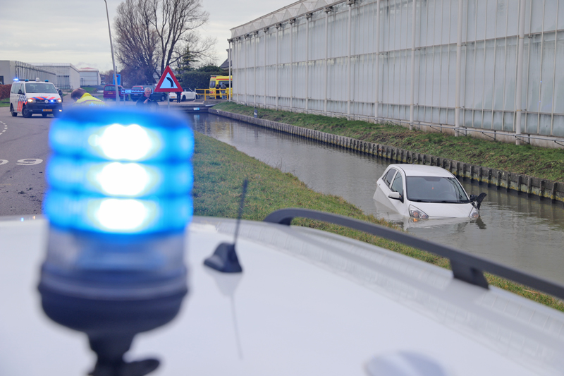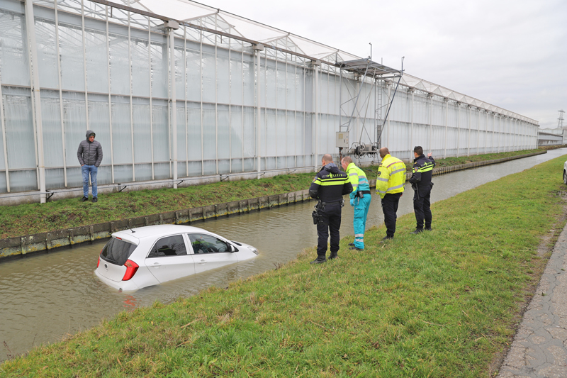 Honselersdijk – Dinsdagmiddag 15 januari is een automobiliste met haar auto te water geraakt aan de Broekpolderlaan nadat deze de macht over het stuur verloor. De auto belandde daarna in een naastgelegen sloot. Omstanders konden de vrouw snel uit haar auto halen, de vrouw is door de ambulancedienst opgevangen. Na controle van het ambulancepersoneel is de vrouw zonder spoed vervoerd naar het ziekenhuis. De politie heeft korte tijd de weg afgesloten zodat de berger het voertuig kon bergen, uit de auto zijn verschillende kappers attributen gehaald. De auto heeft door het ongeval flinke schade opgelopen.