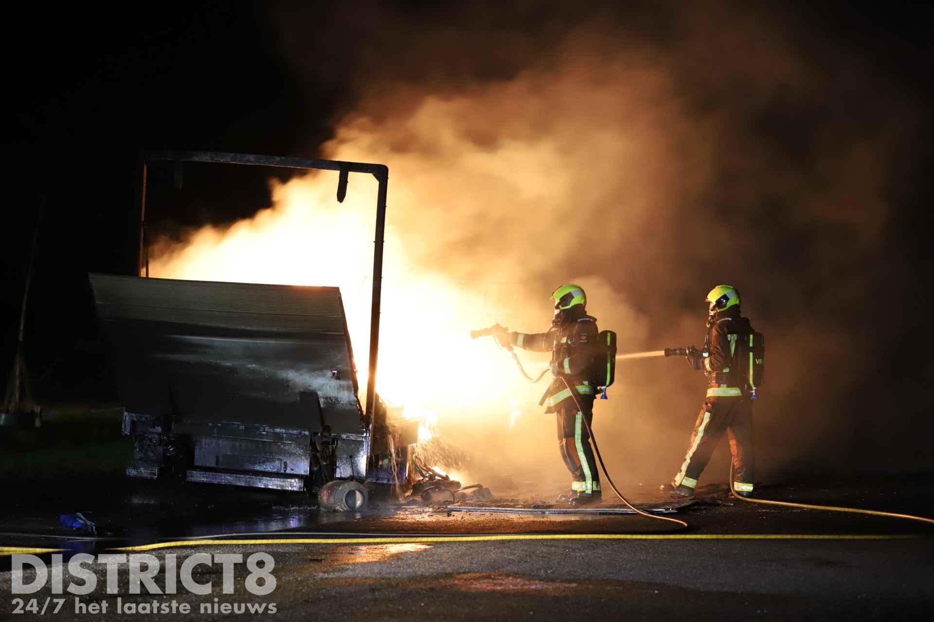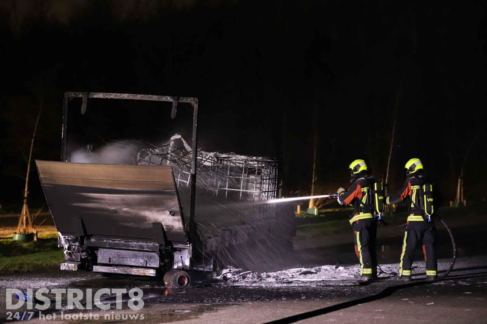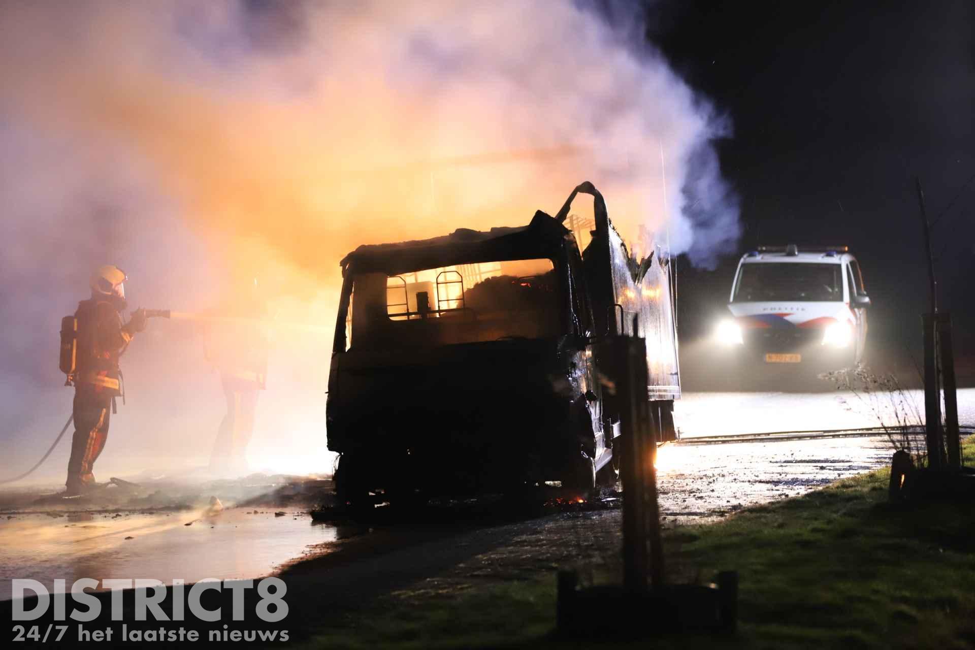 Leidschendam – Een bakwagen vol met drugsafval is vannacht in vlammen opgegaan op een parkeerplaats aan de Grote Engelskop in Leidschendam.