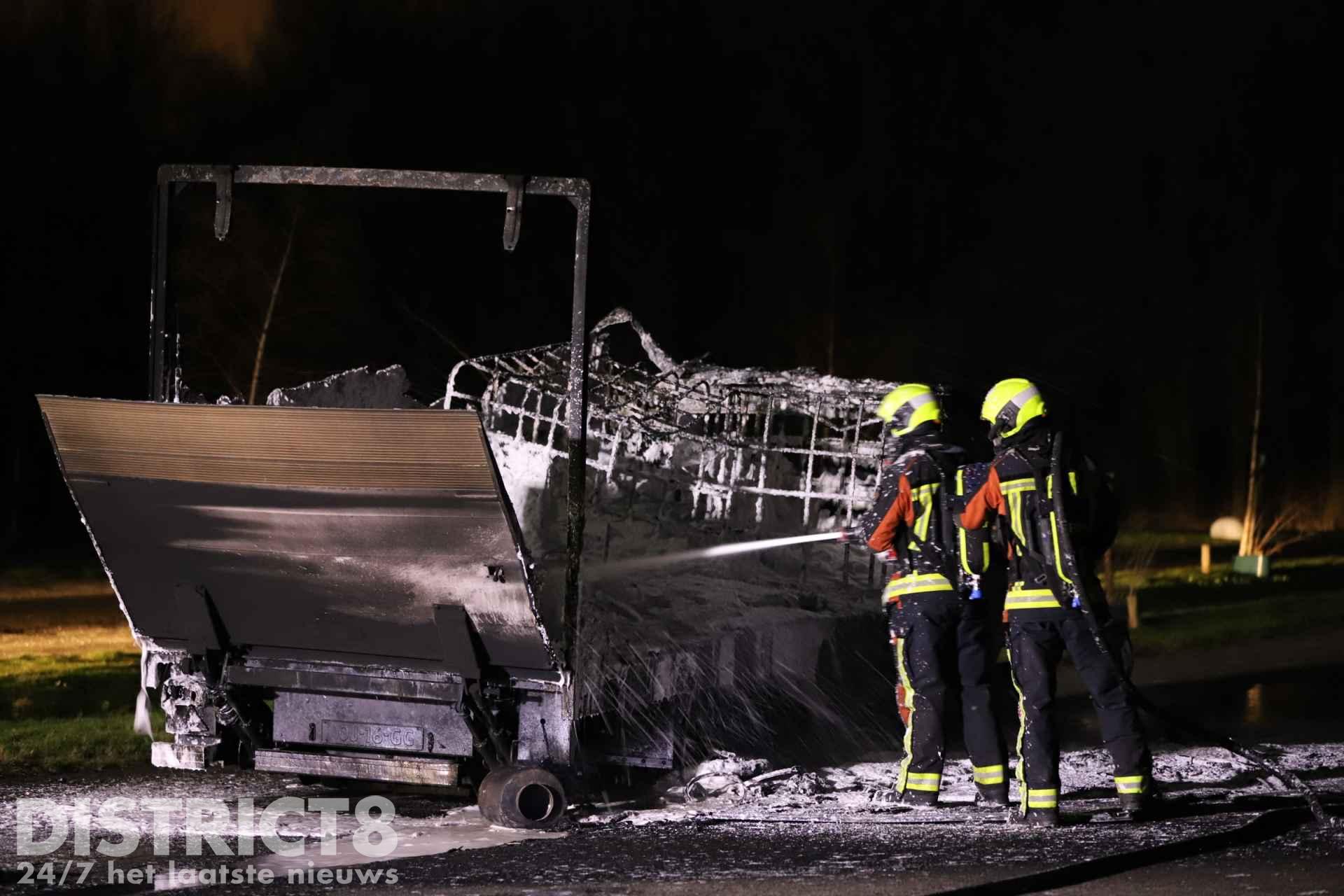 De brandweer had flink moeite met de bestrijding van de brand. De tankautospuit heeft meerdere keren water moeten halen. Later is er door de brandweer opgeschaald naar ‘middelbrand’ zodat er een tweede tankautospuit ter plaatse kwam.