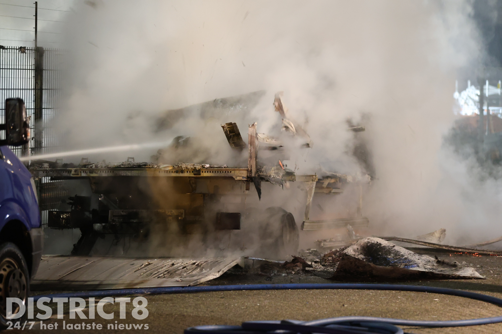 De schade aan het voertuig is enorm en de bakwagen kan als verloren worden beschouwd. De brandweer is nog enige tijd bezig geweest met het volledig blussen van de brand, hierbij werden stukken van de bakwagen uit elkaar getrokken om de brand goed te blussen. De politie doet onderzoek naar de oorzaak van de brand.