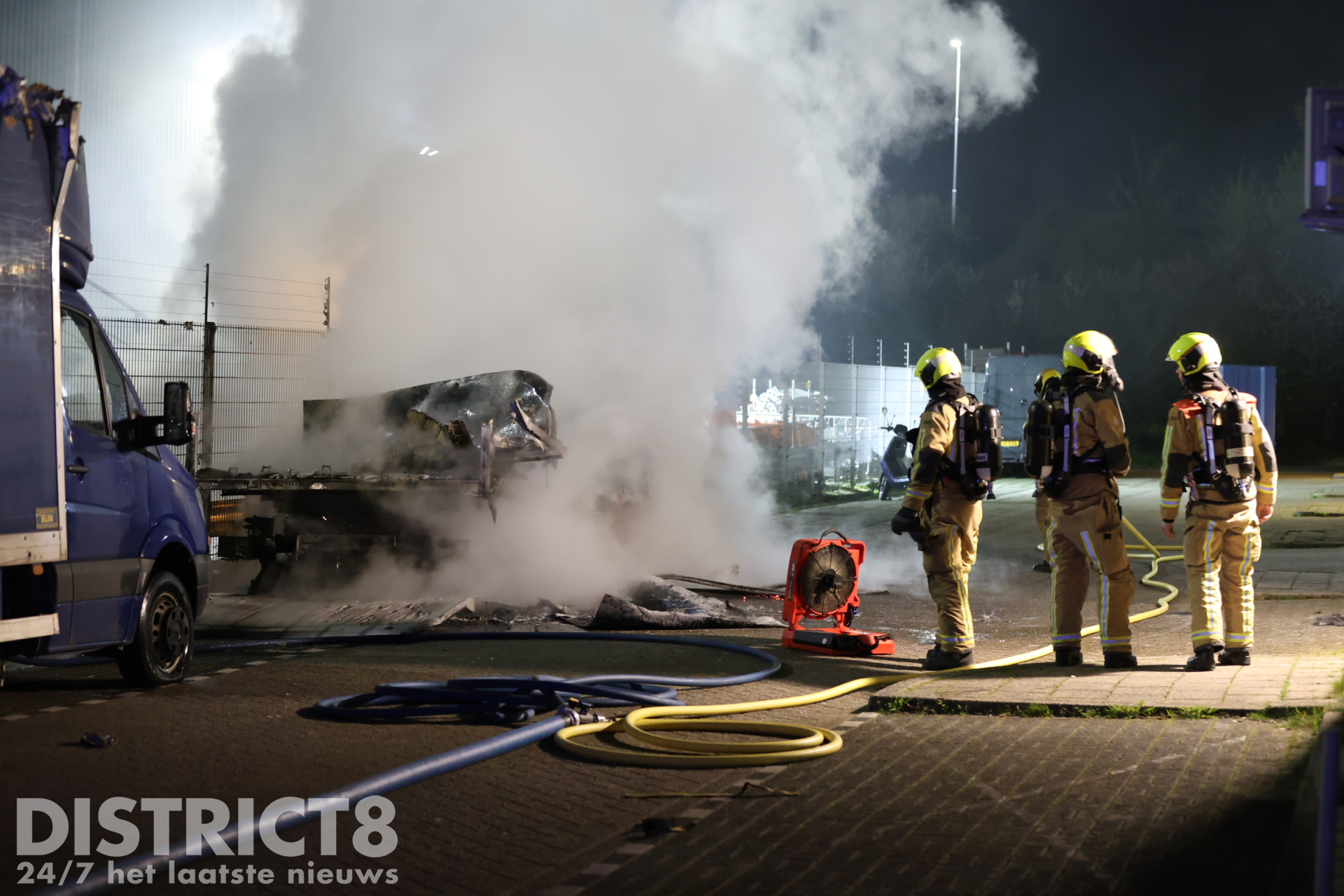 Den Haag – Maandagavond 6 april kwam omstreeks 21:45 uur een melding binnen op de meldkamer van een vrachtwagenbrand aan de Oude Middenweg in Den Haag. Ter plaatse bleek het te gaan om een geparkeerde bakwagen die volledig in brand stond.