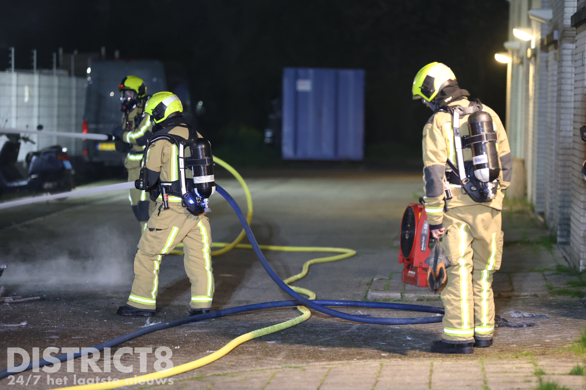Bij aankomst van de brandweer is er direct begonnen met het blussen van de brand, hierbij kwam enige tijd veel rook vrij. Omdat het personeel van beide gealarmeerde tankautospuiten werd ingezet, is er opgeschaald naar middelbrand.