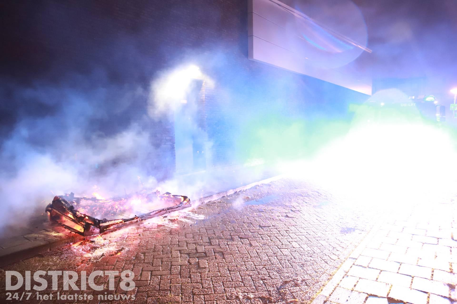 Delft – Aan het Verdiplein in Delft is een bankstel in brand gestoken die aan een muur van een gebouw stond.