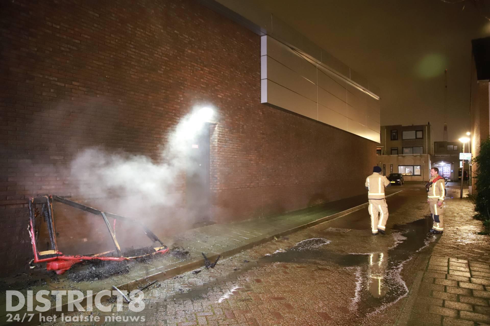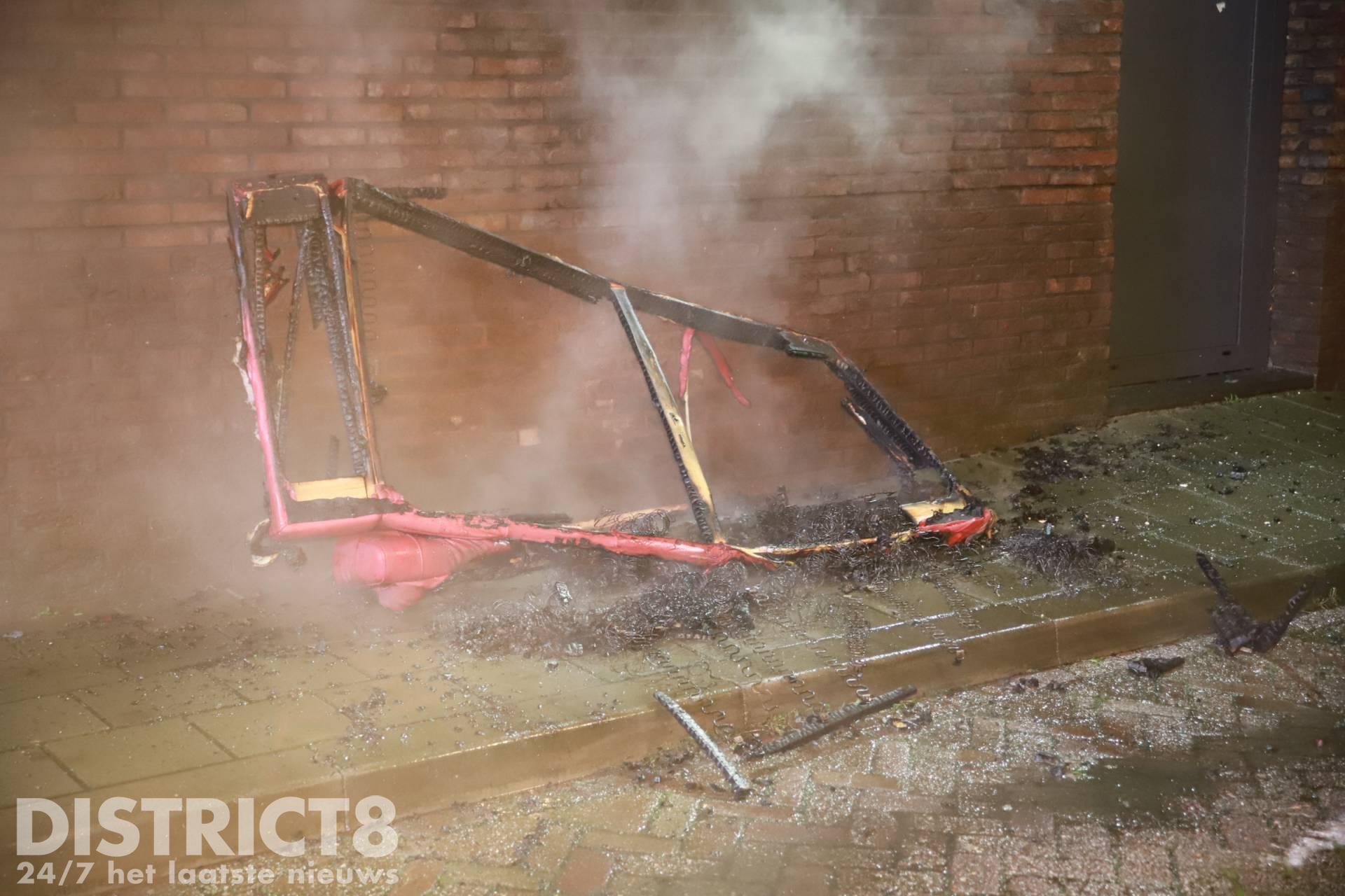 Het bankstel werd snel geblust. De muur werd afgekoeld en een tweede bankstel werd voor de zekerheid nat gespoten.