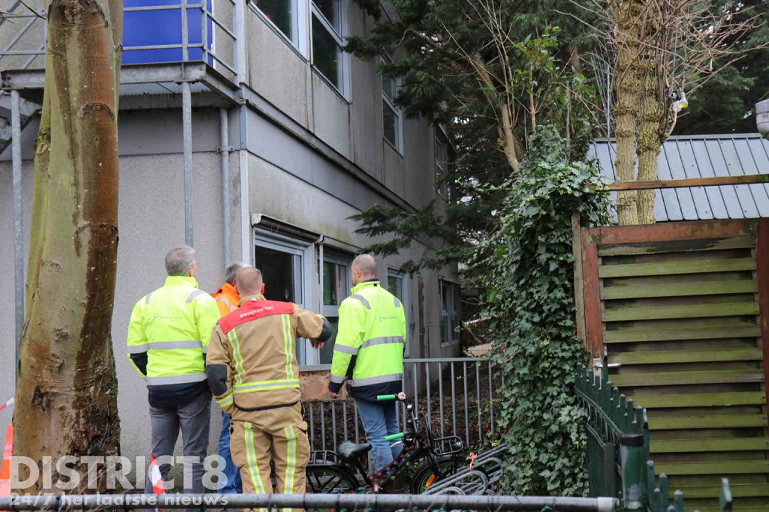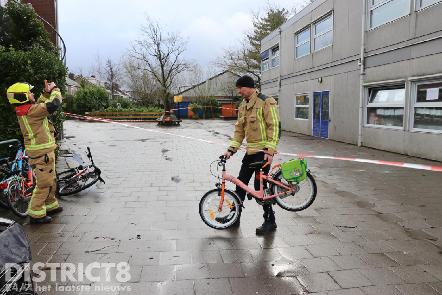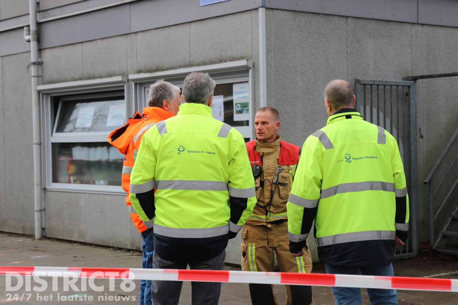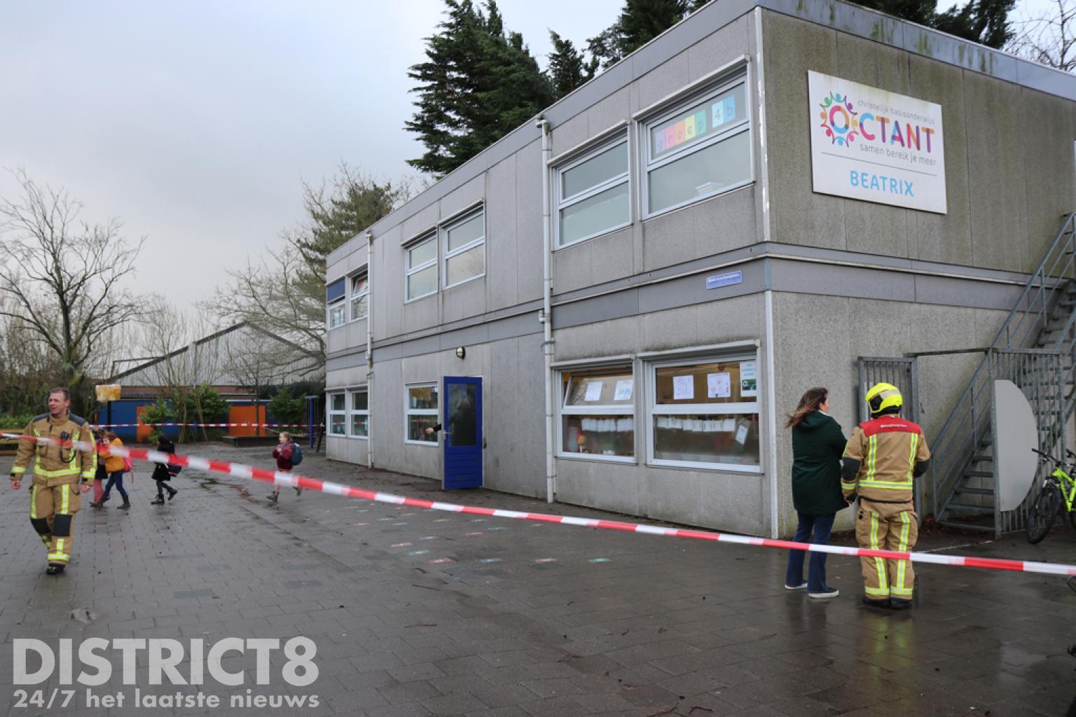 Het schoolplein is afgezet en de brandweer, politie en de gemeente zijn ter plaatse.