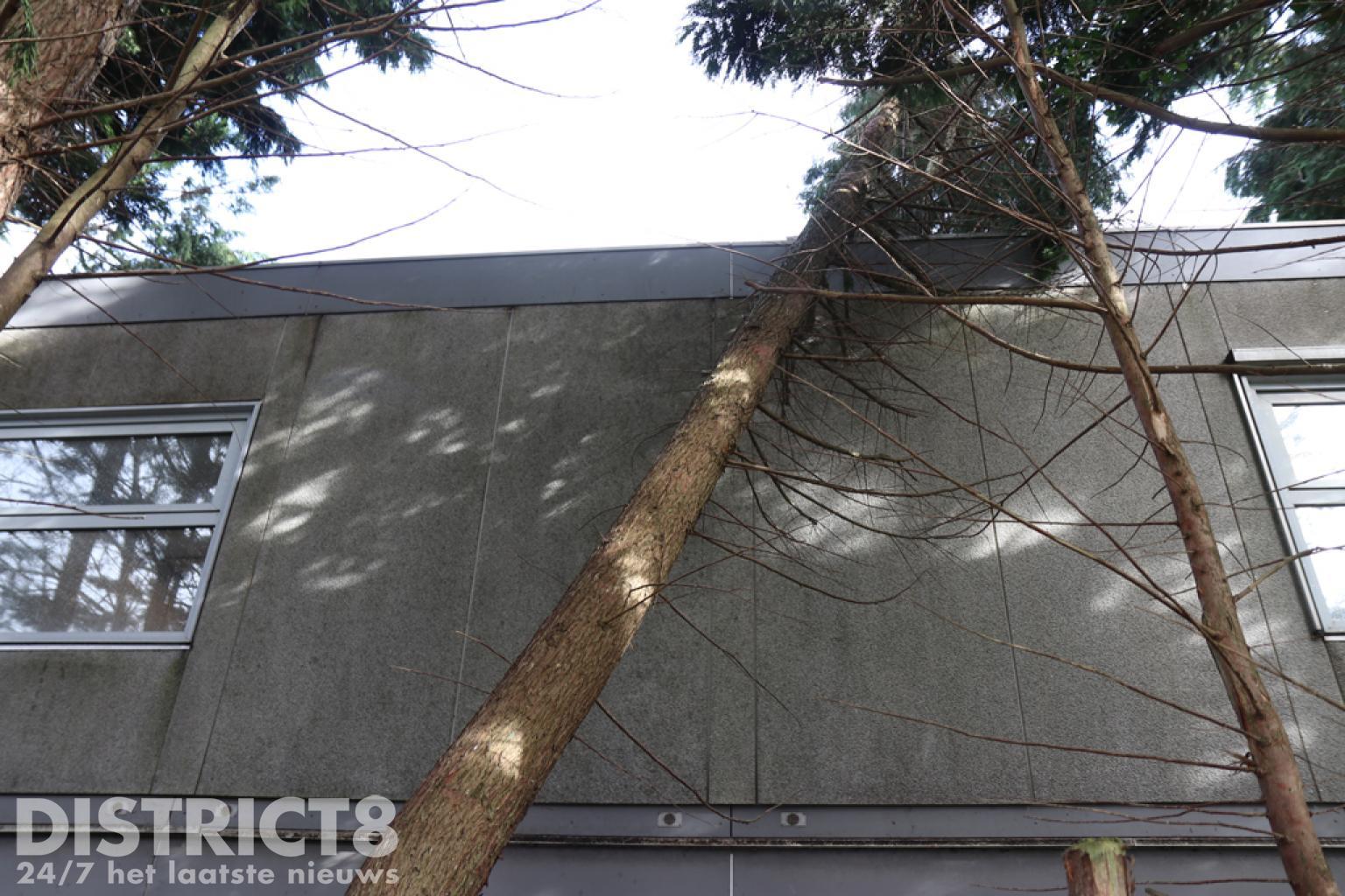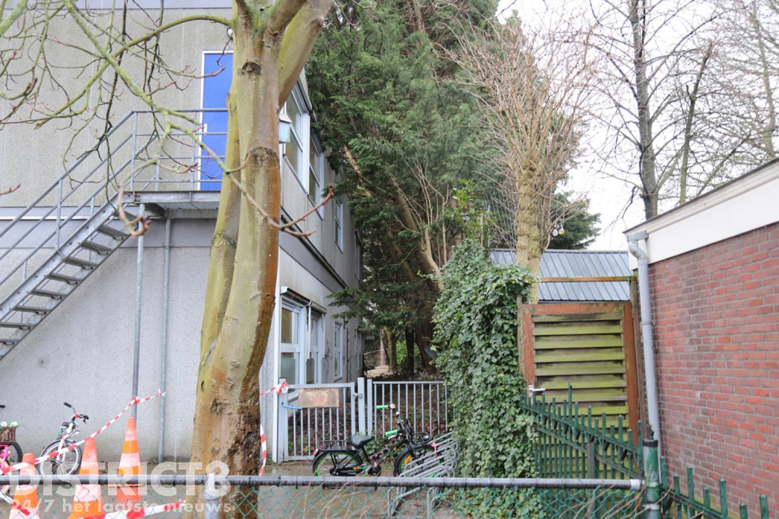 Bij aankomst werd al snel duidelijk dat het noodgebouw vol kinderen ontruimd moest worden vanwege de veiligheid. Buiten is er een boom tegen het noodgebouw van de school gevallen. De brandweer heeft de kinderfietsjes verplaatst. De kinderen worden opgevangen in het hoofdgebouw.