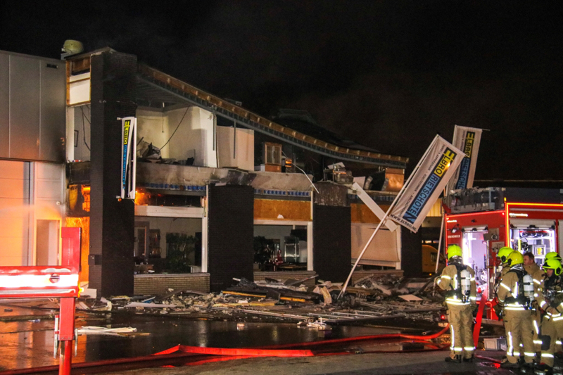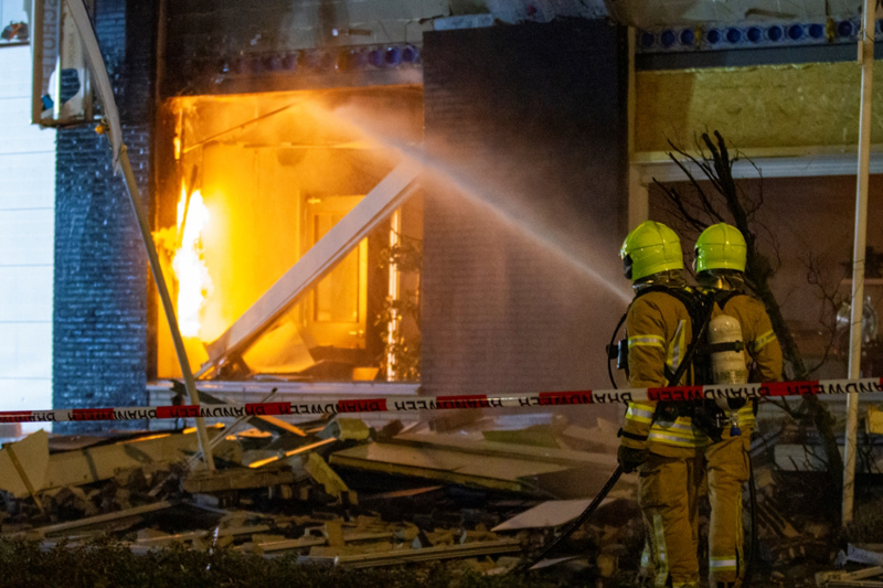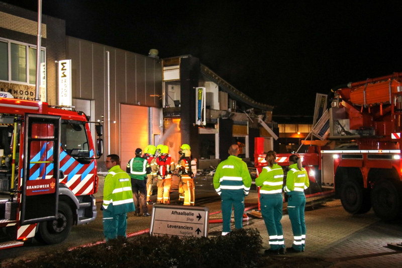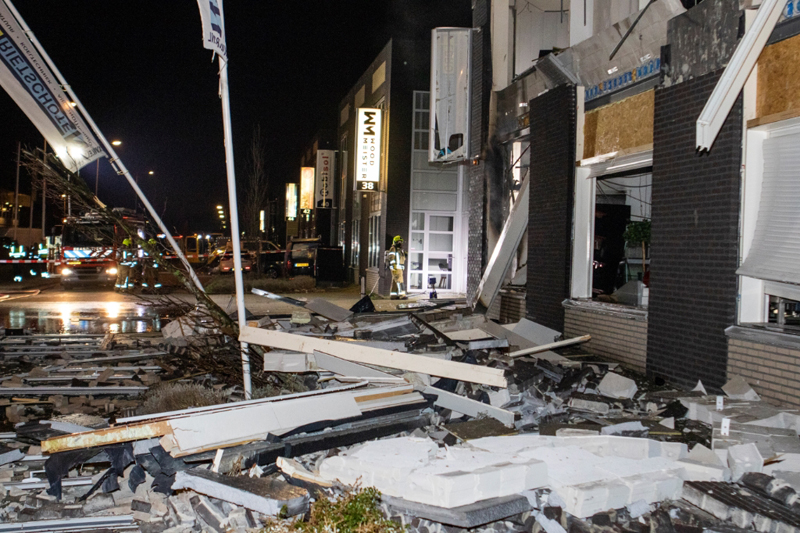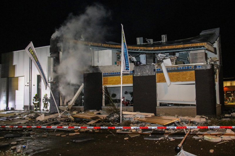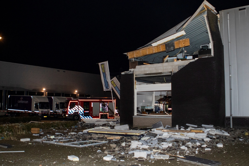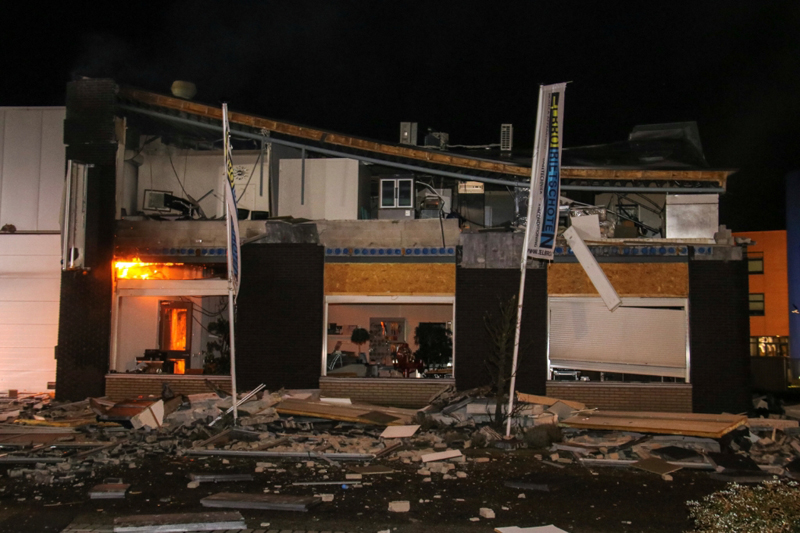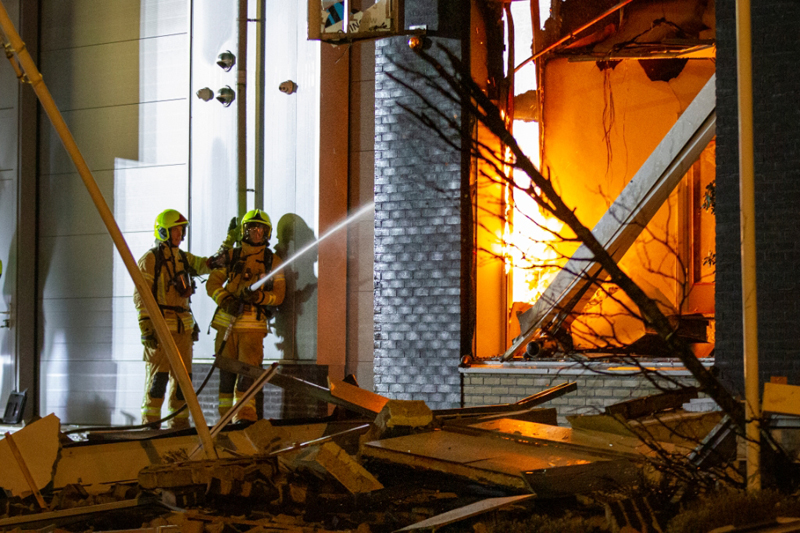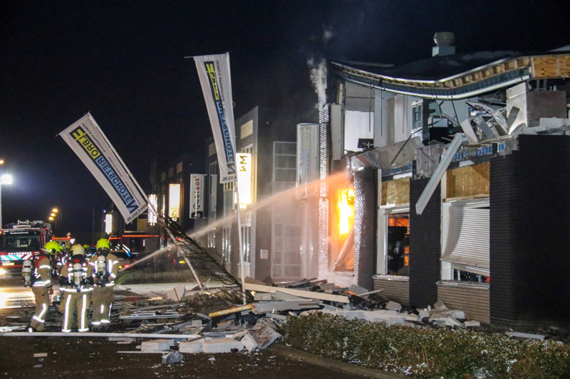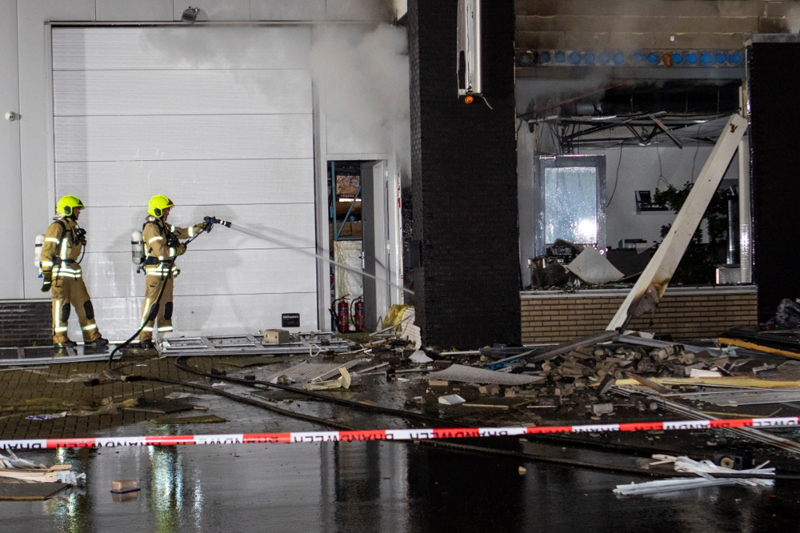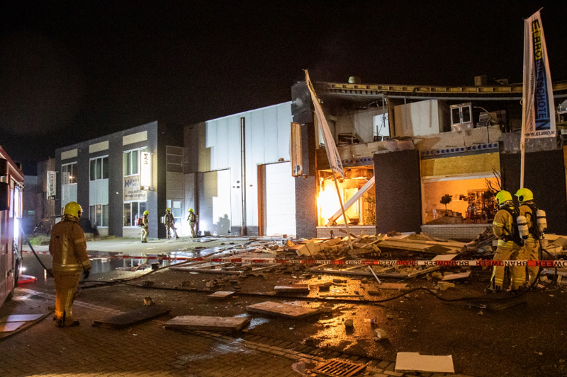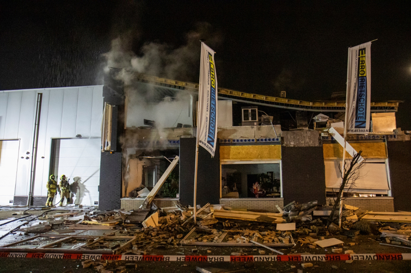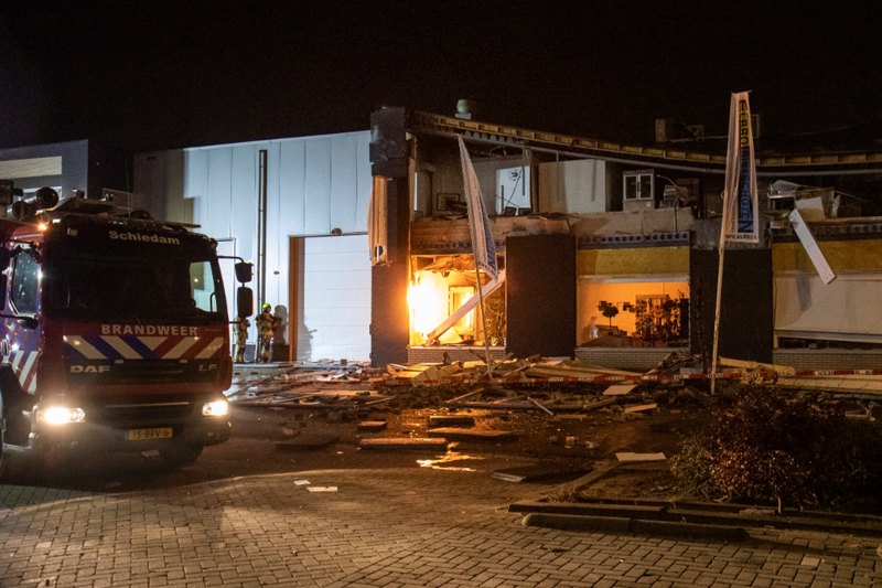 Rotterdam – In een bedrijfspand aan de Kiotoweg is in de nacht van zaterdag op zondag brand uitgebroken na een explosie. De brandweer werd gealarmeerd voor een brandgerucht. Eenmaal ter plaatse deed de brandweerploeg onderzoek naar de melding toen er een explosie plaatsvond. Het pand raakte zwaar beschadigd en de brokstukken lagen over de straat. Vanwege de explosie werden meerdere ambulances en het MMT ter plaatse gestuurd. Voor zover bekend raakte er niemand gewond. De brandweer zal nog geruime tijd bezig met (na)blussen. Er zal een onderzoek worden ingesteld naar de toedracht van de explosie en de brand.