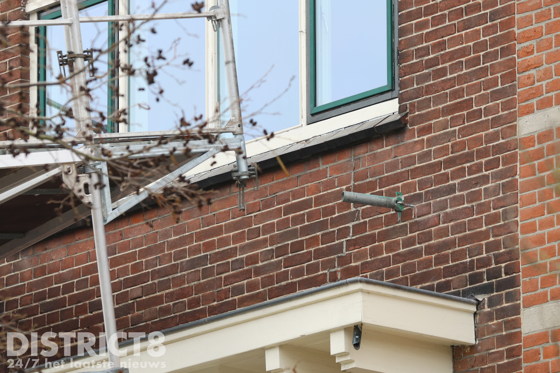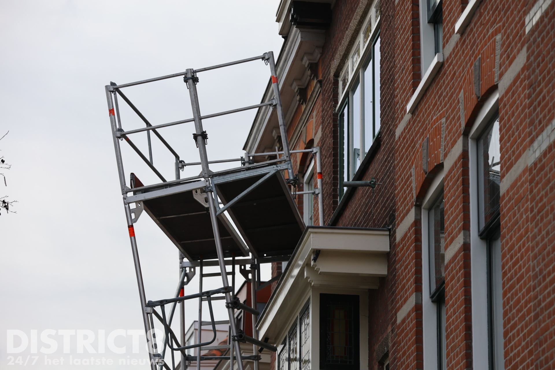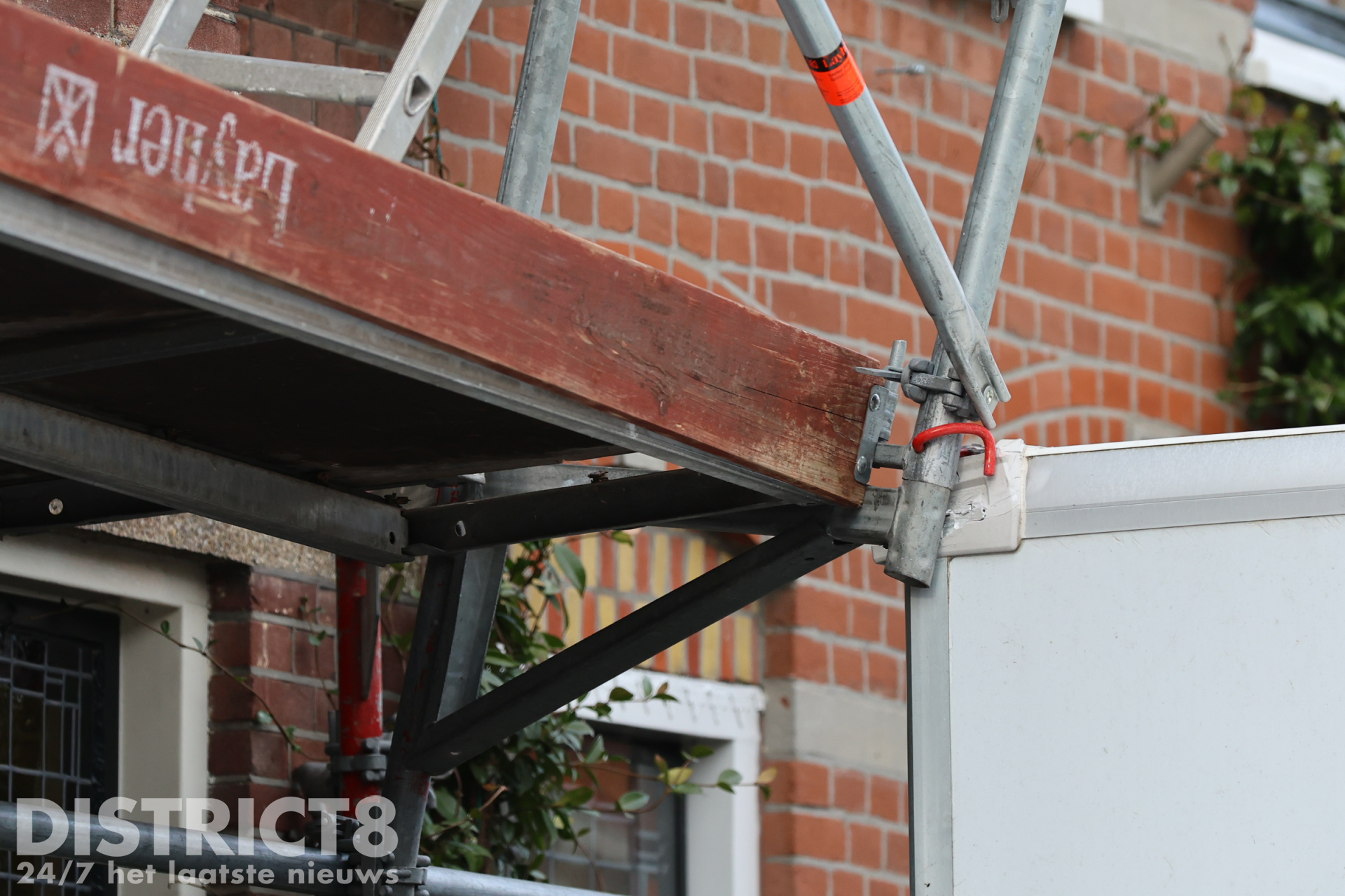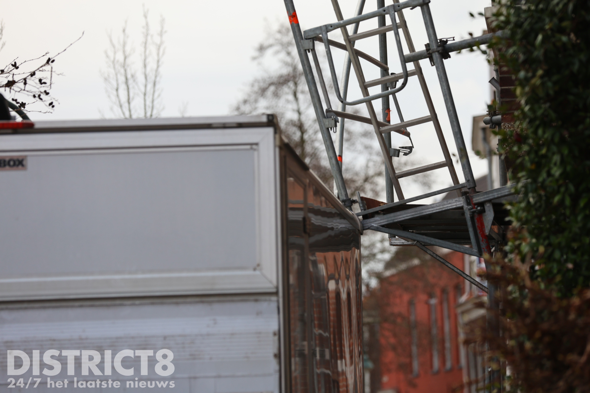 Het incident gebeurde iets voor half vier toen de bestuurder van de bedrijfsauto moest uitwijken voor een fietser. Precies op de plek waar hij uitweek, stond een steiger tegen een woning opgesteld. Met de hoek van de laadbak raakte hij de steiger, waardoor deze dreigde om te vallen.