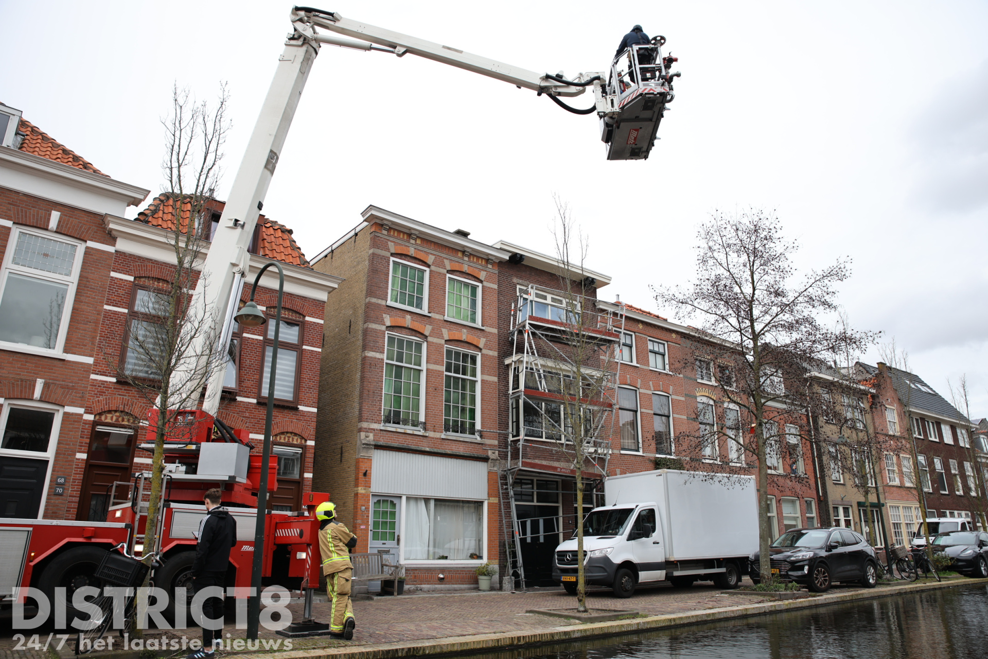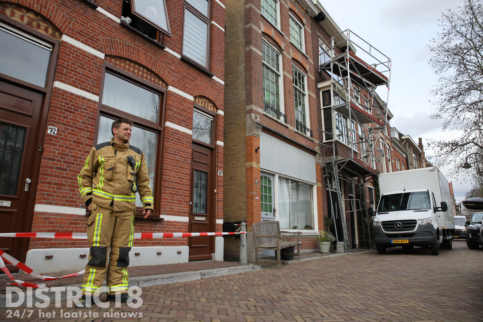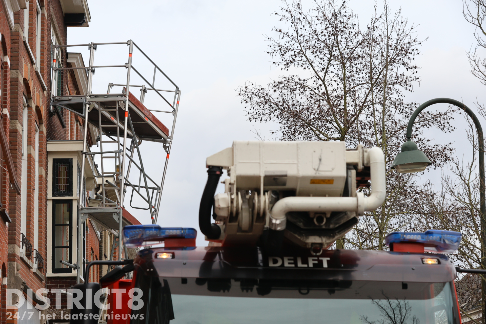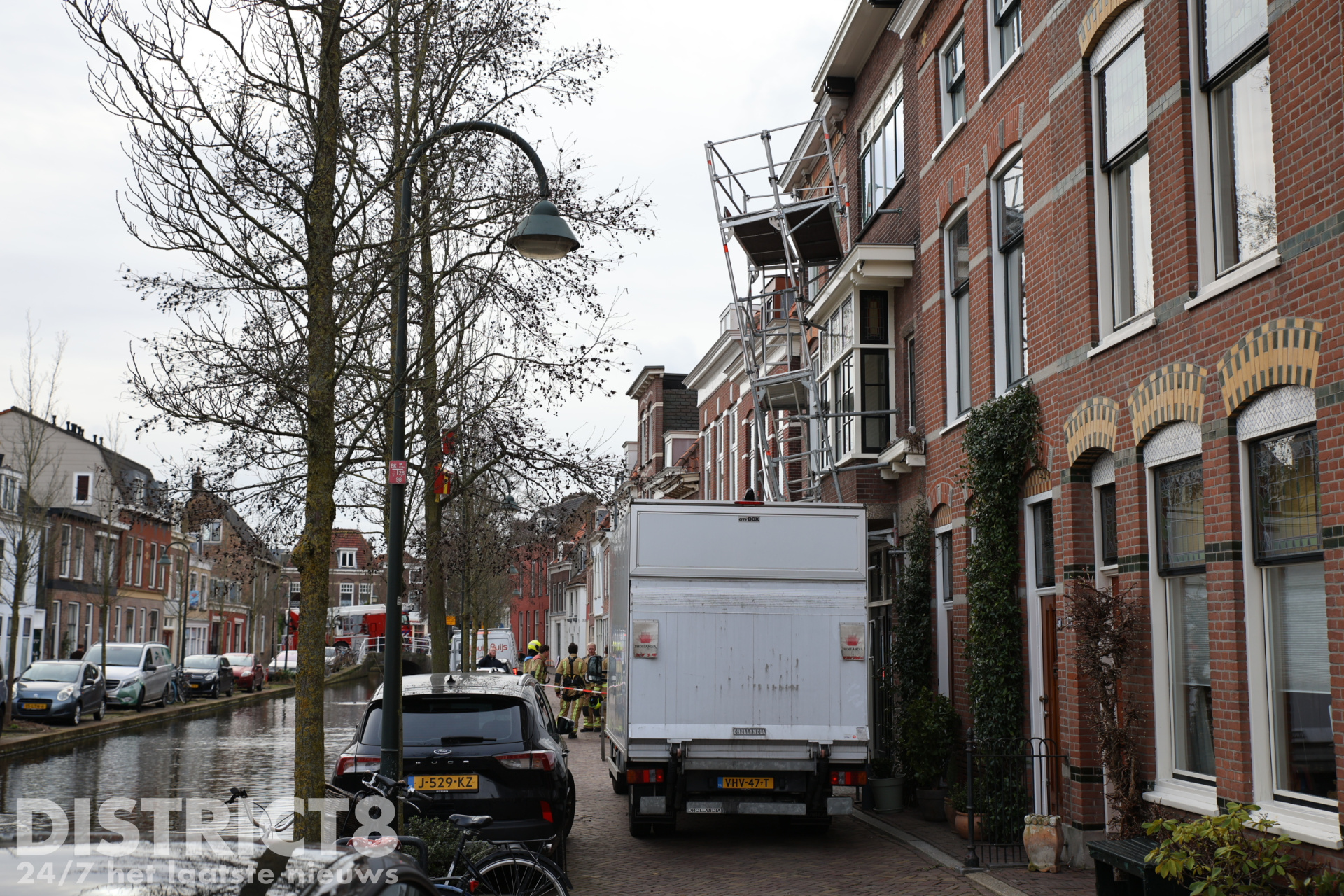 Het incident gebeurde iets voor half vier toen de bestuurder van de bedrijfsauto moest uitwijken voor een fietser. Precies op de plek waar hij uitweek, stond een steiger tegen een woning opgesteld. Met de hoek van de laadbak raakte hij de steiger, waardoor deze dreigde om te vallen.