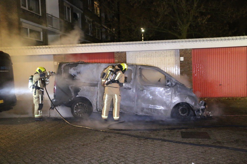 Den Haag – Op de Schoutendreef in Den Haag is zondag op maandagnacht een bedrijfsbus in vlammen opgegaan. De bus brandde volledig uit.