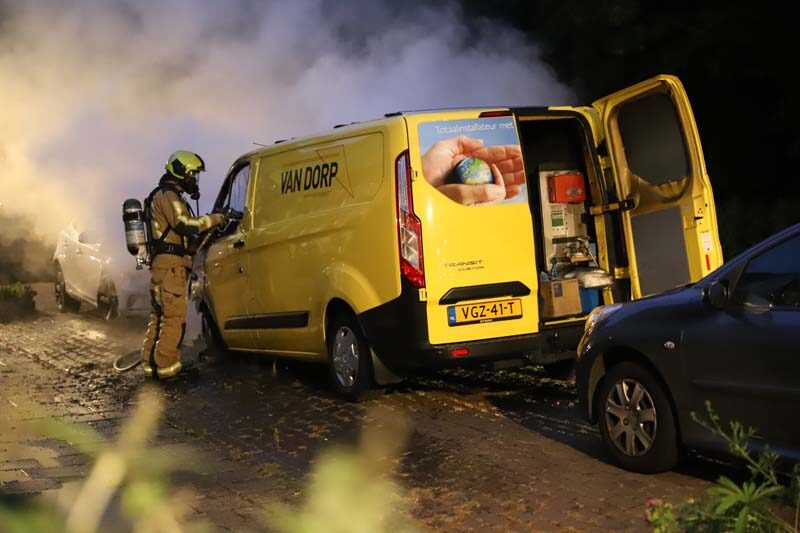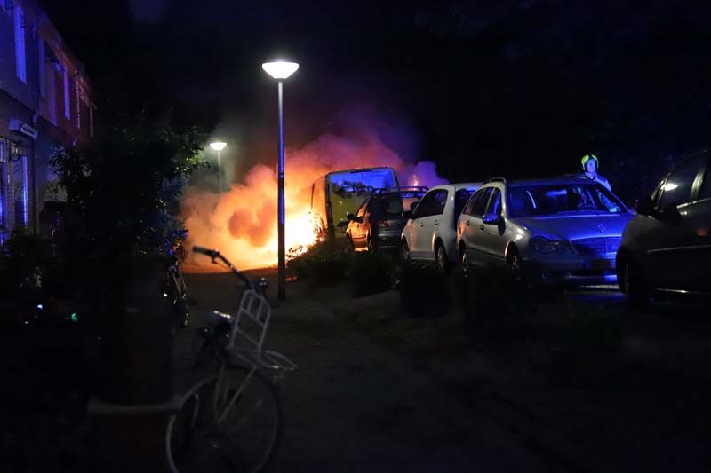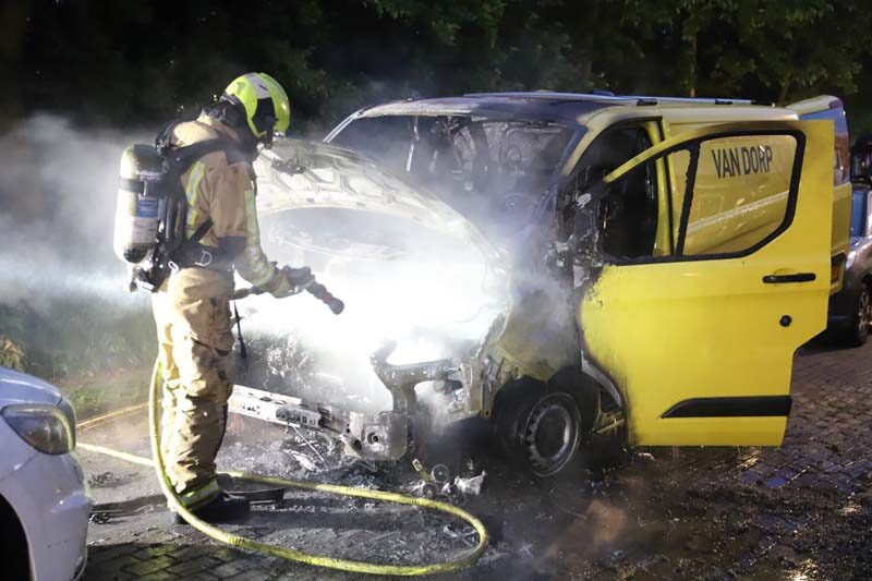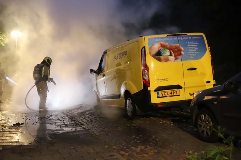 Delft – Een geparkeerd bedrijfsbusje is vannacht uitgebrand aan de Brasserskade in Delft.