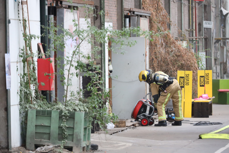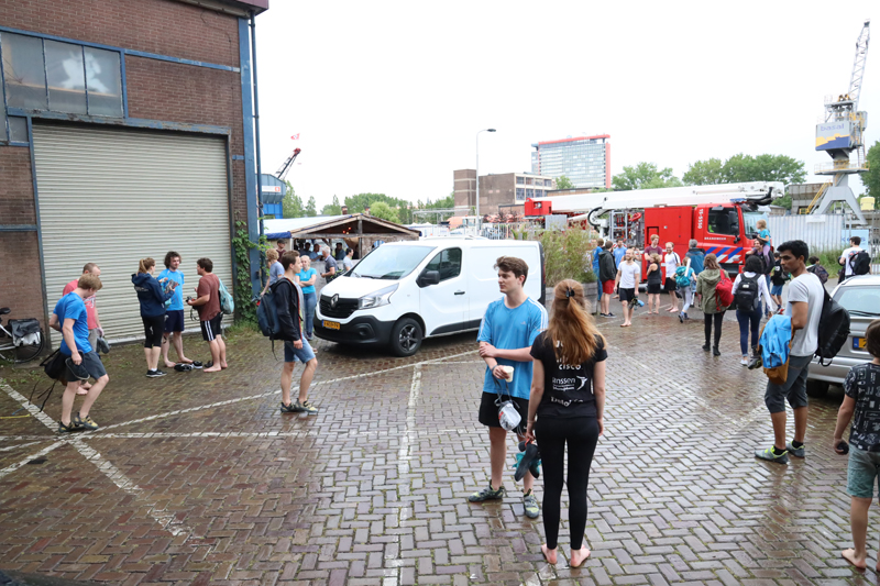 De hele hal vult zich met rook. Het sprinklersysteem is aangeslagen en daar komt veel water bij vrij. Waar de rook vandaan komt was in eerste instantie niet duidelijk, uiteindelijk bleek de oorzaak een stapel hout te zijn in een bedrijfspand wat in brand was gevlogen.