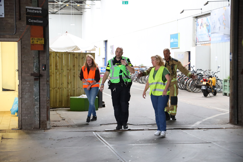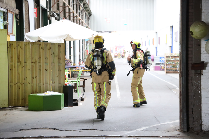 De brandweer schaalde snel op naar het sein middelbrand. Medewerkers van het de hal heeft iedereen ontruimd. Zo’n 100 mensen staan buiten en worden opgevangen.