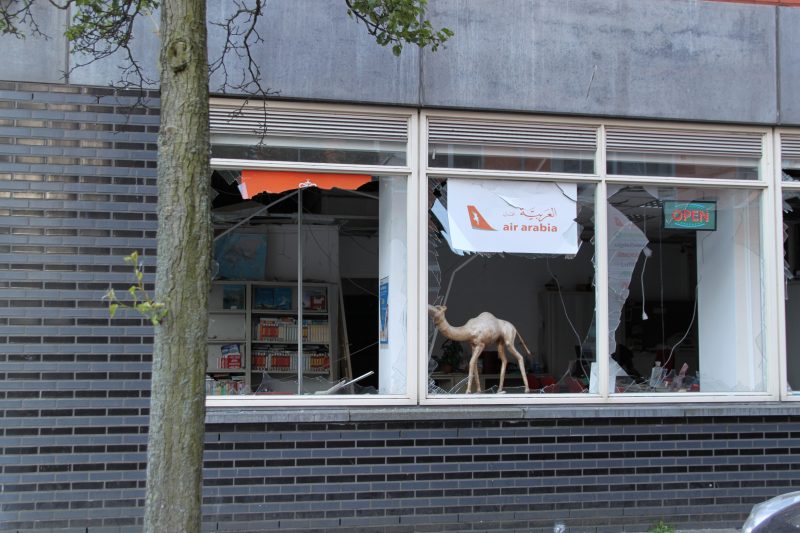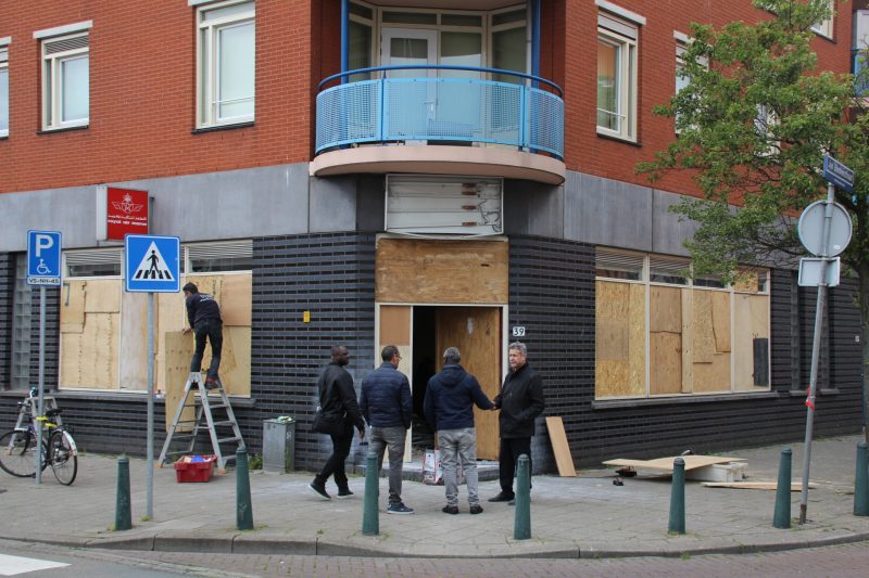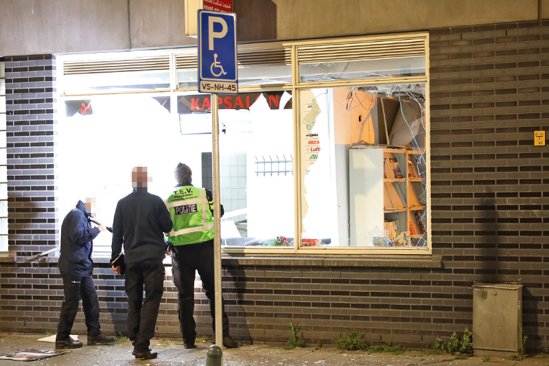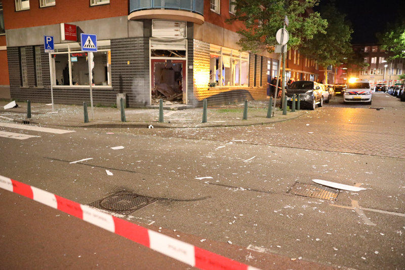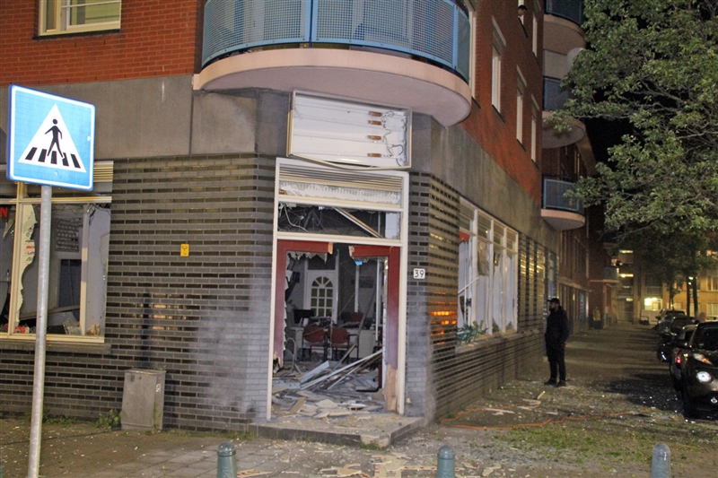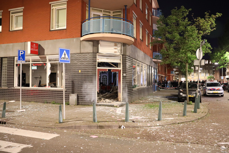 Op de Hoefkade in Den Haag zijn, na de explosie van vannacht, houten planken voor de deur en ramen gehangen. Het pand, waarin een reisbureau en een kapsalon gevestigd waren, zou van de vader van topcrimineel Reda N. zijn. De politie doet groot onderzoek en is op zoek naar de dader, die waarschijnlijk een explosief tegen of in het pand heeft geplaatst.