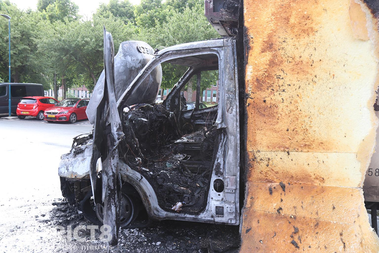 De brandweer heeft de brand geblust. De bestelbus heeft enorme schade opgelopen en is total loss. Een bergingsbedrijf heeft het voertuig geborgen.