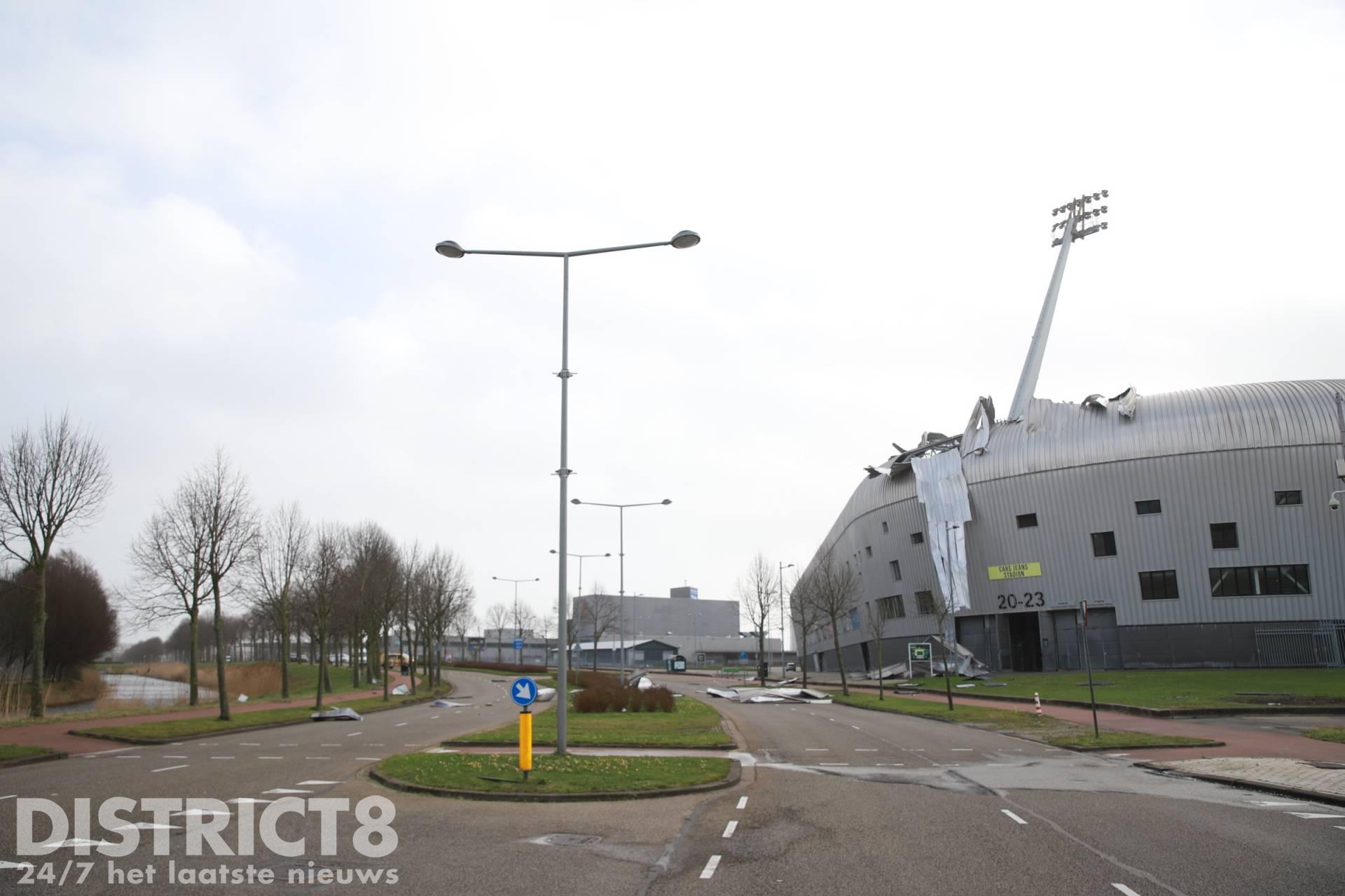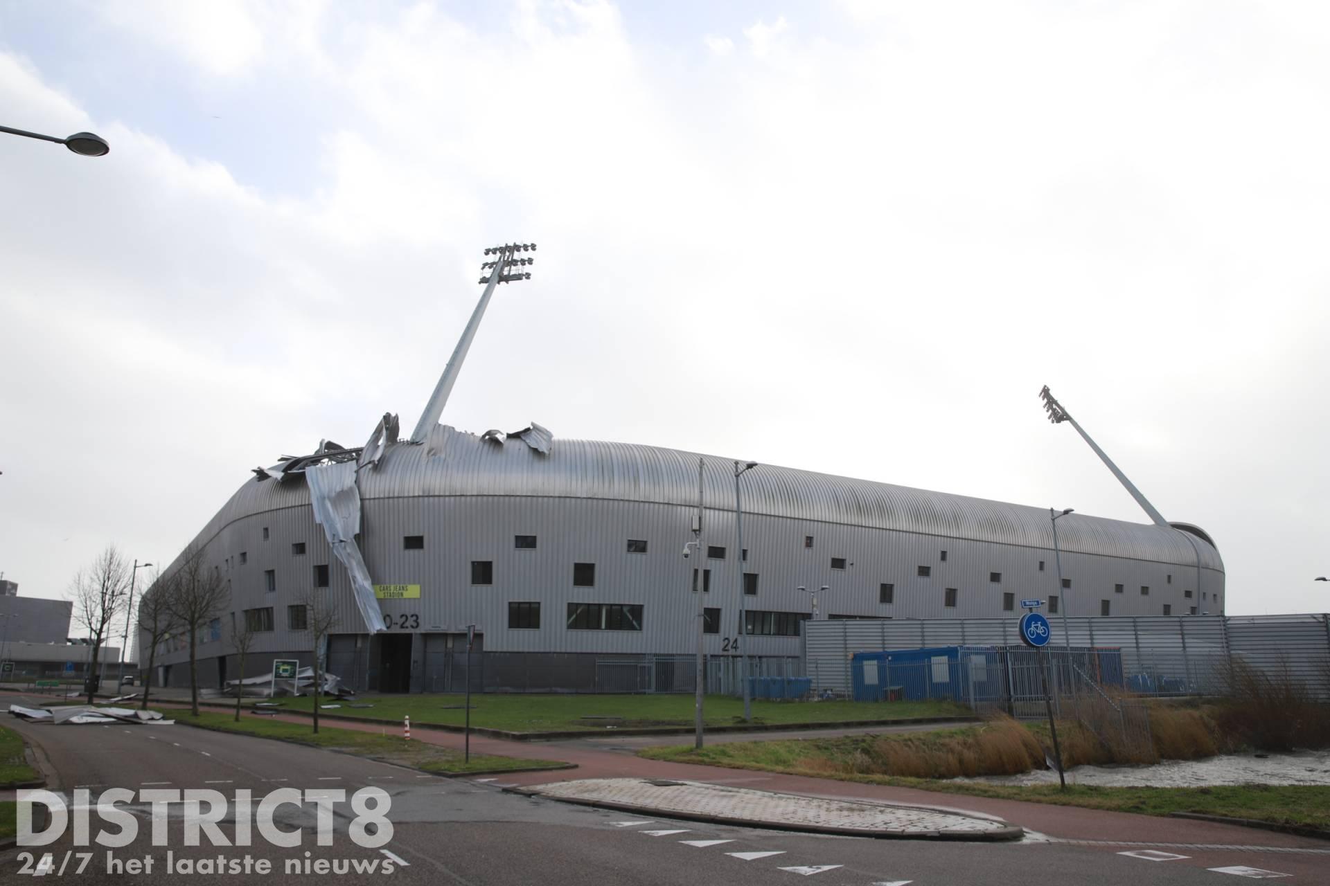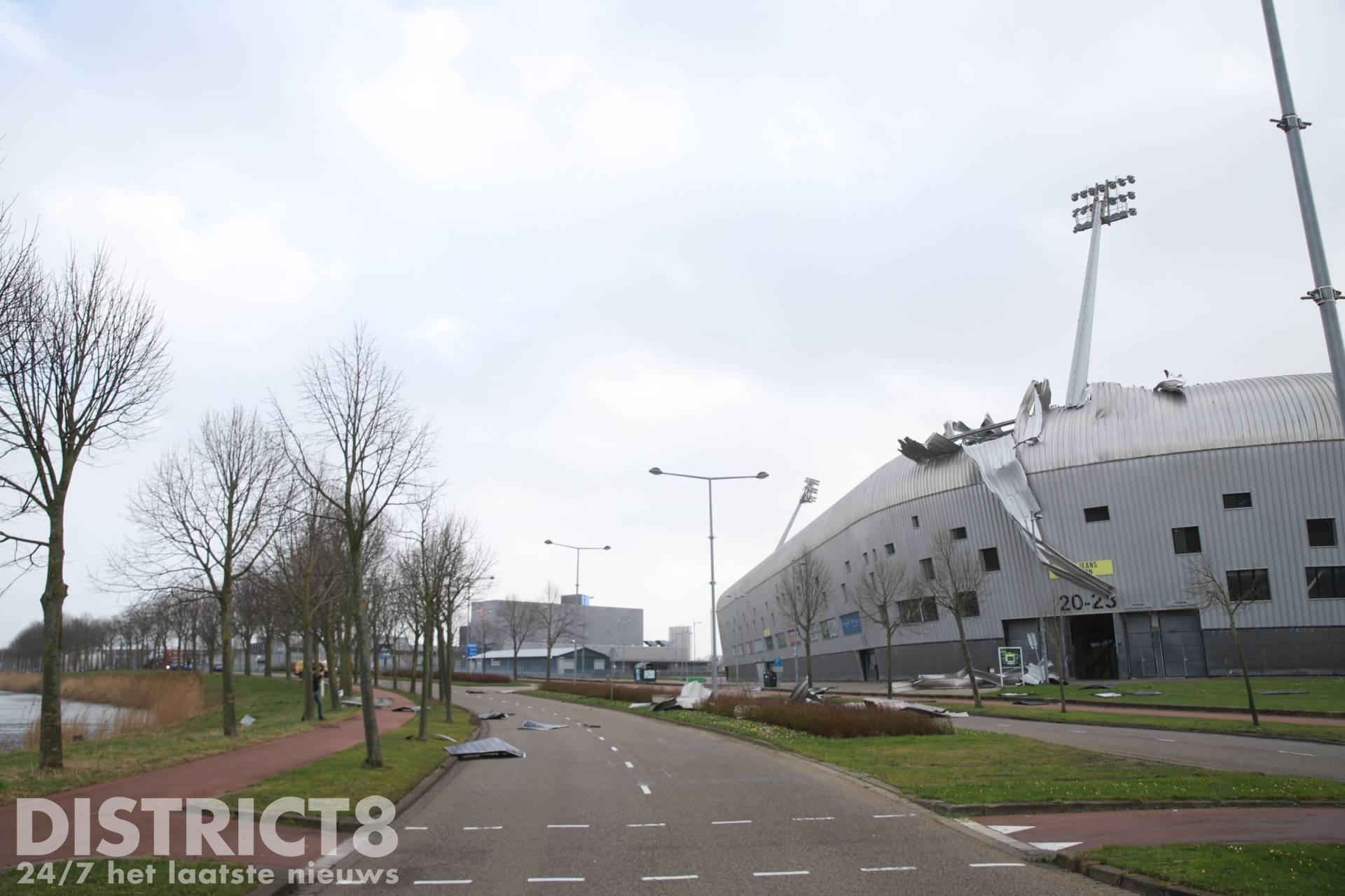 Den Haag – Bij het ADO Stadion aan het Haags Kwartier in Den Haag is een flinke ravage ontstaan door de harde wind.