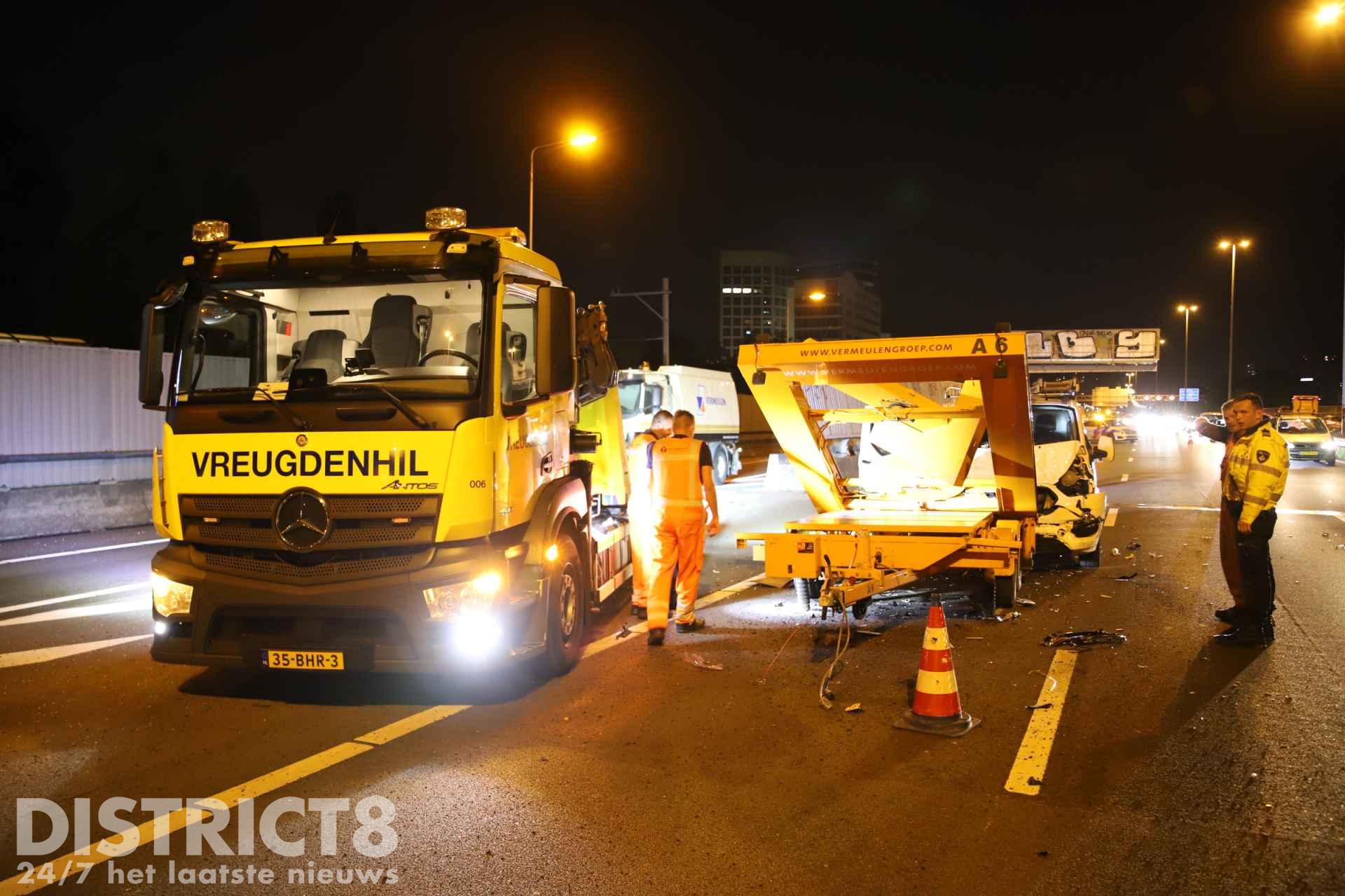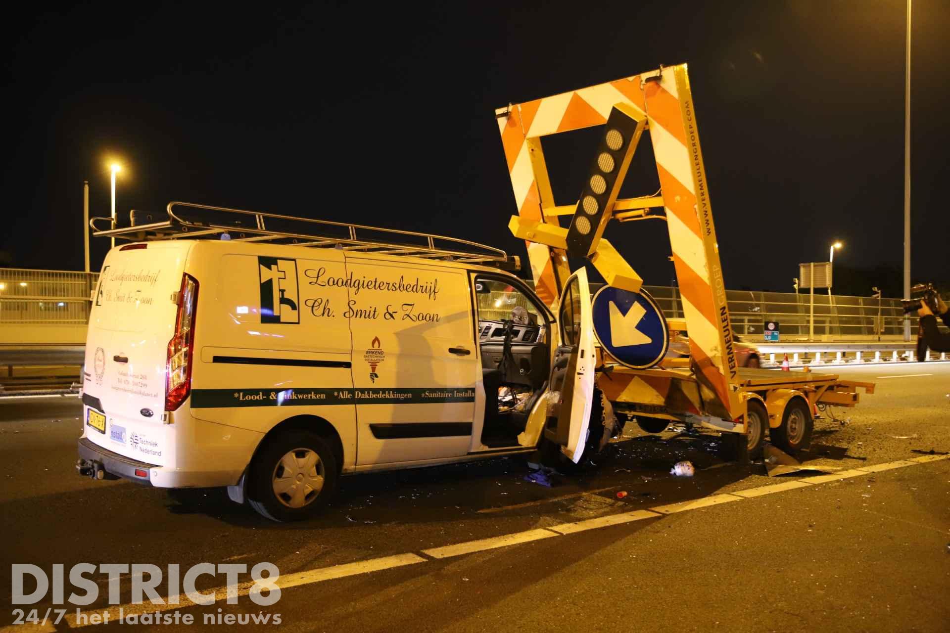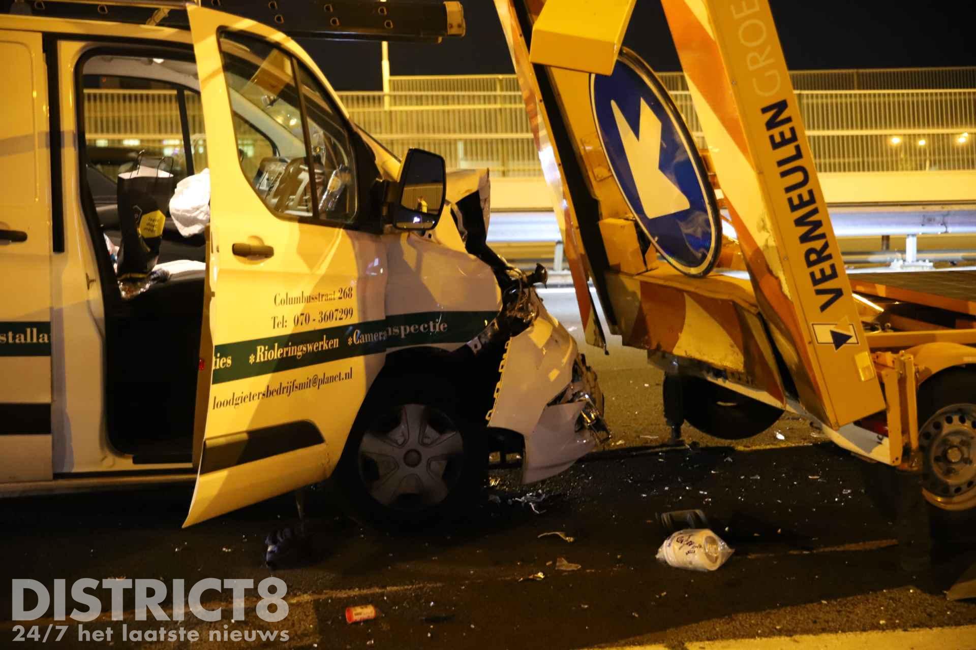 Voorburg – Op de Utrechtsebaan (A12) in Voorburg is woensdagavond 4 augustus een busje op een pijlwagen gebotst.