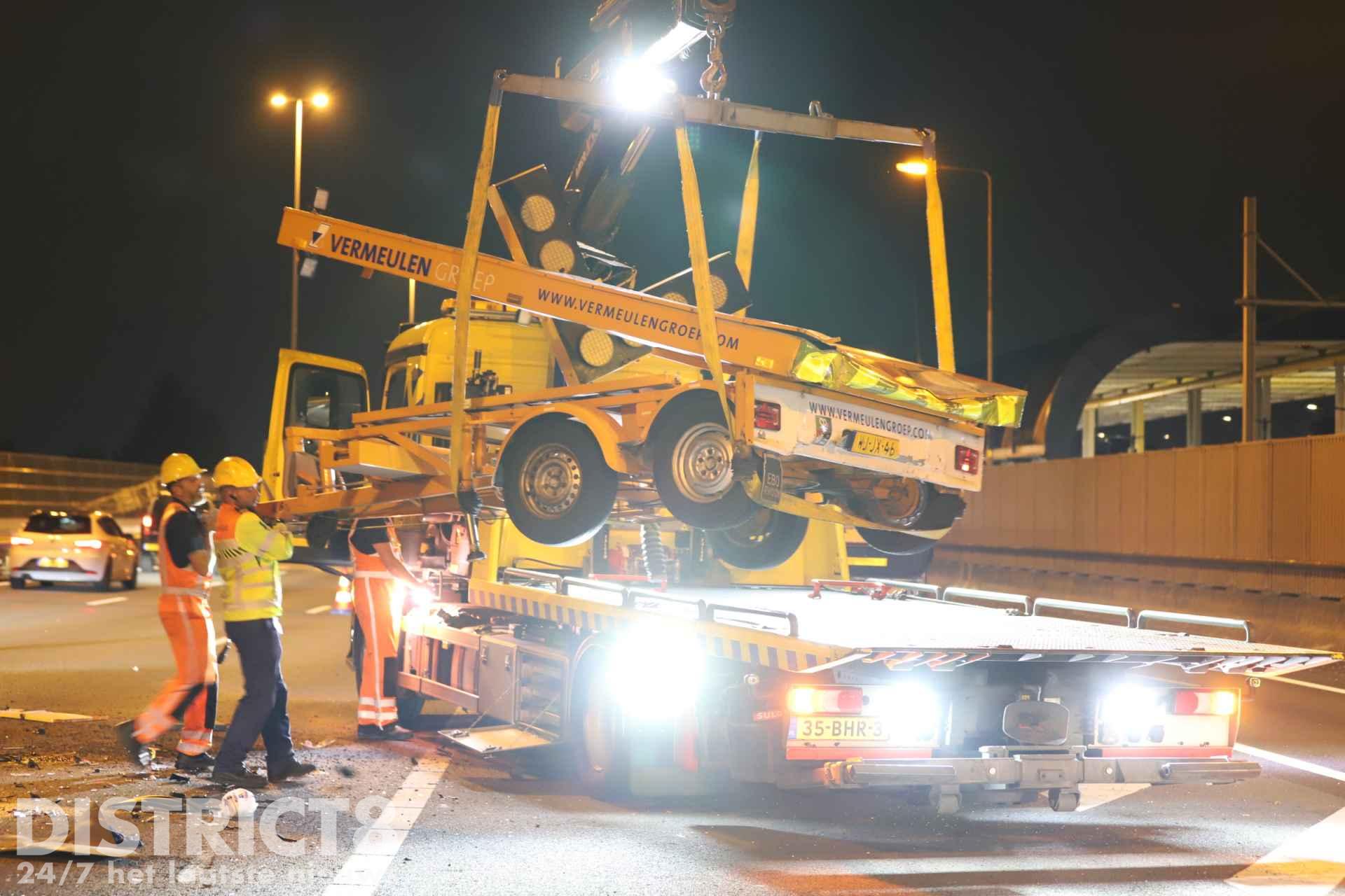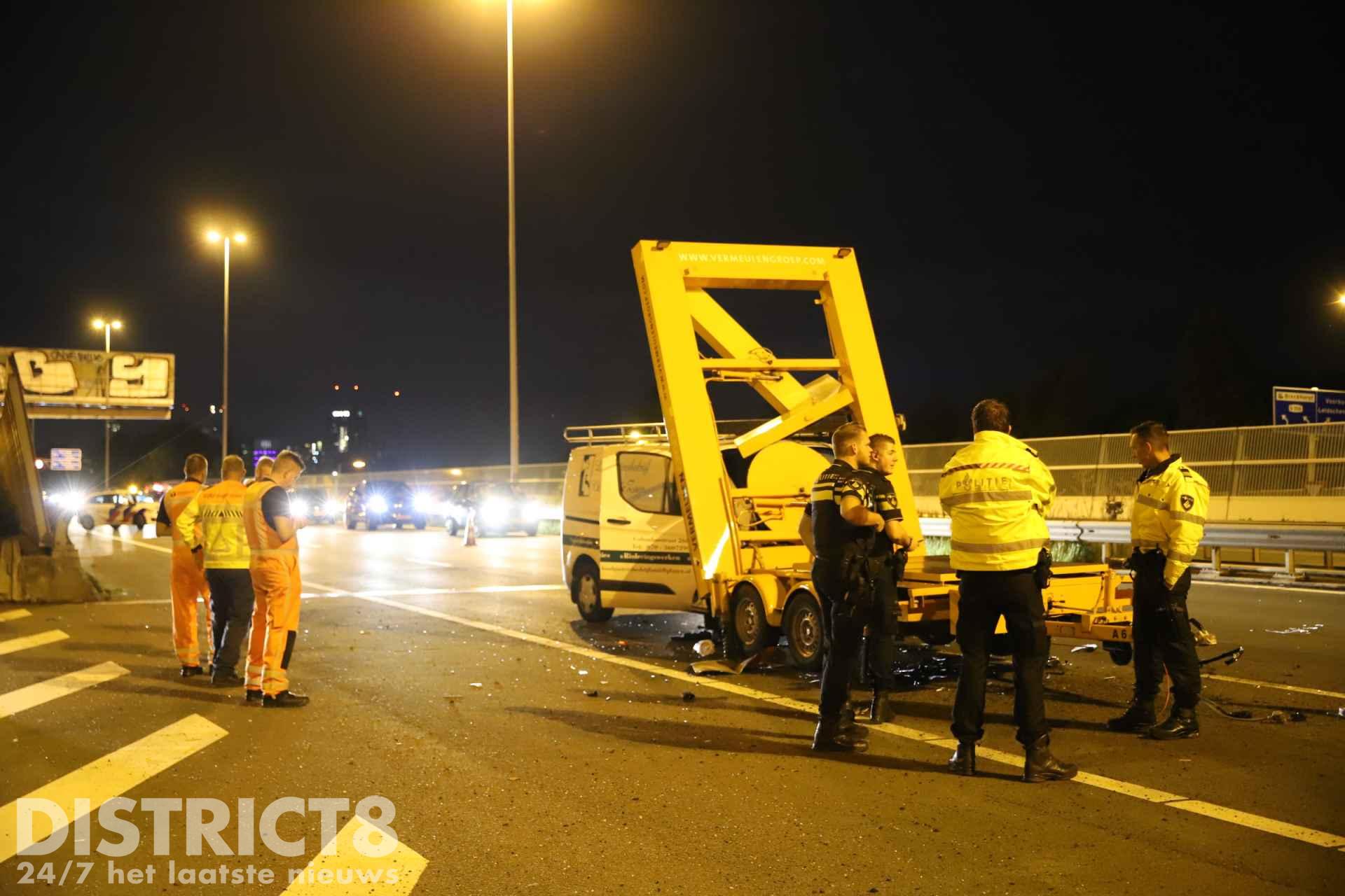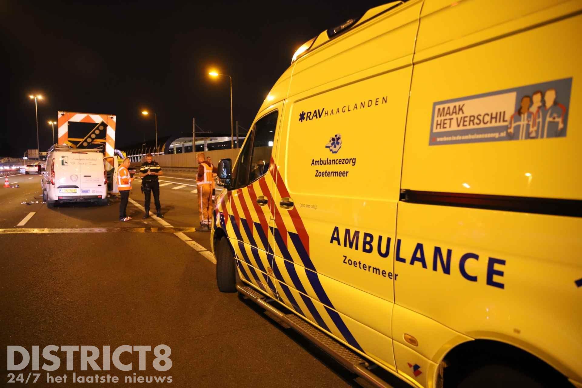 Door de aanrijding was een file ontstaan in de richting van Zoetermeer. Twee rijstroken waren afgesloten.