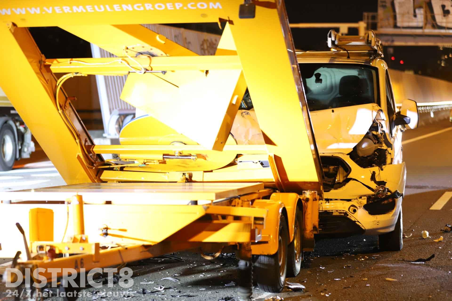 Bergingsbedrijf Vreugdenhil heeft de pijlwagen en het bestelbusje met enige moeite mee kunnen nemen. Een speciale ZOAB-cleaner werd opgeroepen om de weg te reinigen.