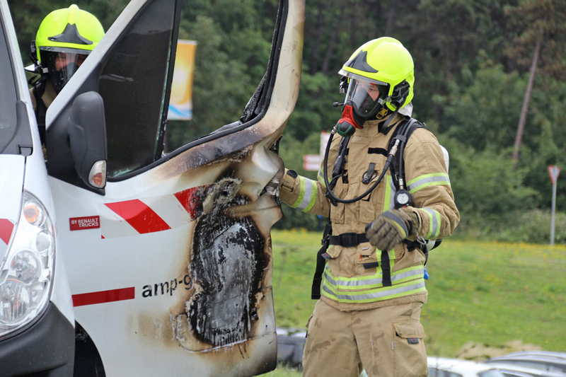 Door de brand liep de brandende diesel naar buiten. Hierdoor ontstond een brandend wegdek. Bij aankomst van de brandweer is direct begonnen met blussen. Eerst is begonnen met het blussen van de brandende diesel op het wegdek. Daarna is de bestelbus geblust. Hiervoor waren enige sloopwerkzaamheden nodig. De bestelbus moet als verloren worden beschouwd.