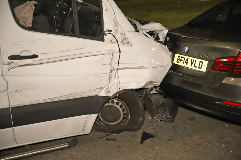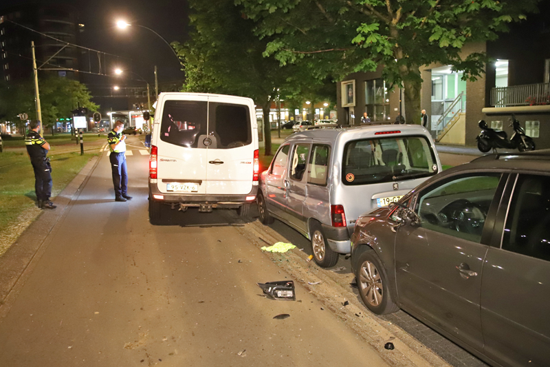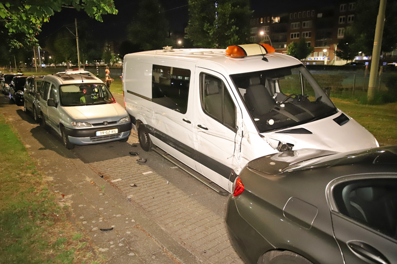Den Haag – Op de Laan van Wateringse Veld is een bestelbus tegen zes geparkeerde auto’s gebotst. De bestuurder is niet ter plaatse gebleven en heeft het op een rennen gezet. Getuigen zijn direct achter de man aangegaan. Volgens omstanders zou er iemand aangehouden zijn.
