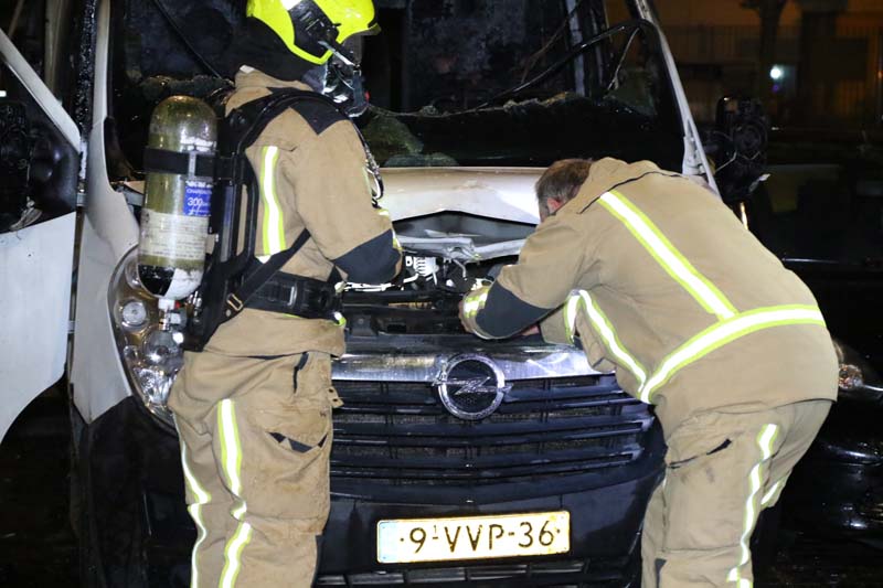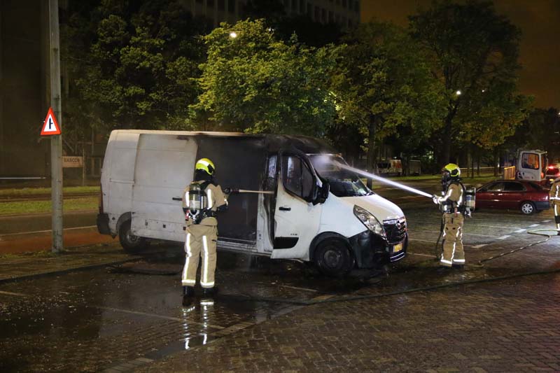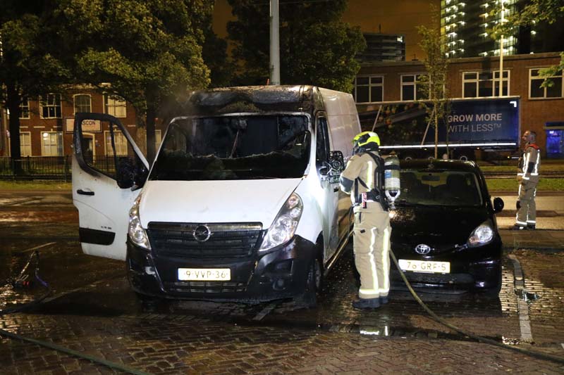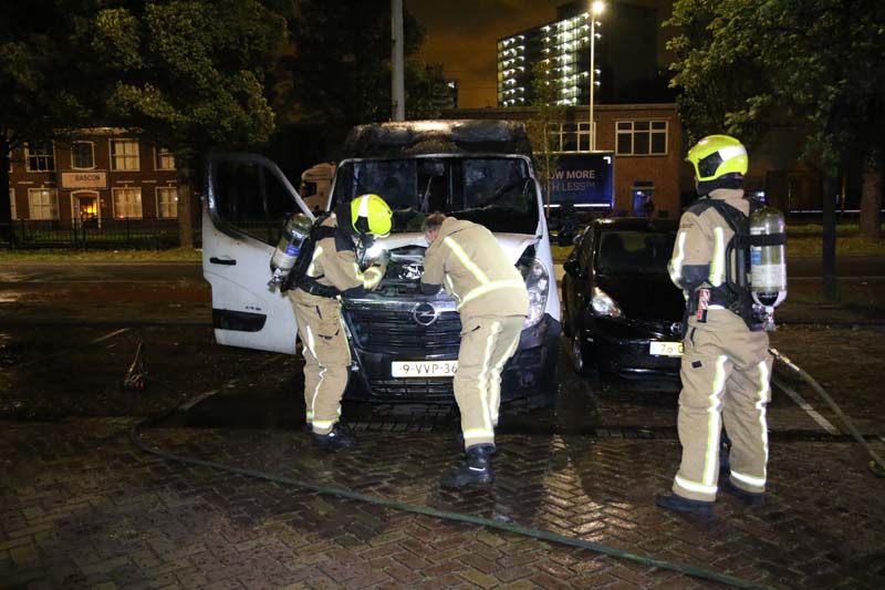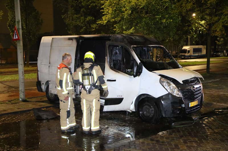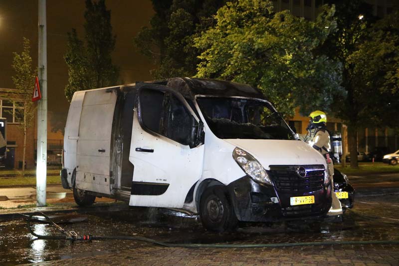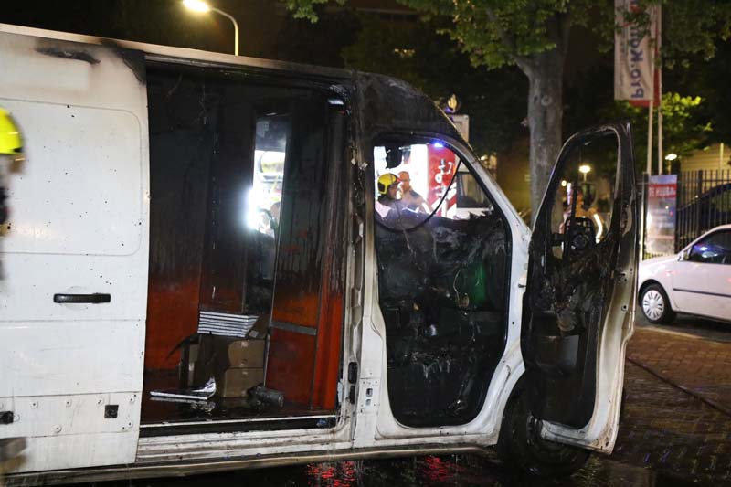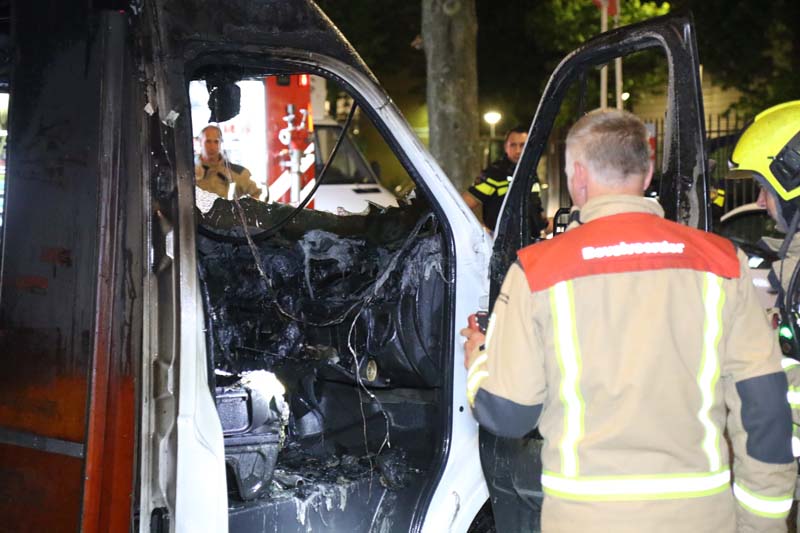 Den Haag – Aan de Fruitweg in Den Haag is in de nacht van dinsdag op woensdag 26 augustus een geparkeerde bestelbus volledig afgebrand.