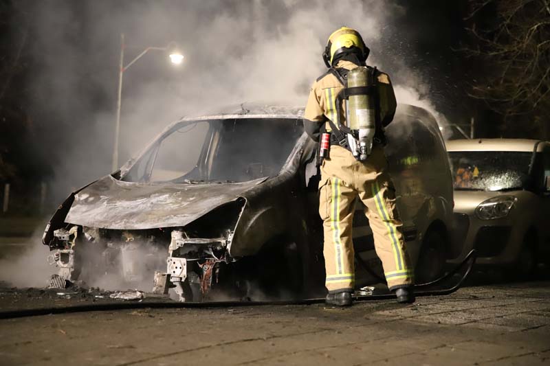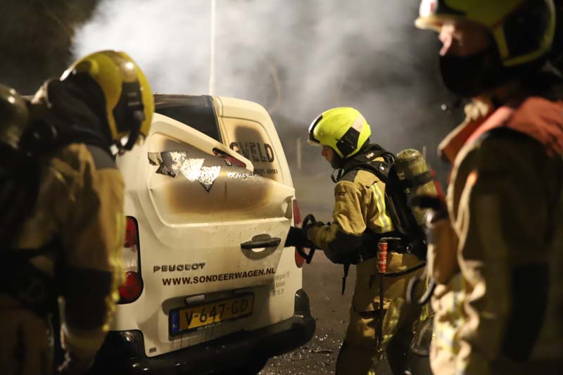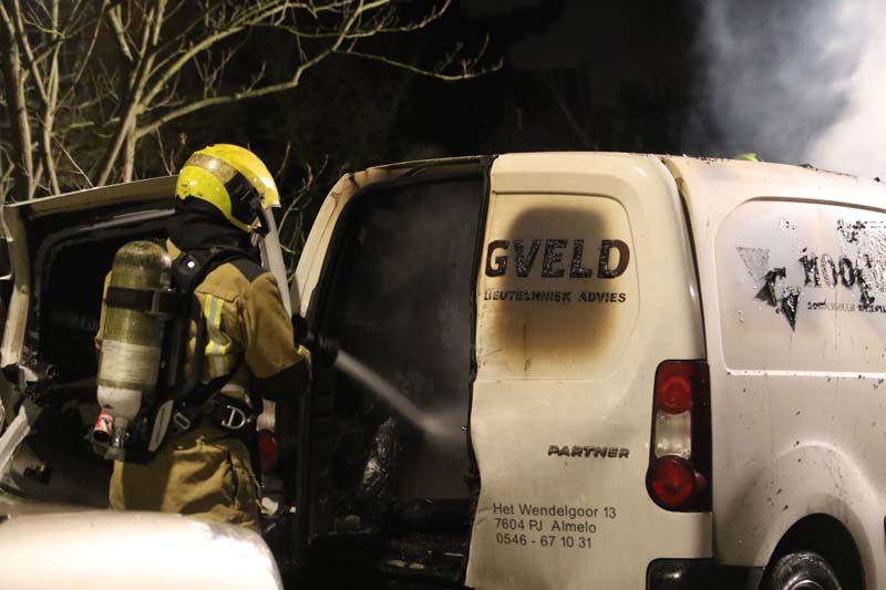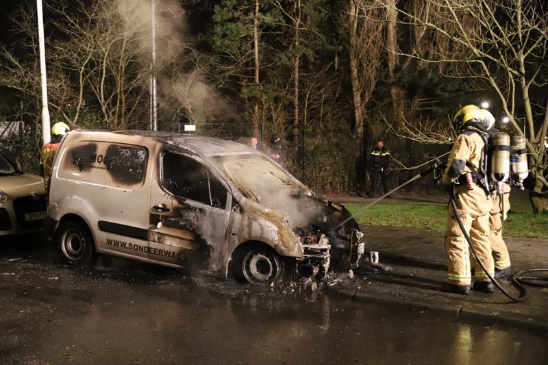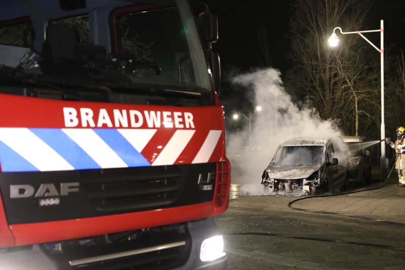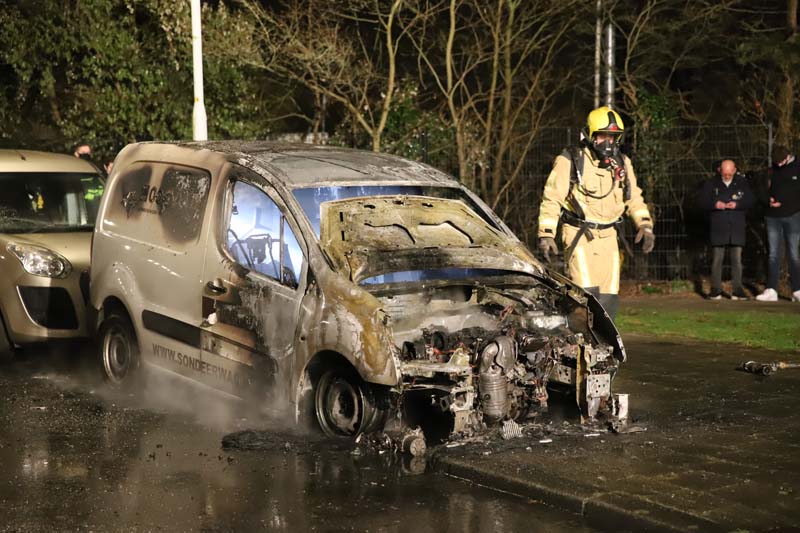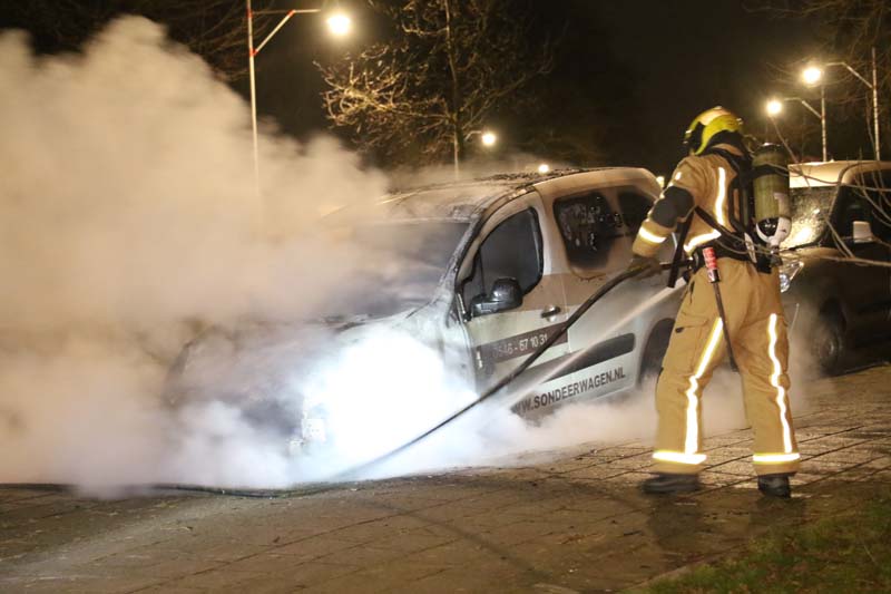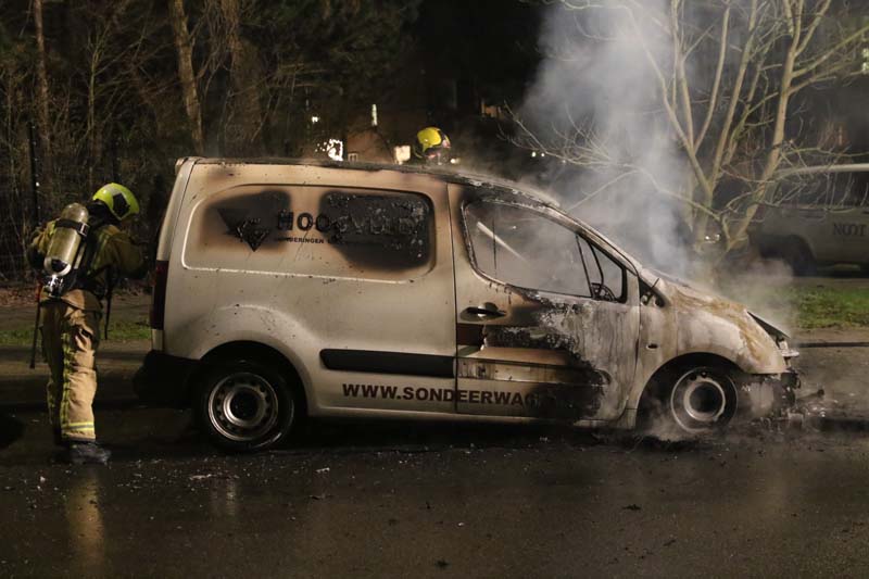 De brandweer kwam met spoed ter plaatse, maar bij aankomst stond het voertuig volledig in brand. Omdat de brand was doorgeslagen naar het achtercompartiment van het busje moesten de achterdeuren worden geopend.
