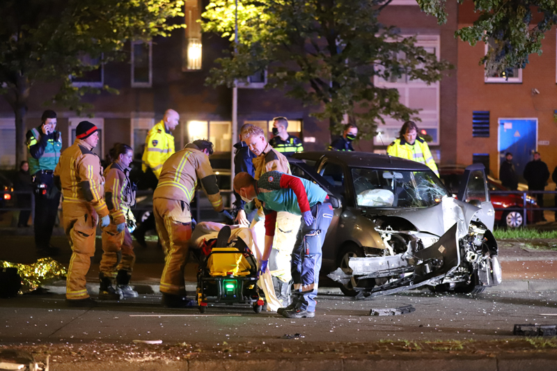 De twee inzittende van het voertuig raakten bij de aanrijding gewond. Meerdere hulpdiensten kwamen met spoed ter plaatsen.