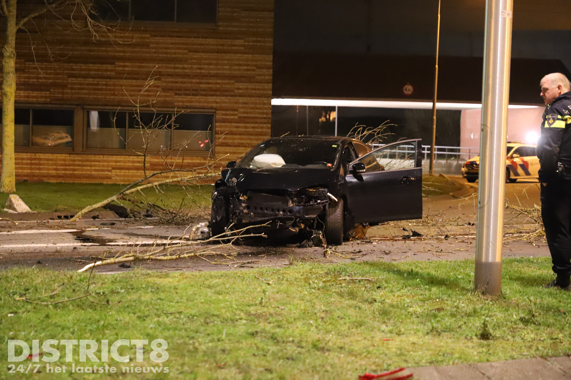 De bestuurder is door de politie aangehouden omdat hij mogelijk onder invloed achter het stuur zat.