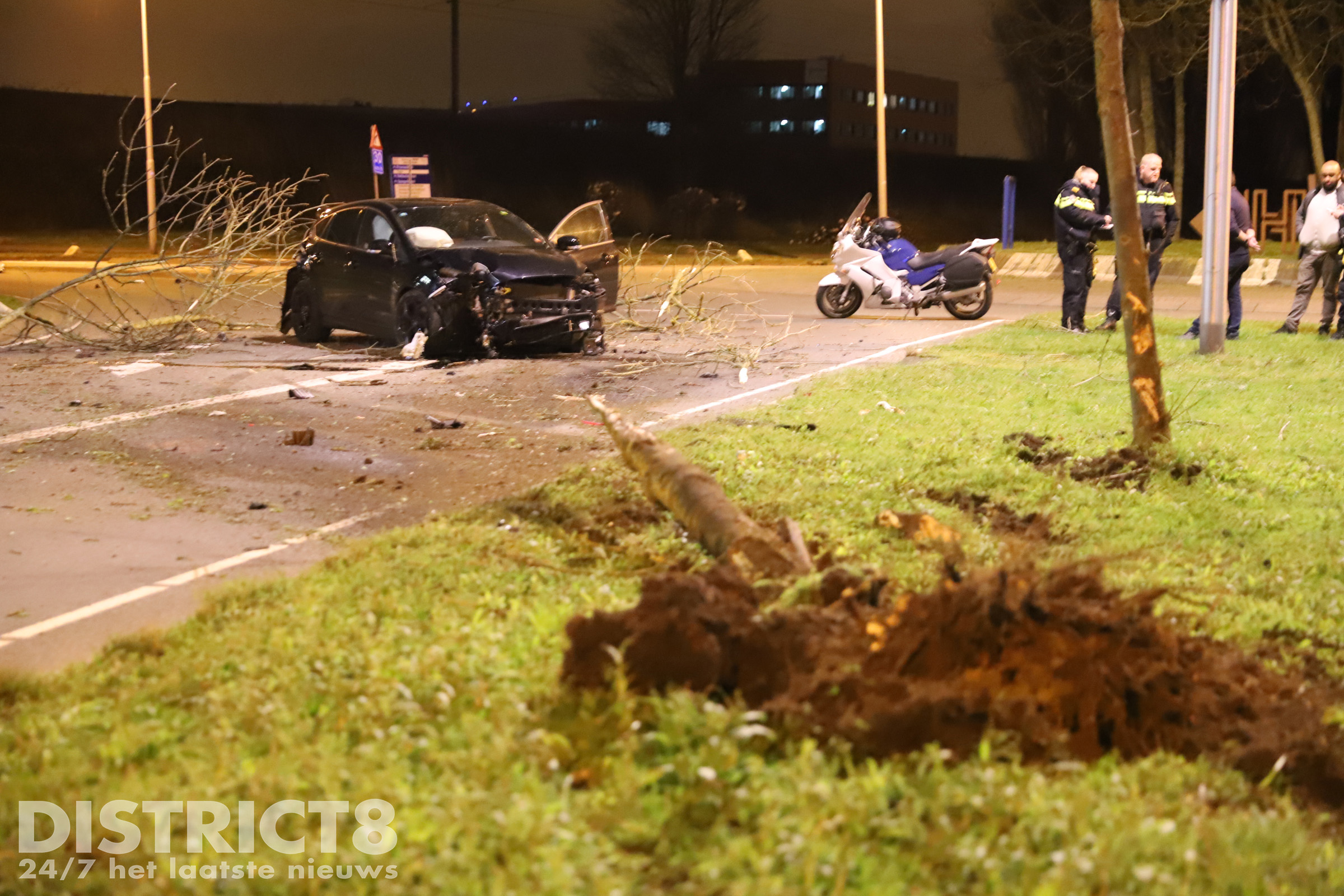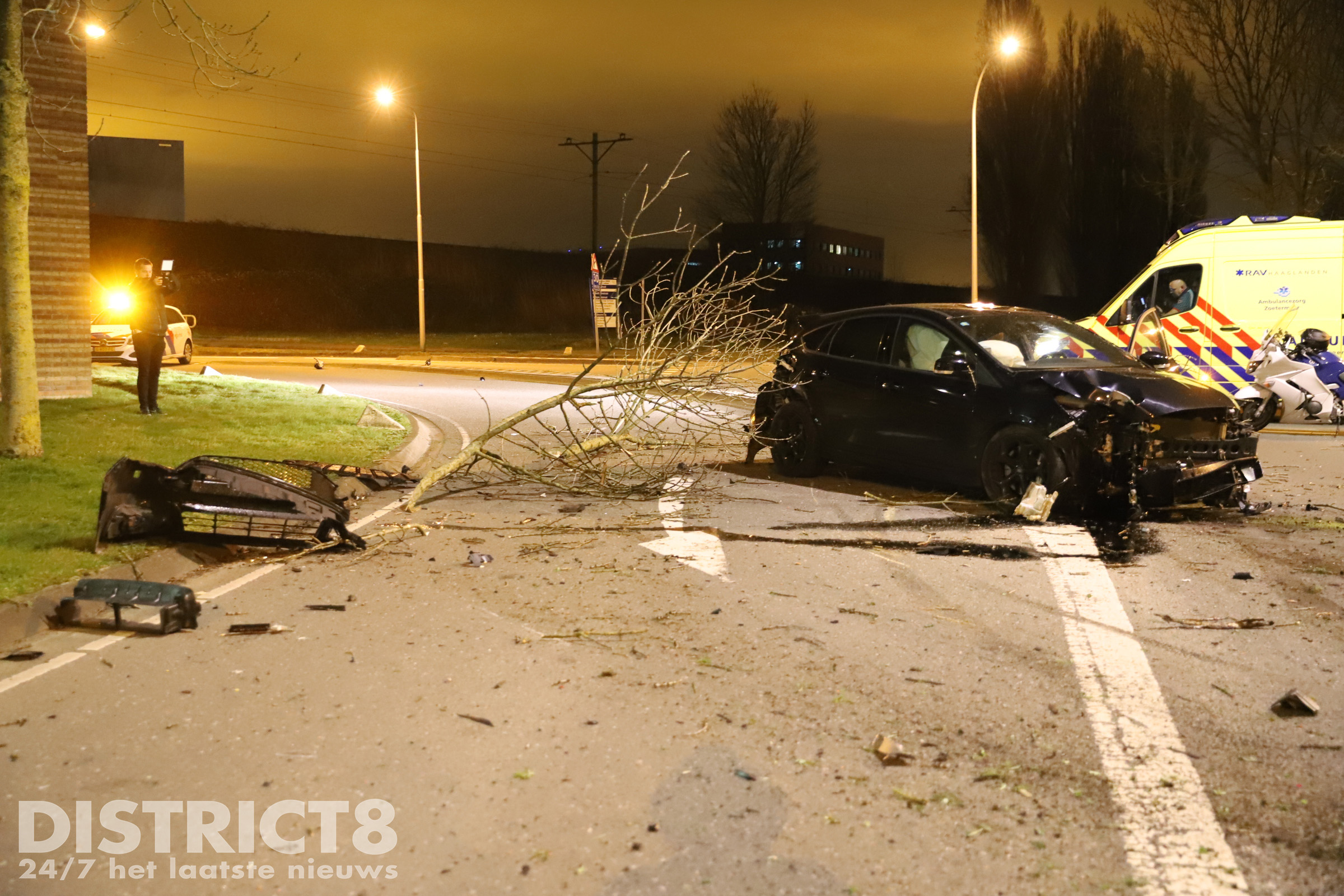 Nootdorp – Op de Hofweg in Nootdorp is in de nacht van woensdag op donderdag 24 februari een automobilist van de weg geraakt met zijn auto. Hij miste tijdens zijn bijzondere avontuur gelukkig wel een tegemoetkomende motorrijder.