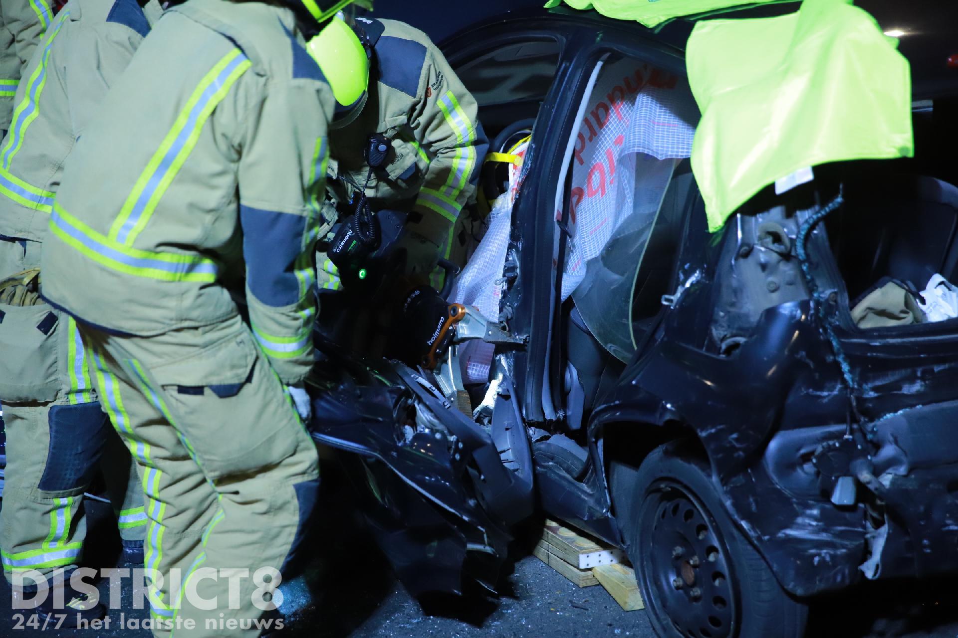 De schade is fors en in het voorste voertuig, die aangereden werd, heeft de bestuurder bekneld gezeten. De brandweer heeft meerdere deuren uit het voertuig geknipt, om zo bij het slachtoffer te kunnen komen. Het slachtoffer is hierop gestabiliseerd en op de brandcard geplaatst. Kort hierop is hij zonder spoed naar het Westeinde ziekenhuis vervoerd.