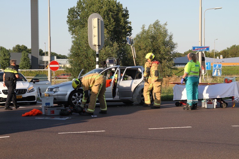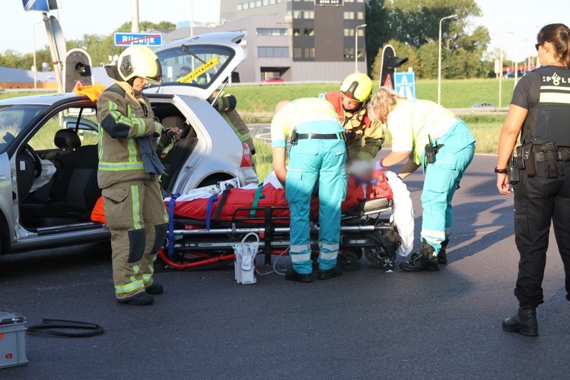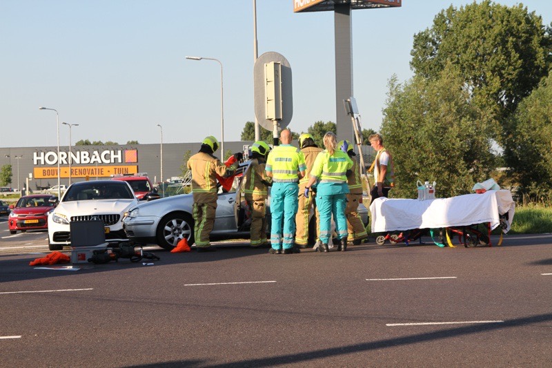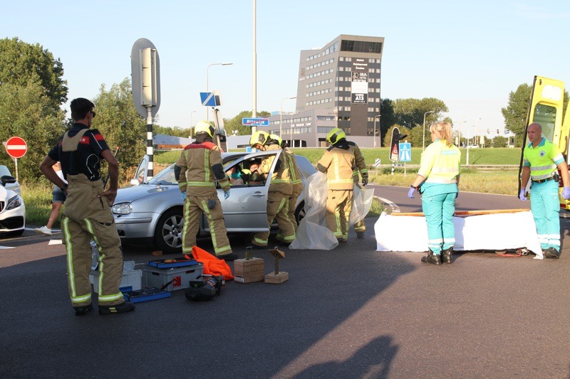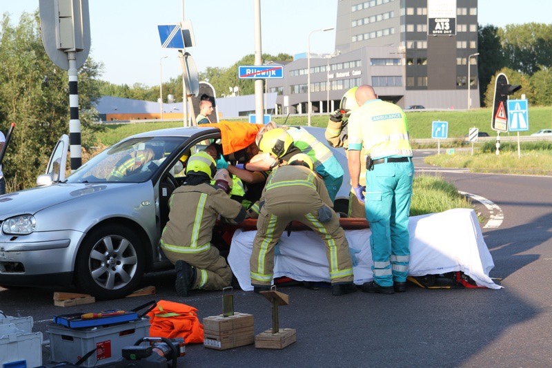 De bestuurder van een auto kwam bij de aanrijding bekneld te zitten.