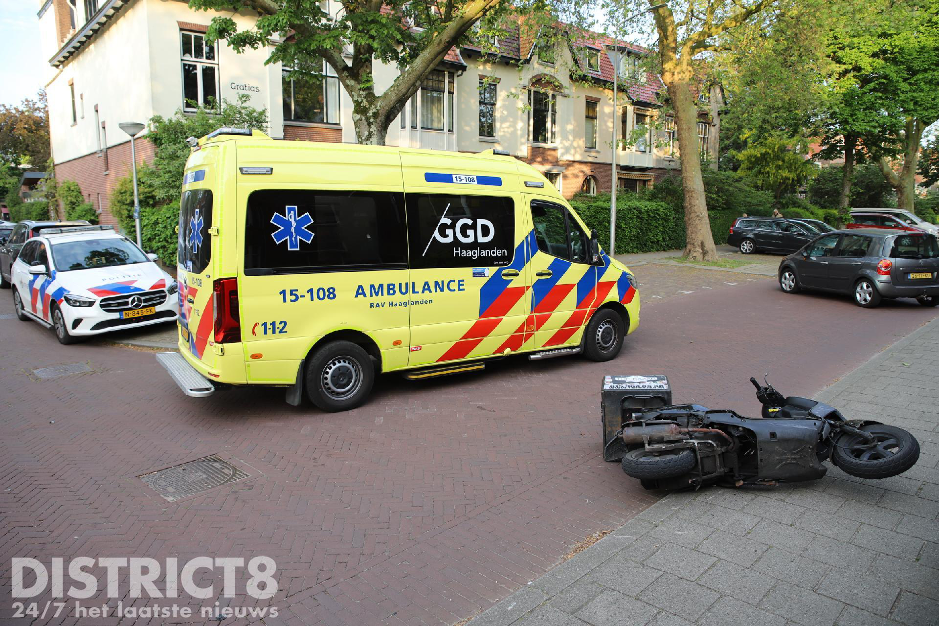 Het ambulancepersoneel heeft zich over de bestuurder van de bezorgscooter ontfermd, deze kon lopend de ambulance in. Zowel de auto als de scooter hebben door de aanrijding fikse schade opgelopen.
