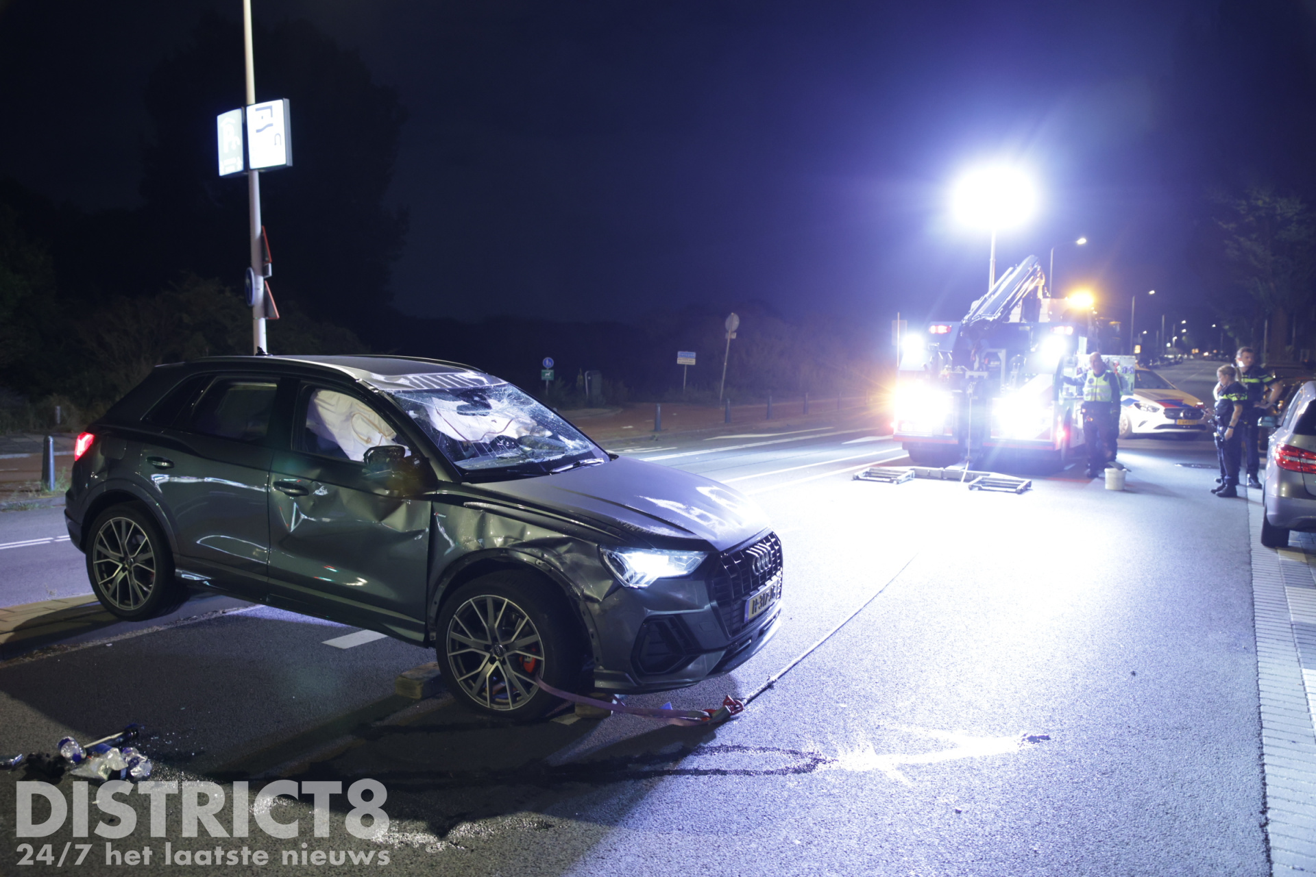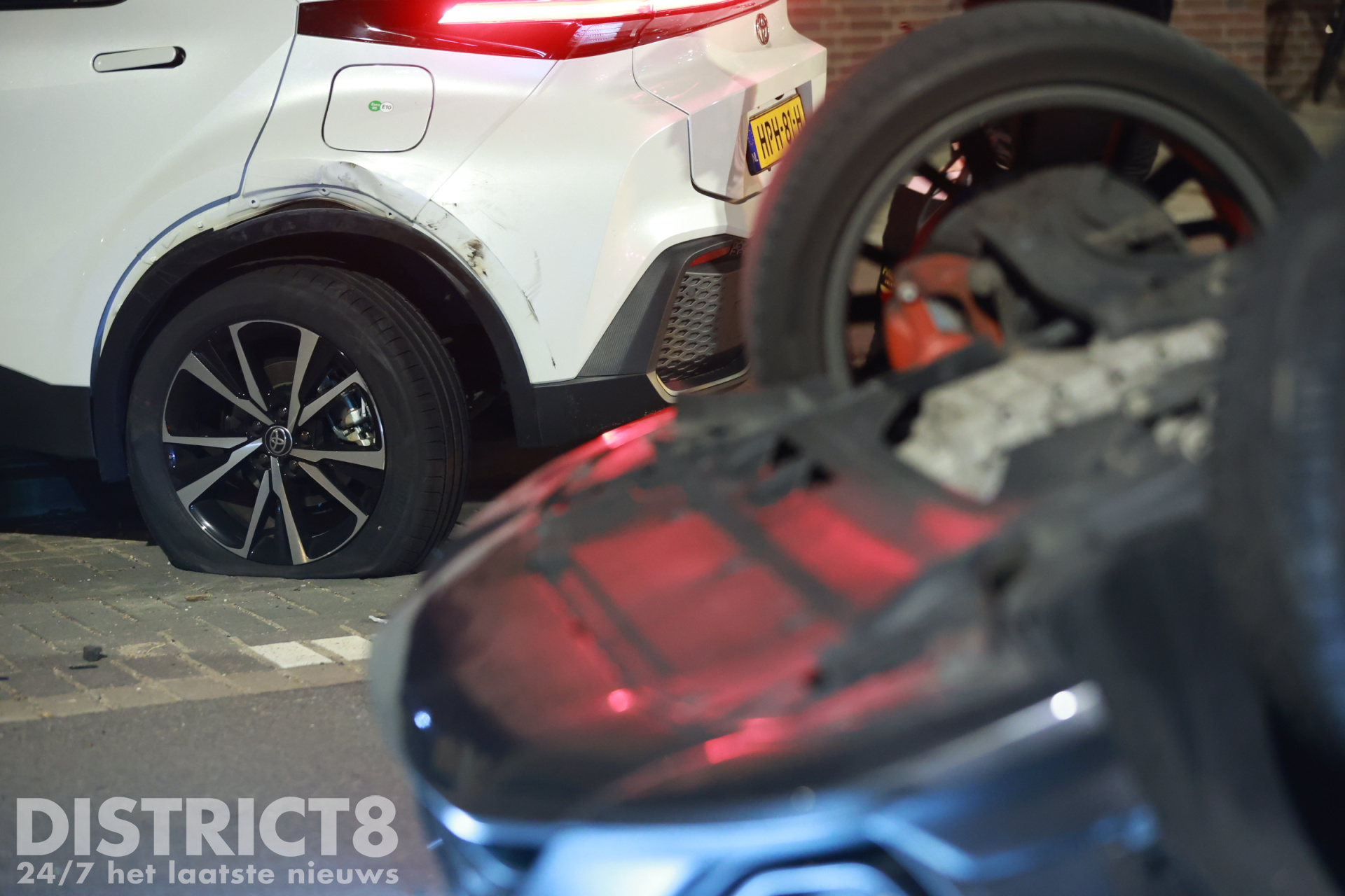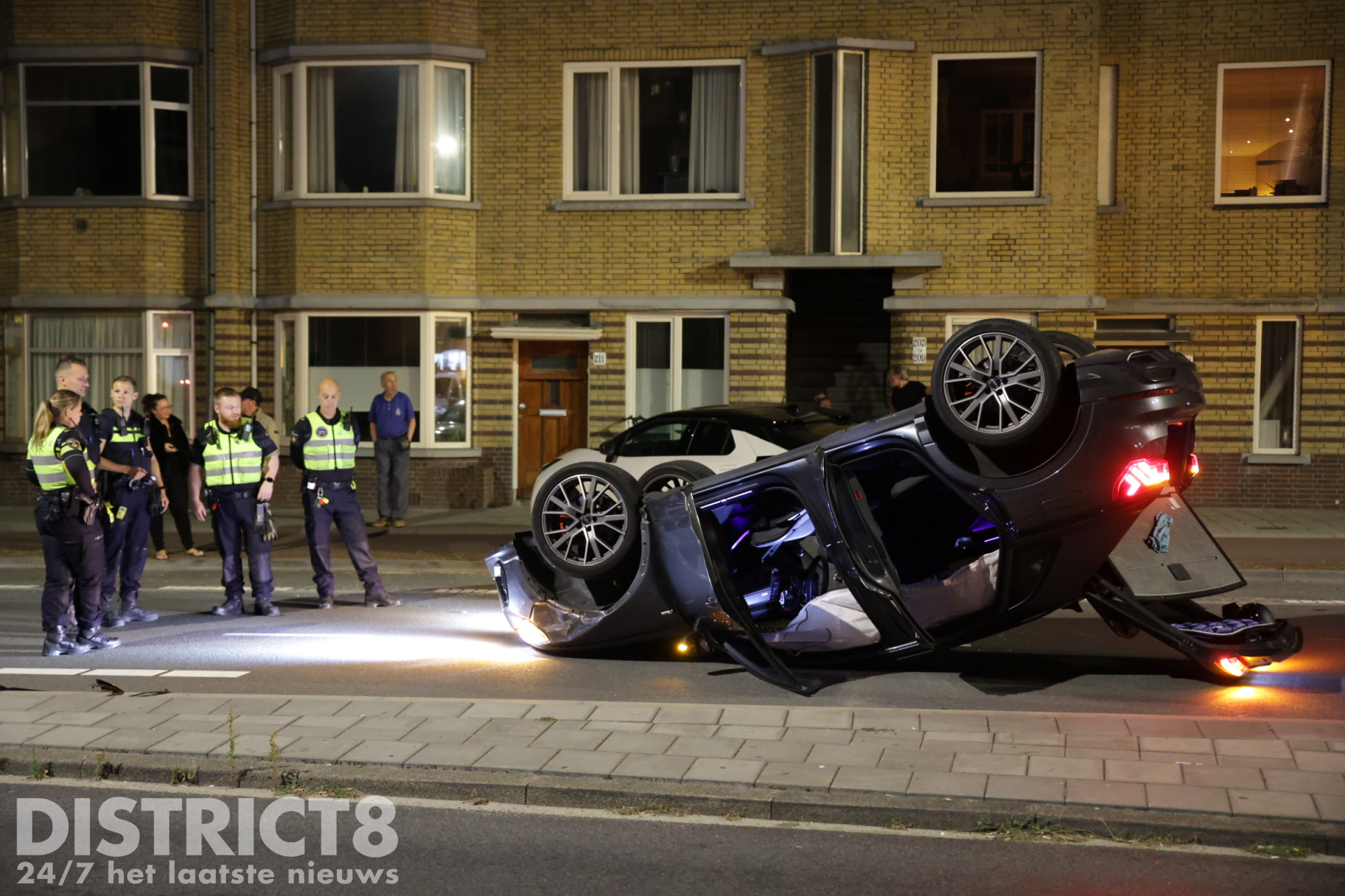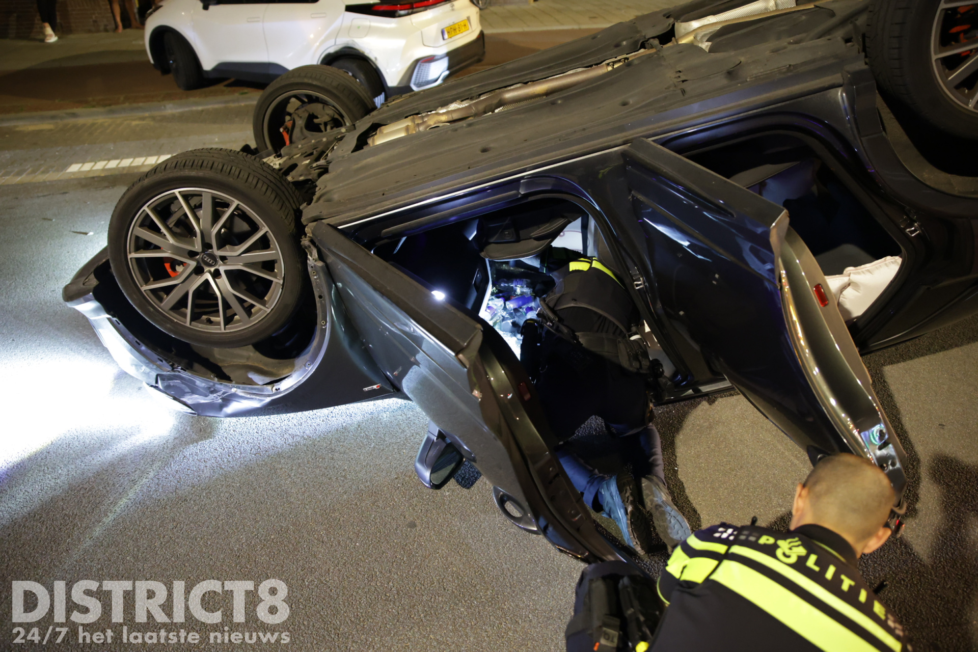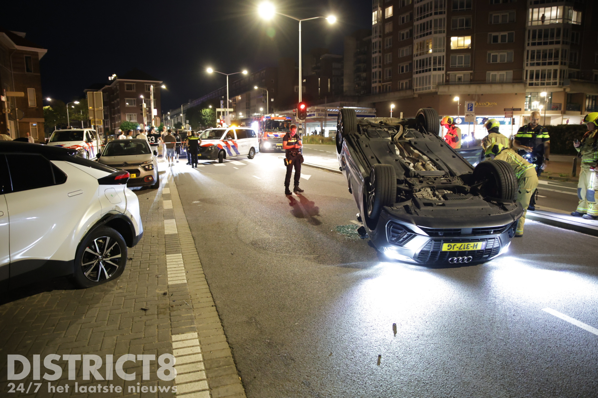 Den Haag – Op de Zwolsestraat met de Hasseltsestraat in Den Haag is in de nacht van zondag op maandag 8 september een auto over de kop gevlogen.