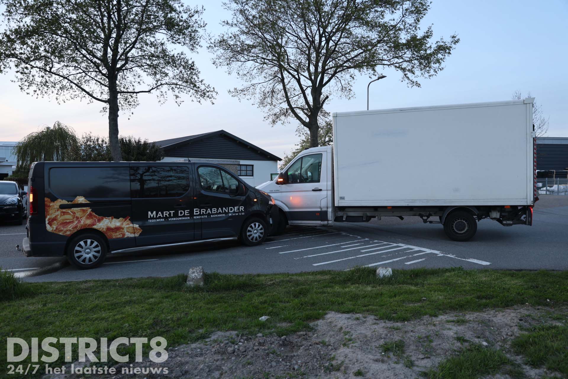 De bestuurder van het witte busje nam de bocht te kort en knalde daarbij tegen de andere bus.