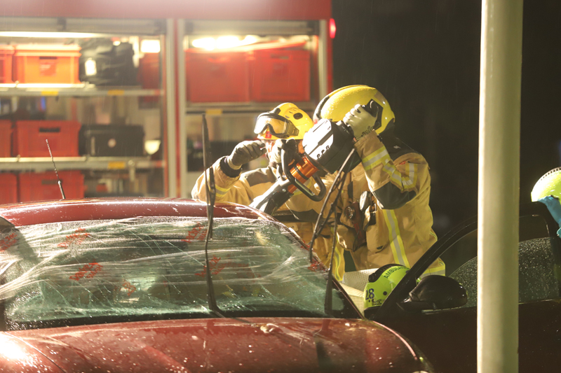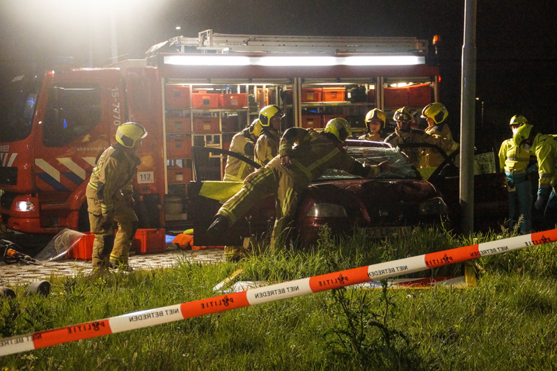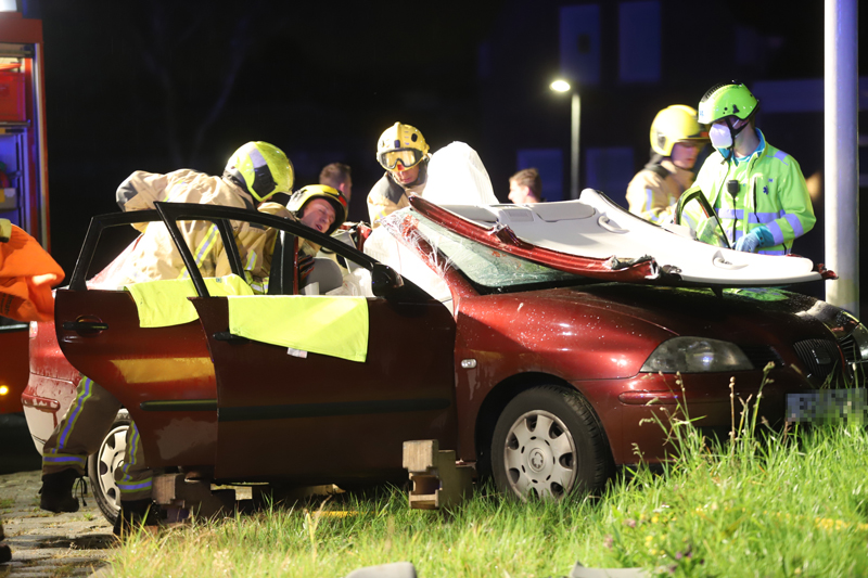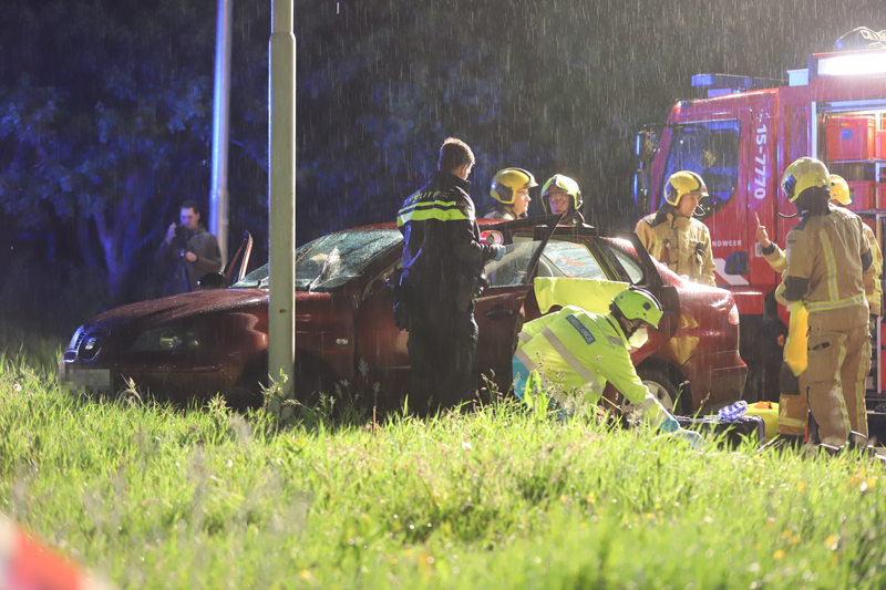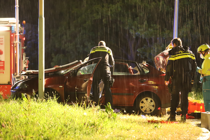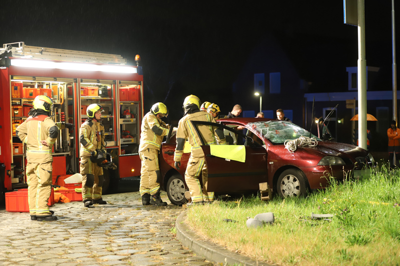 De toegesnelde brandweer moest aan te pas komen om de bestuurder uit zijn benarde positie te bevrijden. Brandweermannen hebben het dak van de auto geknipt om de bestuurder daarna met een wervelplank uit zijn auto te halen.