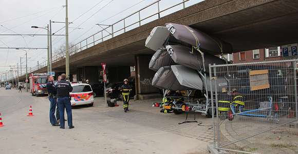 Delft – Een bestuurder kwam vrijdagmiddag 22 februari vast te zitten met een aanhanger vol boten onder het viaduct aan de Phoenixstraat. De aanhanger zat muurvast, het lukte de bestuurder niet om de aanhanger los te krijgen. De hulp van de brandweer werd ingeschakeld. De brandweer heeft de lucht uit de banden laten lopen, waarna de aanhanger weer los kwam.