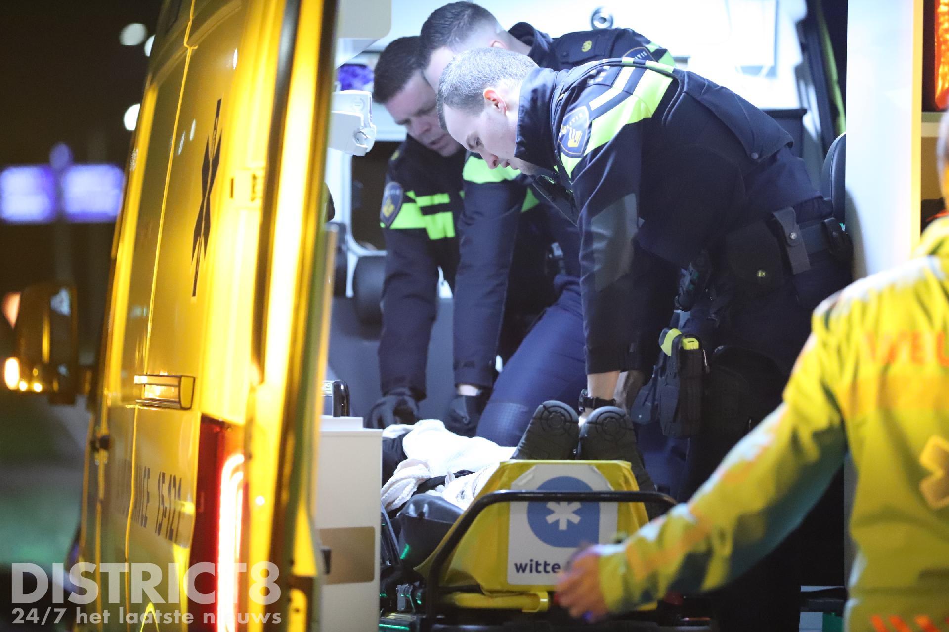 De ambulancedienst heeft de verdachte een kalmerend middel gegeven en daarna is hij op de brancard gelegd. Dit ging niet zonder slag of stoot. Hij wordt momenteel in de ambulance onderzocht.