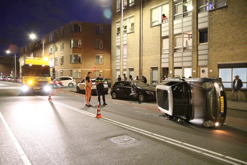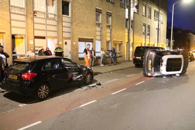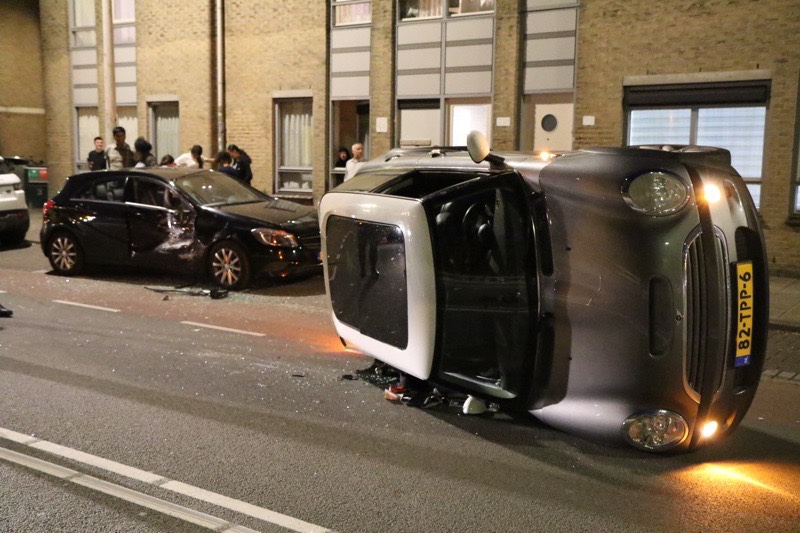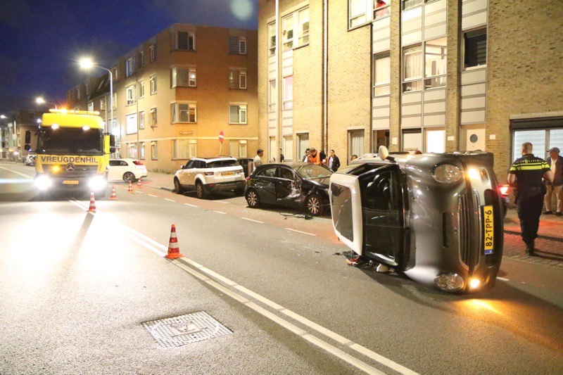 Den Haag – Op de Parallelweg in Den Haag is dinsdagavond een automobilist tegen een geparkeerde auto geklapt en is daarna met zijn auto op zijn kant terecht gekomen.