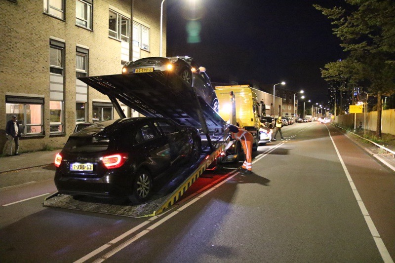 Beide voertuigen worden door een berger van Vreugdenhil afgesleept.