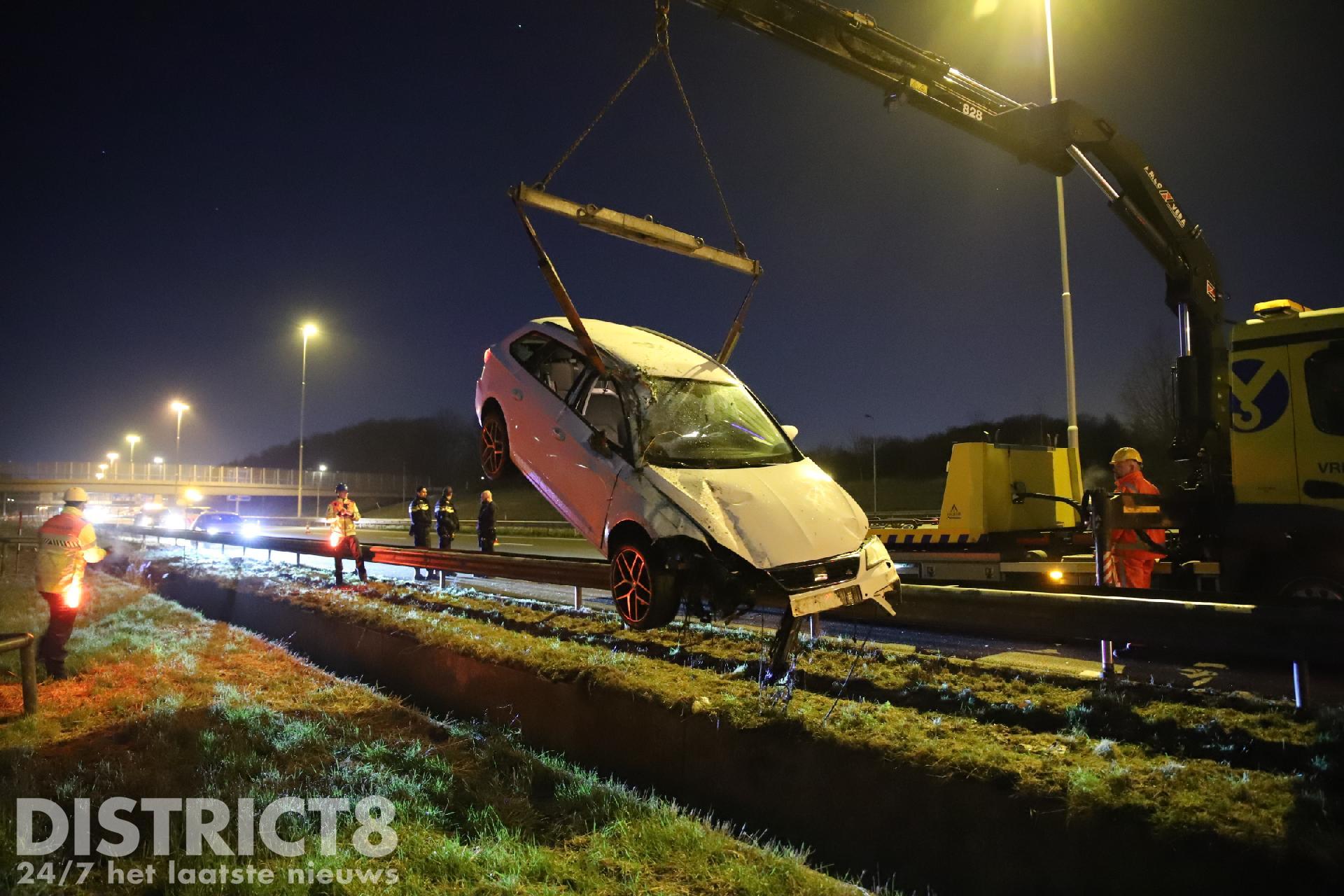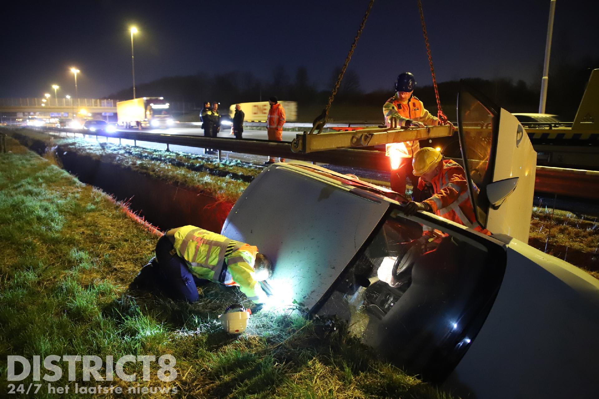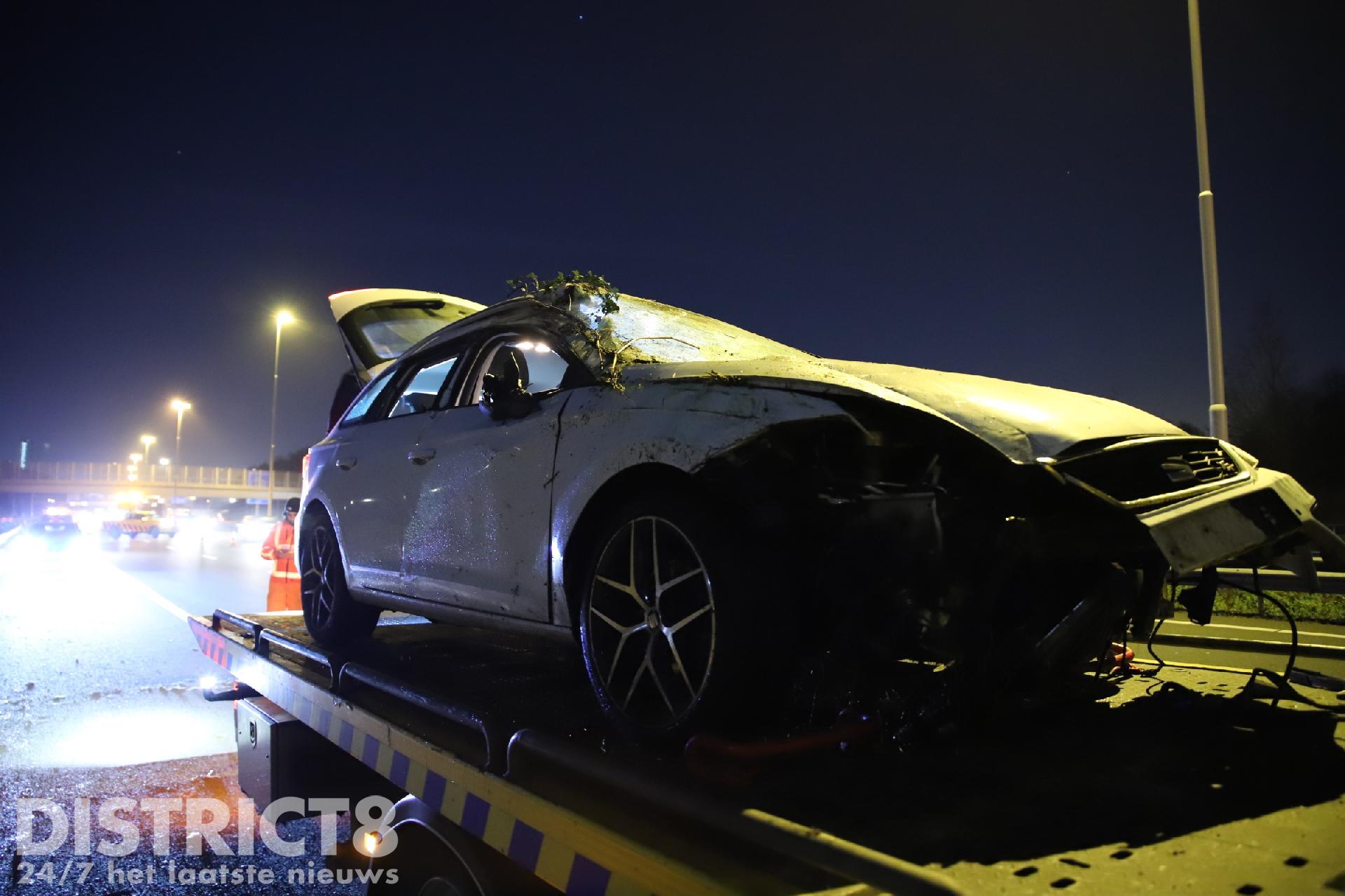 De bestuurder kon snel uit de wagen klimmen, echter wilde hij geen hulp. Omstanders belde 112, hierop kwamen de politie en de ambulancedienst ter plaatse. Rijkswaterstaat sloot in verband met het ongeval twee rijstroken richting Rotterdam af. De bestuurder raakte wonder boven wonder niet gewond. Wel testte hij positief op alcohol en bij een drugstest op THC. Hij is hierop aangehouden.