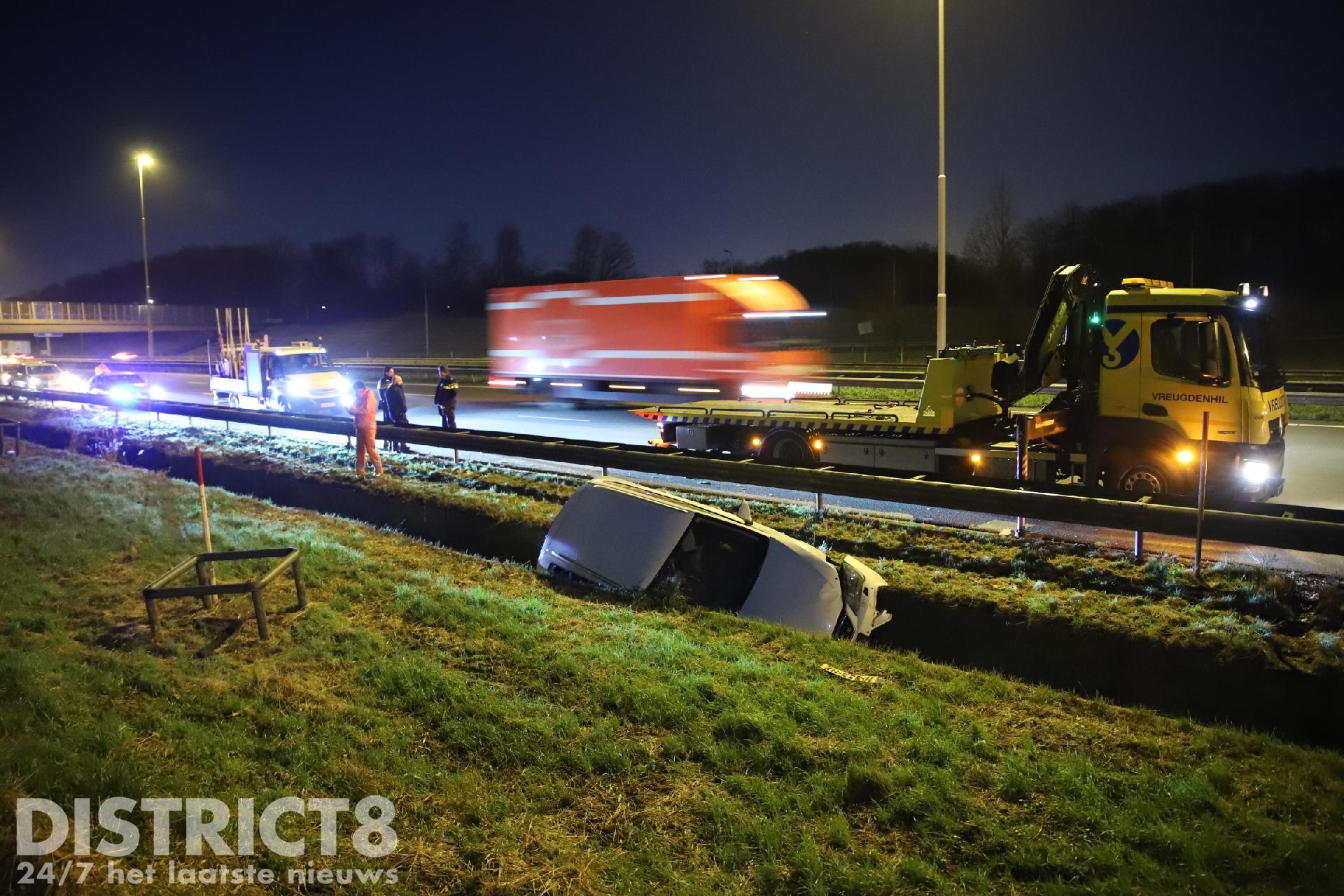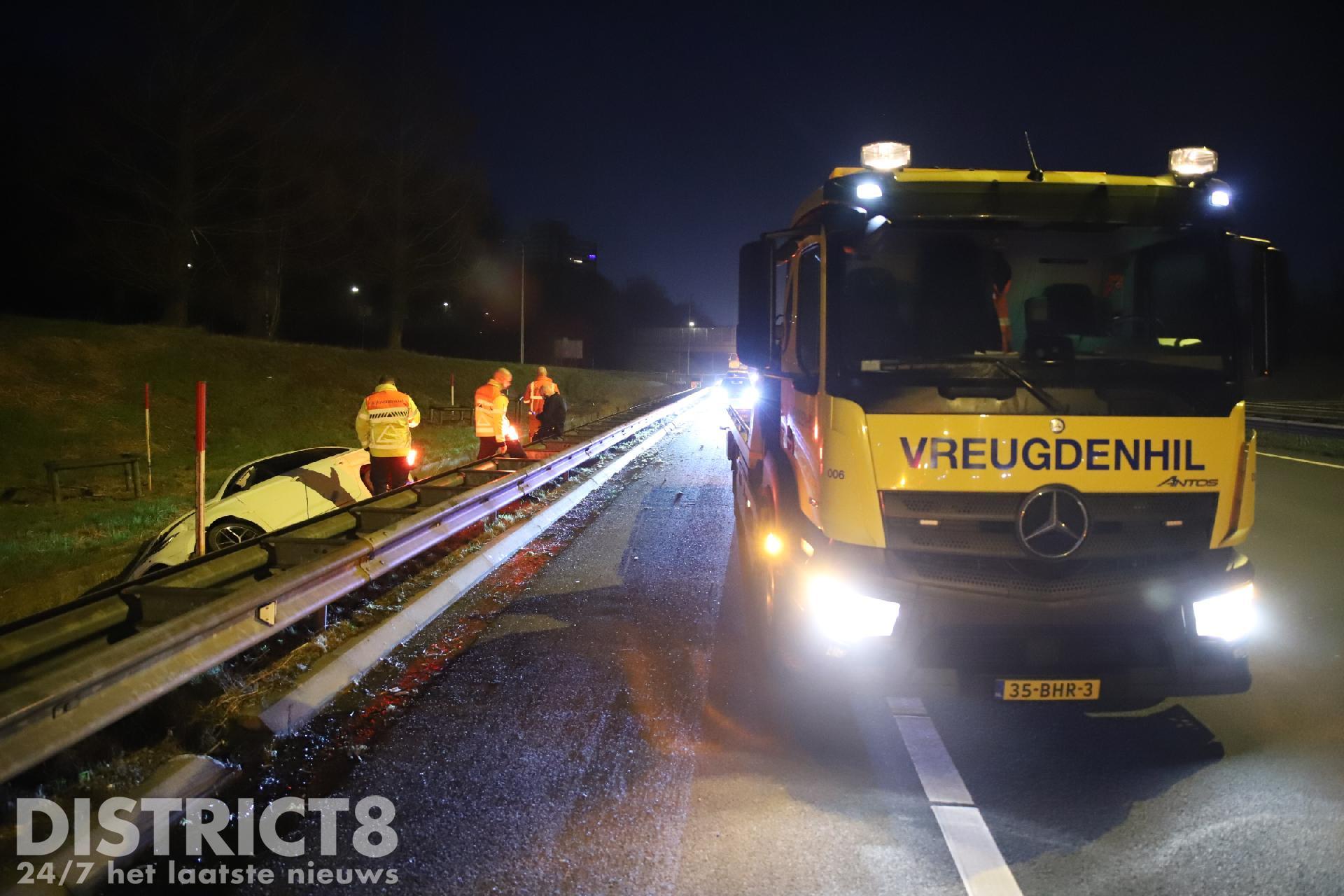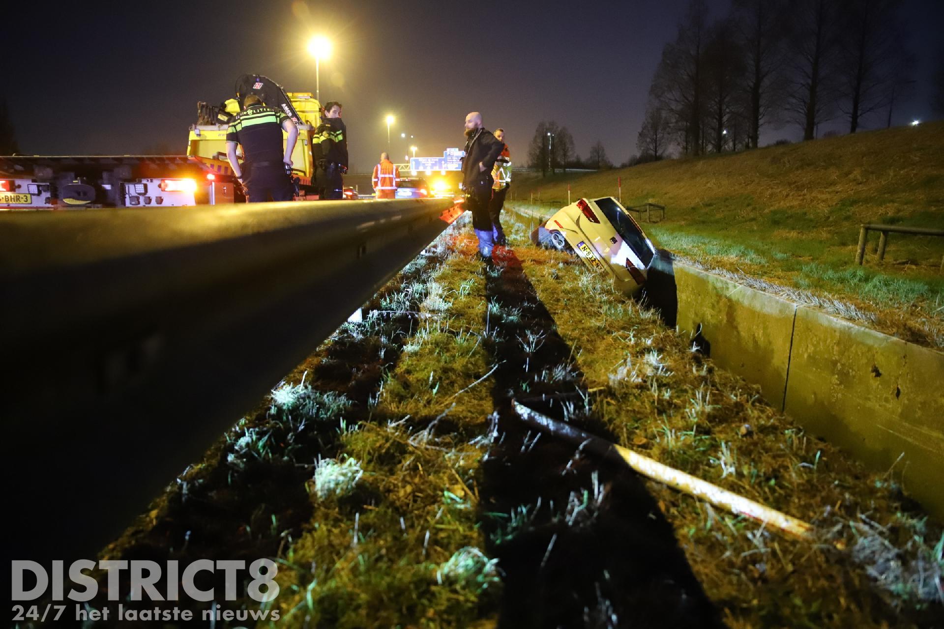 De bestuurder kon snel uit de wagen klimmen, echter wilde hij geen hulp. Omstanders belde 112, hierop kwamen de politie en de ambulancedienst ter plaatse. Rijkswaterstaat sloot in verband met het ongeval twee rijstroken richting Rotterdam af. De bestuurder raakte wonder boven wonder niet gewond. Wel testte hij positief op alcohol en bij een drugstest op THC. Hij is hierop aangehouden.