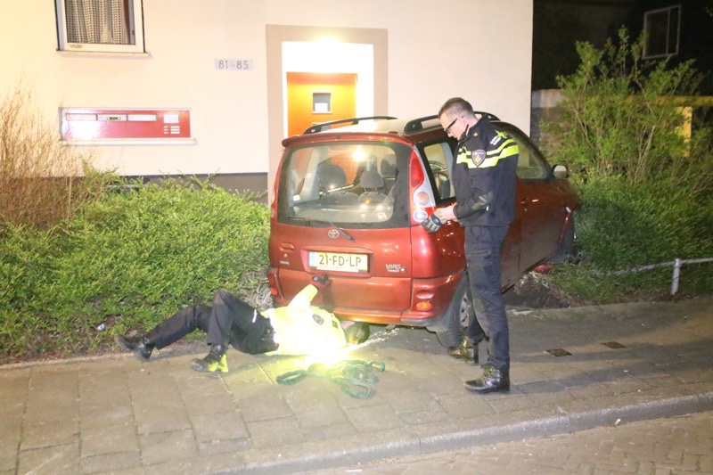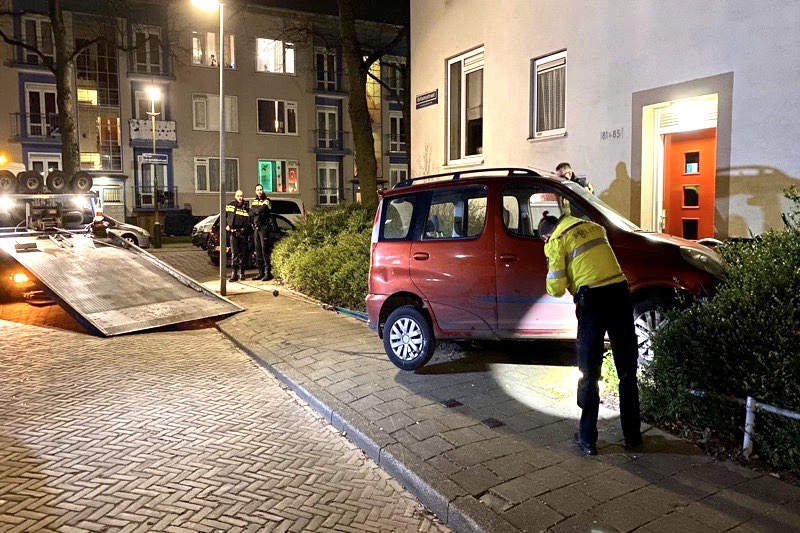 De politie heeft in de omgeving gezocht maar troffen niemand meer aan. De auto is door de kraan van de politie afgesleept. Een fiets die geparkeerd stond naar de bossage overleefde de bijzondere actie niet.